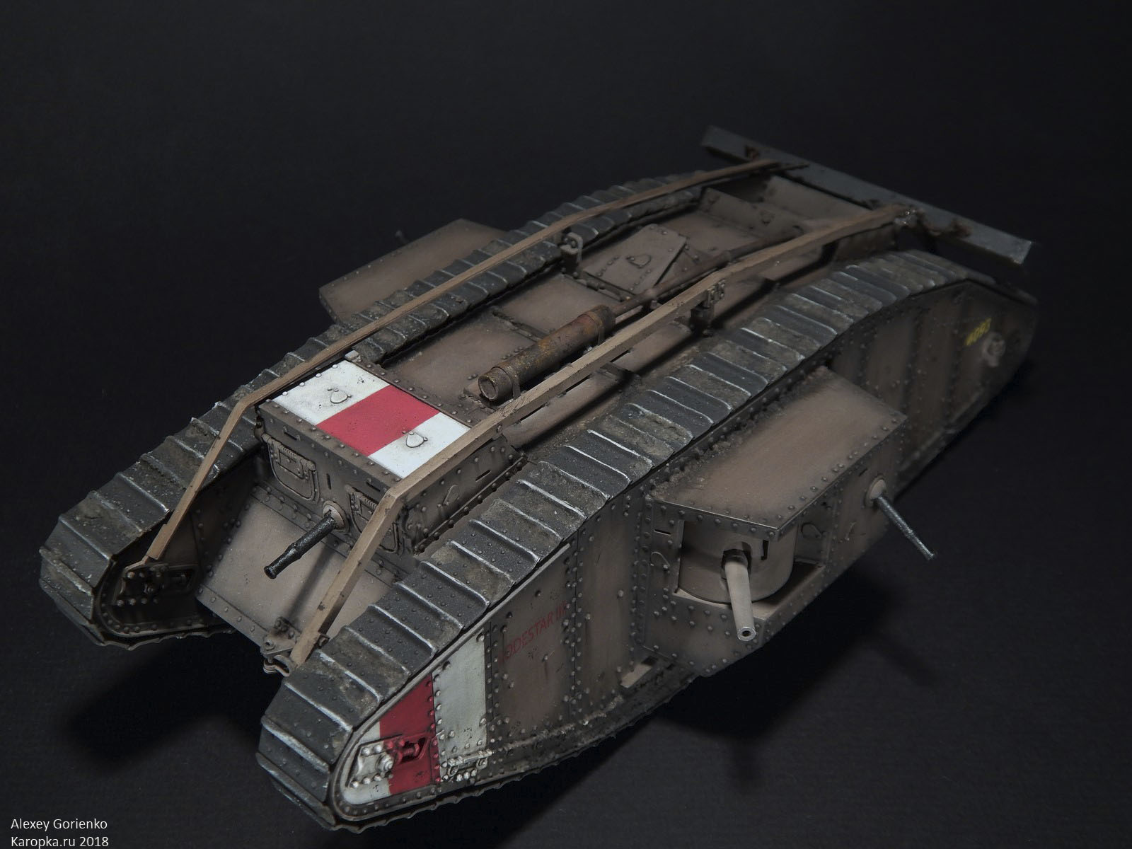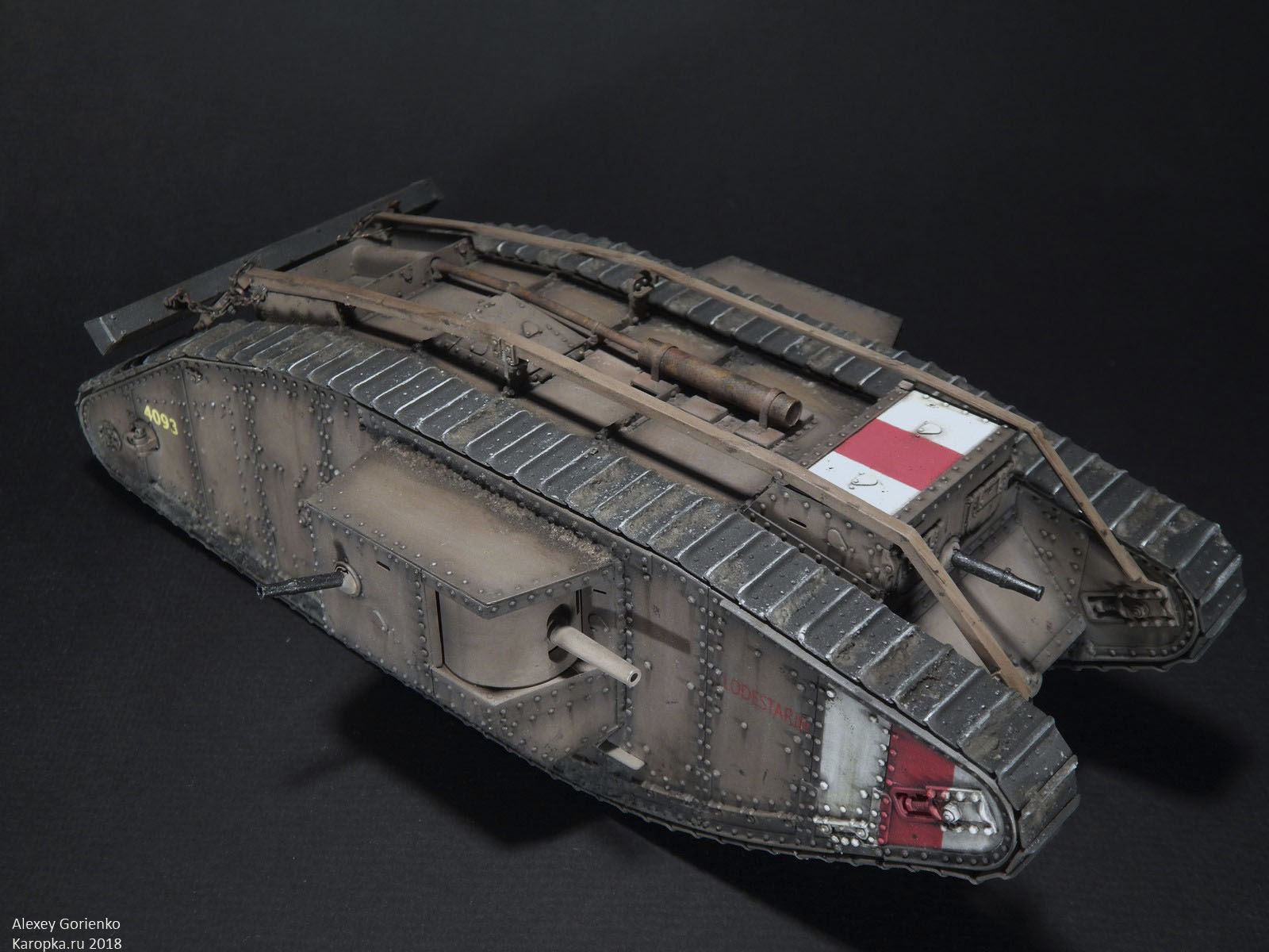 Я хотел настоящий британский ромб в соответствующей окраске. Поскольку Таком дает всего 1 вариант декалей под британца, то выбора особо не было, это юнит Lodestar. Причем, я не смог найти никаких первоисточников о нем. Из обсуждений среди других моделистов(снова ссылка), а так же из стройки Сергея Кулишова(стройка на Перфект Моделс) я вынес следующие нюансы окраски: