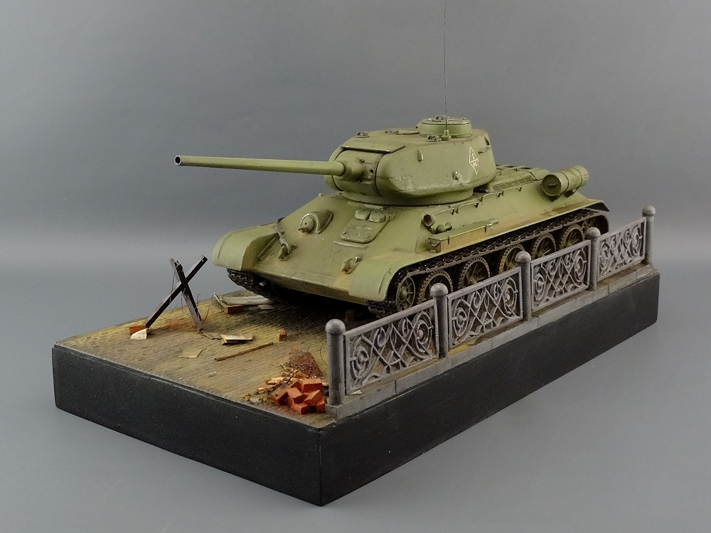 Александр, привет! Почту за честь открыть страничку с комментариями к очередной тридцатьчетверке! Модель хороша. Небольшой кусочек уличного интерьера выглядит просто, но гармонично.