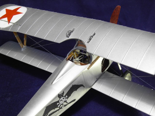 Модель простая, от себя я добавил деталировку кокпита, но после сборки этого почти не видно. Да ещё винт вырезал из дерева.