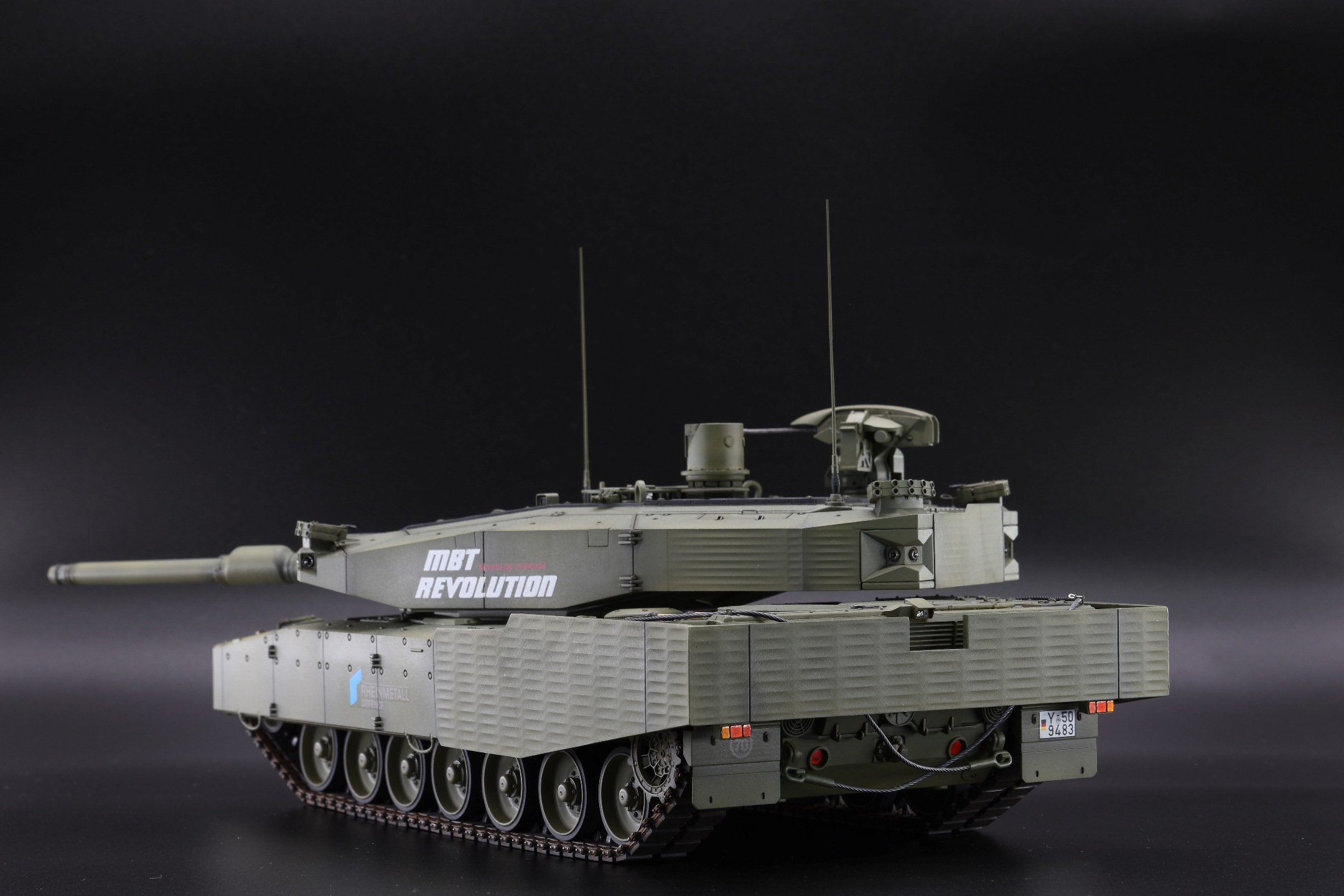 Добрый день уважаемые любители и профессионалы. Представляю Вашему вниманию модель германского танка Leopard 2А4 Revolution I от TIGER MODEL. Несколько слов о модели, что понравилось: отличные траки, а самое главное кондуктор, никогда я не собирал рабочие ленты так быстро( это вам не Bronco) . ))) Теперь что не понравилось: толстая подложка декалей, так и не смог сделать вровень. В процессе сборки заменил ствол на Magic Models, антенны на Orange Hobby, тросы на Eureka. Тросы на этой модели весьма хороши, но я доверился производителю и отрезал их не измерив, как в инструкции по 13 см, правый оказался коротким. Заменил все ручки, на корпусе проволока, на башне кусочки травленки. Сделал проводку к гранатометам. Красил Tamiya 81765 XF-65 Field Grey, как предлагает производитель модели, слегка осветлив Tamiya 81757 XF-57 Buf. Фильтр мешал свой, что то типа серо-коричневый, смывка AMIG1005 Ammo Mig DARK BROWN WASH FOR GREEN VEHICLES. Вообщем то и все, ни пигментов, ни каких либо других смесей для придания модели более "живого вида" не использовал. Приятного просмотра. P.S. Для тех кто собирает или планирует собирать эту модель, ссылка, в ней статья, а главное фото этого танка.http://leopardclub.ca/reviews/Tiger_Model/Revolution/