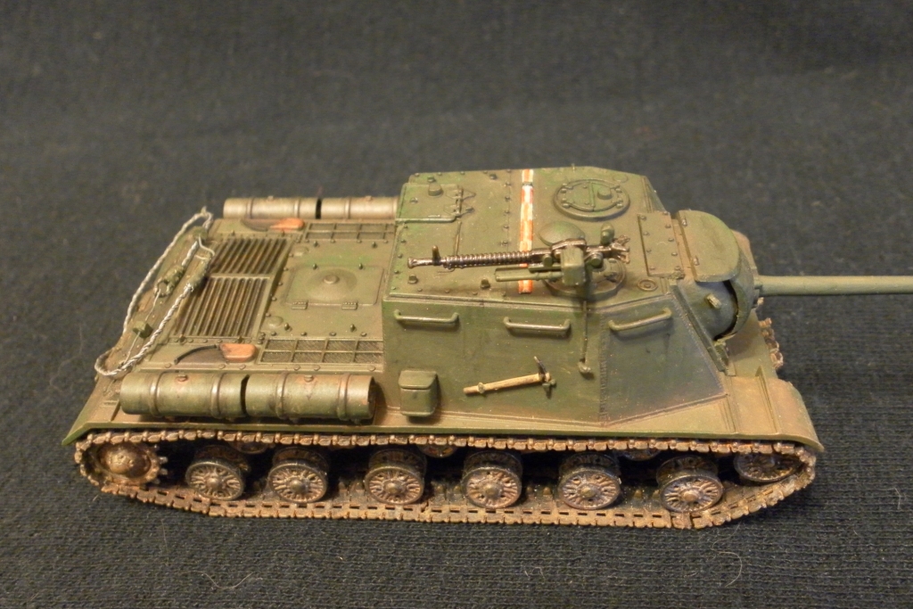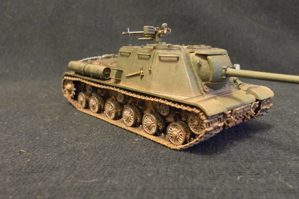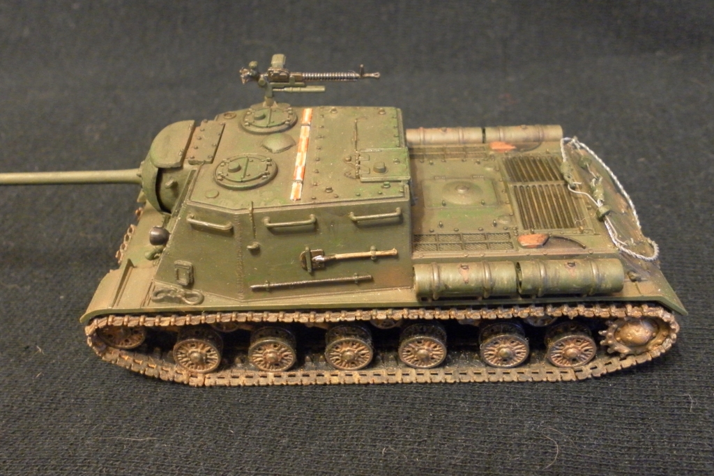 Покрасил аэрографом и кистью мастер акрилом от Звезды. Со смывкой и сколами не знаю как получилось. Для меня это было впервые (раньше даже не знал о таких технологиях). Ржавчину на траки натер из оранжевого карандаша.