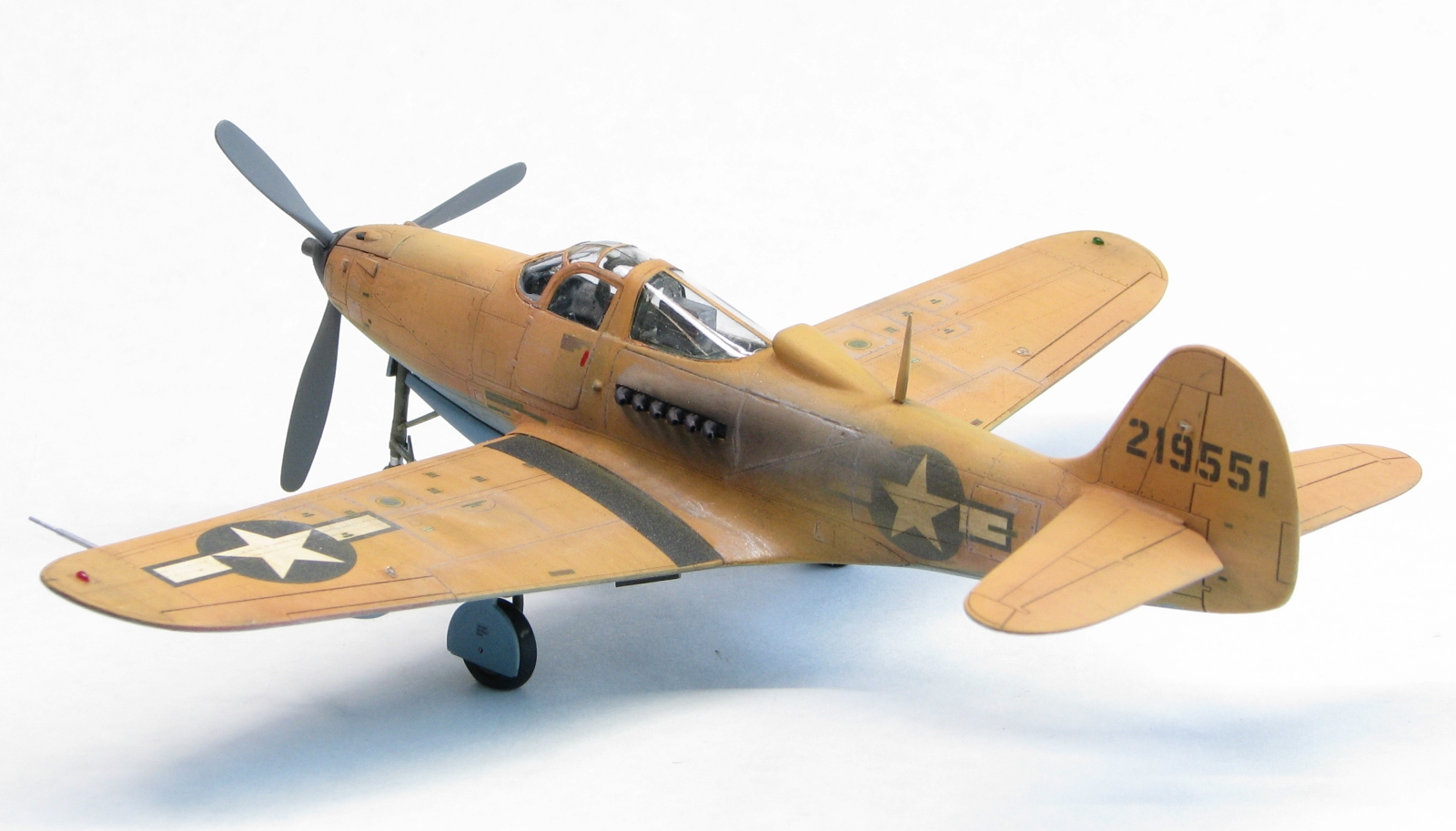 Всем привет. Выкладываю на строгий, но справедливый суд общественности своего нового поросёнка, который изначально планировался как P-39Q Airacobra, борт 219551 Devastating Devil. Стройка велась здесь. Сразу хочу оговориться, что результатом я недоволен - в процессе покраски накосячил, пришлось частично переделывать ЛКП в районе движка, и полностью победить этот косяк я так и не смог.