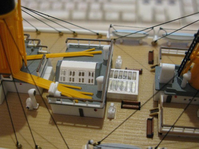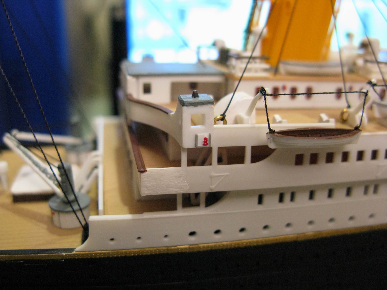 Доброго всем дня ,про момент с такелажем через это и я прошел в итоге срезав его и перетенув заного ,далее леера на помещениях офицеров не имели деревянной накладки ,ограждения с шлюпочной палубы на палубу А были открытыми на всех трех судах не имели козырька не понимаю зачем академия их так сделала , рулевая внутренняя рубка не была у него округлой ,а была прямой ,что это за кольцо на носу где идут растяжки перед якорем ,я на своем академовском пилил много и долго ,щас лежит уже трумпитеровский только в 200 масштабе ,а ну и в случае с трумпитером это исправимо ,а с академией нет центральный винт все таки был трех лопастным (его установили для проверки эфективности но эксперемент кончился неудачно ,в итоге в 1913 году трех лопастной винт поставили на олимпик для продолжения эксперемента ,те фото с винтами в доке это все фото олимпика но никак не титаника ) https://karopka.ru/community/user/23593/?MODEL=501687