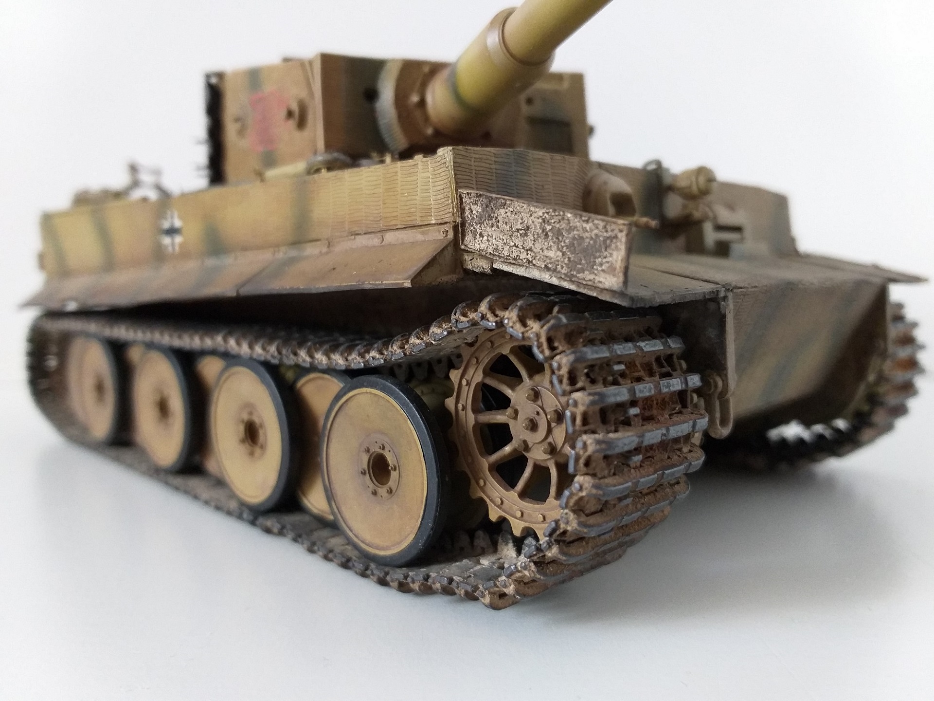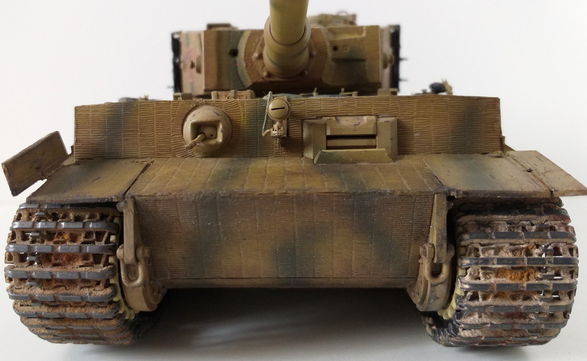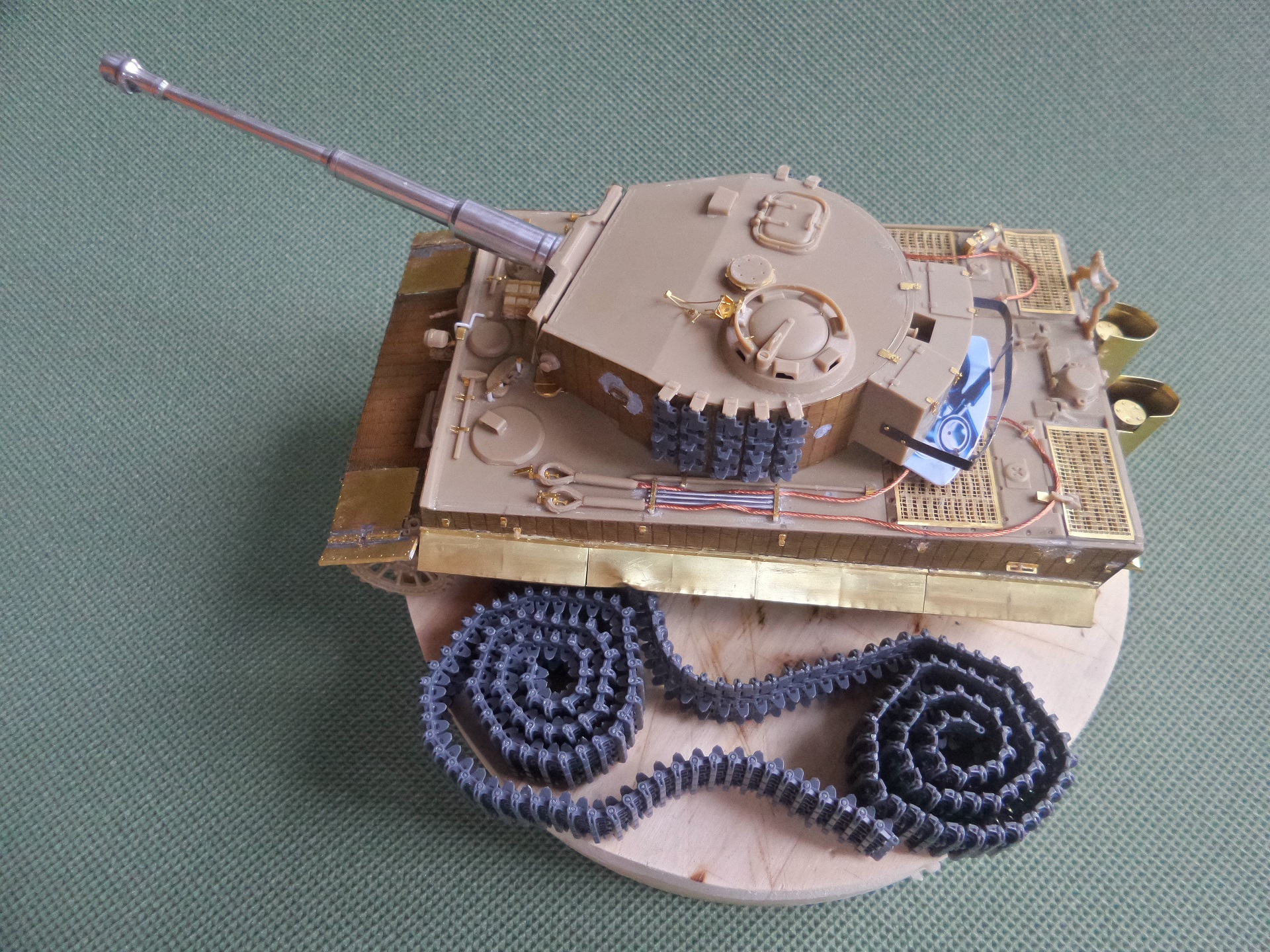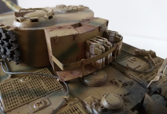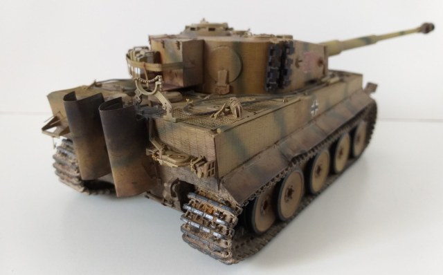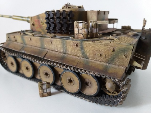 Всем привет. Это мой первый танк из семейства кошачих. При сборке модели у меня не стояла задача сделать какой-то определенный реальный танк, но историю я покопал. Это ранний тигр, который во второй половине войны был отремонтирован и модифицирован частично. Отсюда ходовка ранняя и башня от более поздних тигров. Танк от Tamiya сборка очень приятная и нет никаких проблем со стыкуемостью деталей. Травло от Voyager models, ствол Aber, гусеницы от танка другой фирмы(который на интерьере). Циммерит брал с рук и незнаю что за фирма. Использовалась химия от AK, Tamiya, Revel, Zvezda и масло Сонет. Из доработок это полка задняя для канистр с питьевой водой от Tamiya. Буду рад мнениям и оценкам. Спасибо.