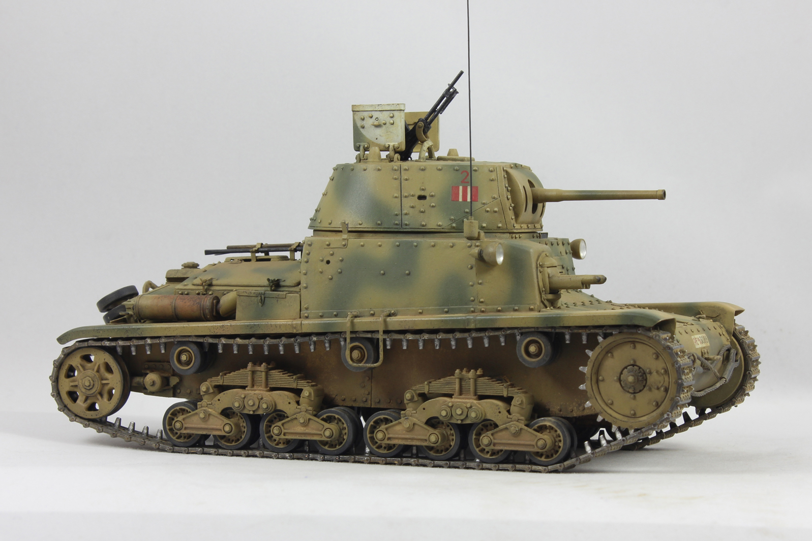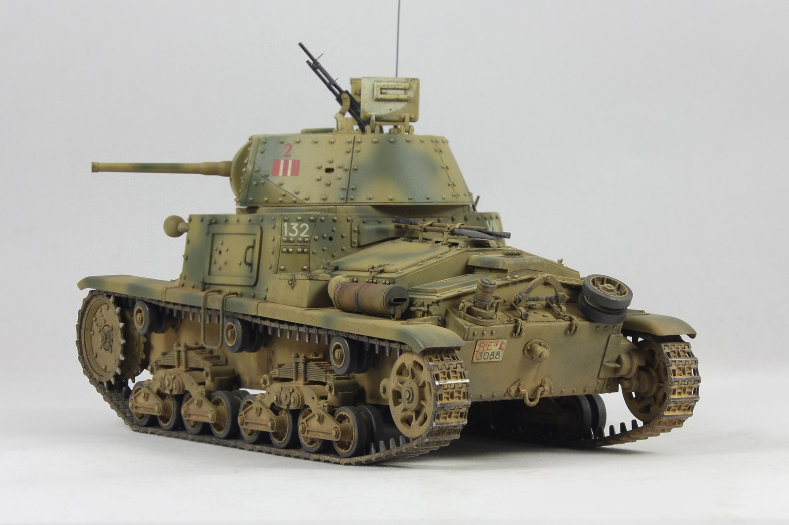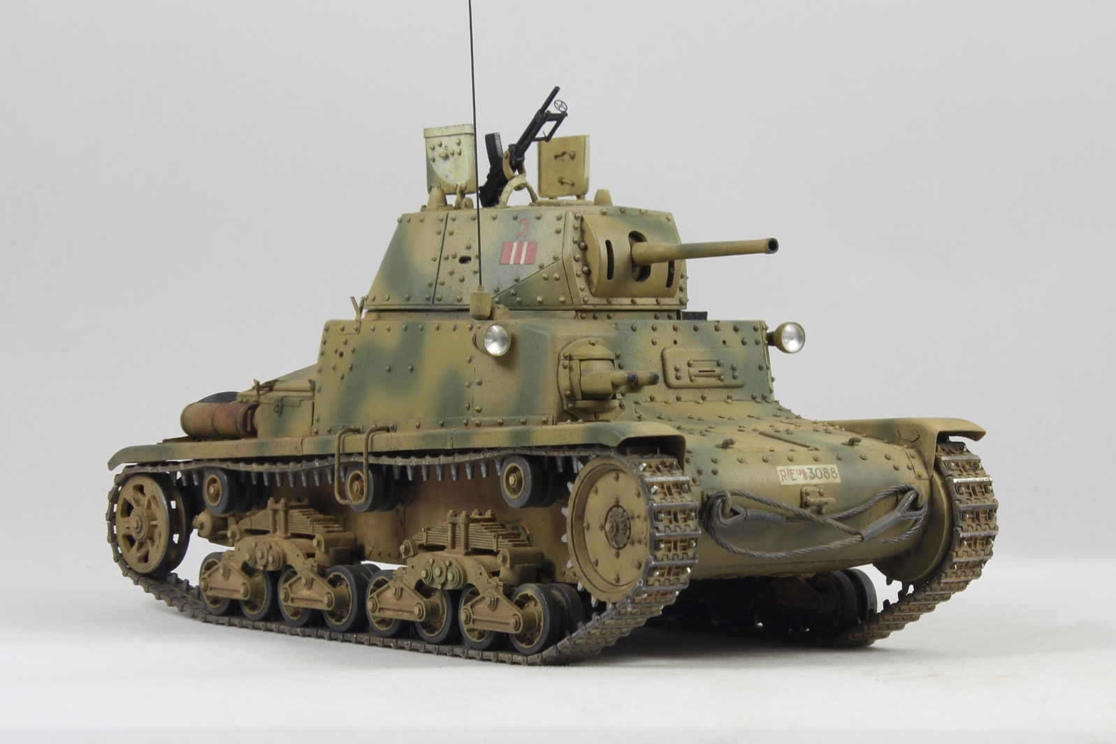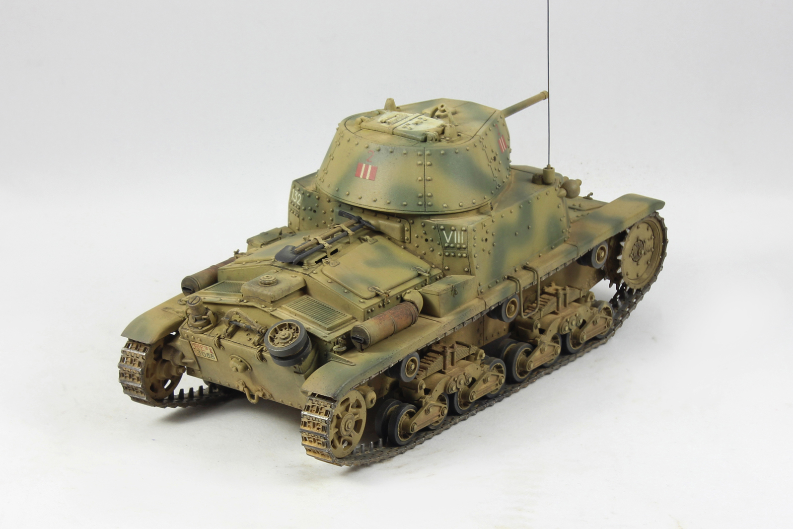 Вариант окраски взял с боксарта. 2-я машина 2-ого взвода 1й роты 8ого батальона 132 дивизии Ариэте. С толстенными декалями от Тамии было отдельное сражение. Красил акрилом от Тамии, пачкал маслом и пигментами.