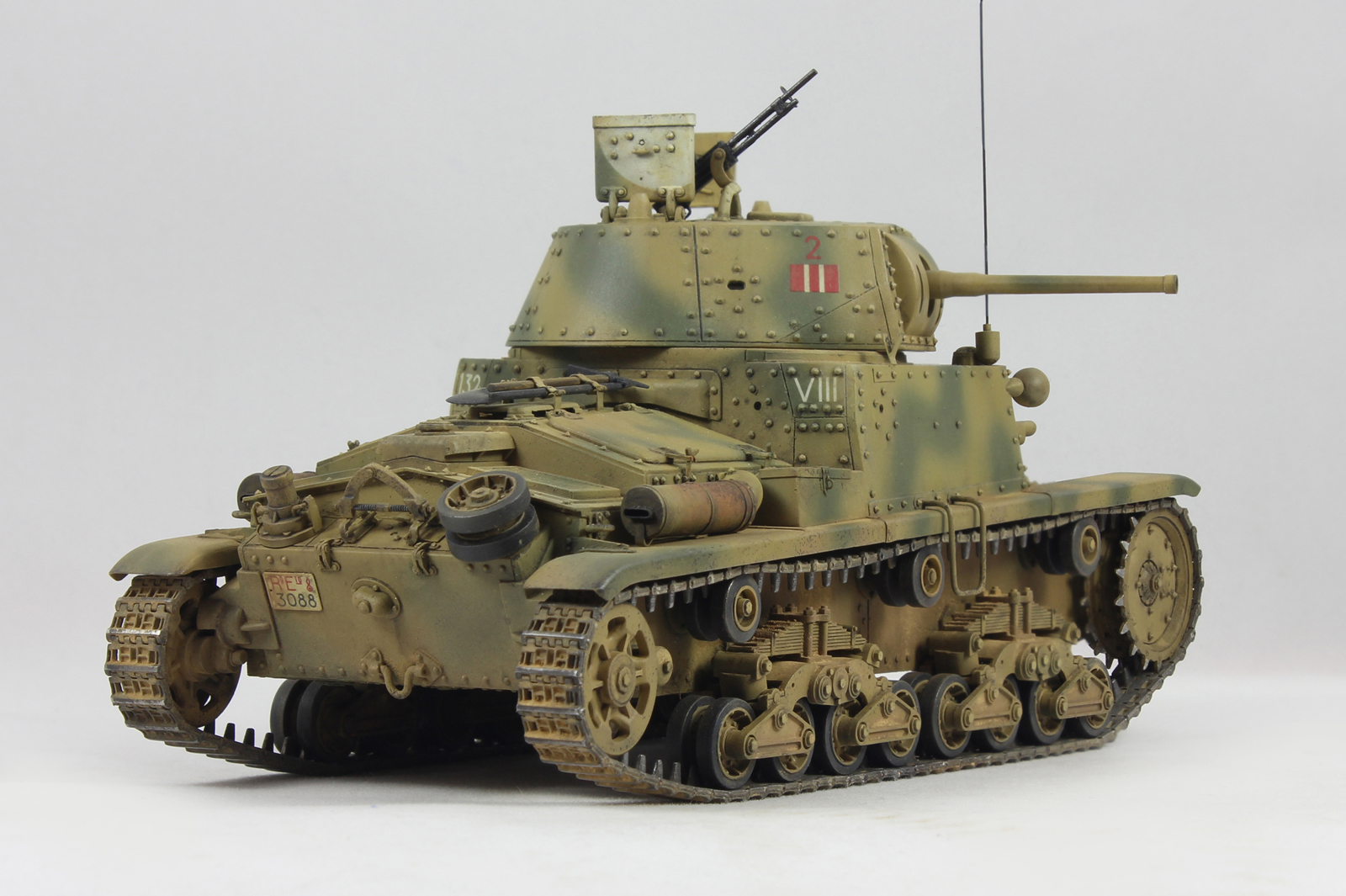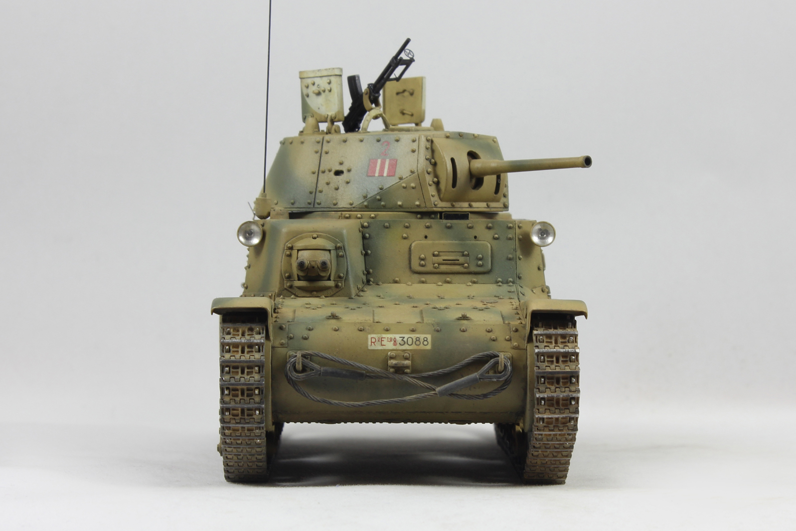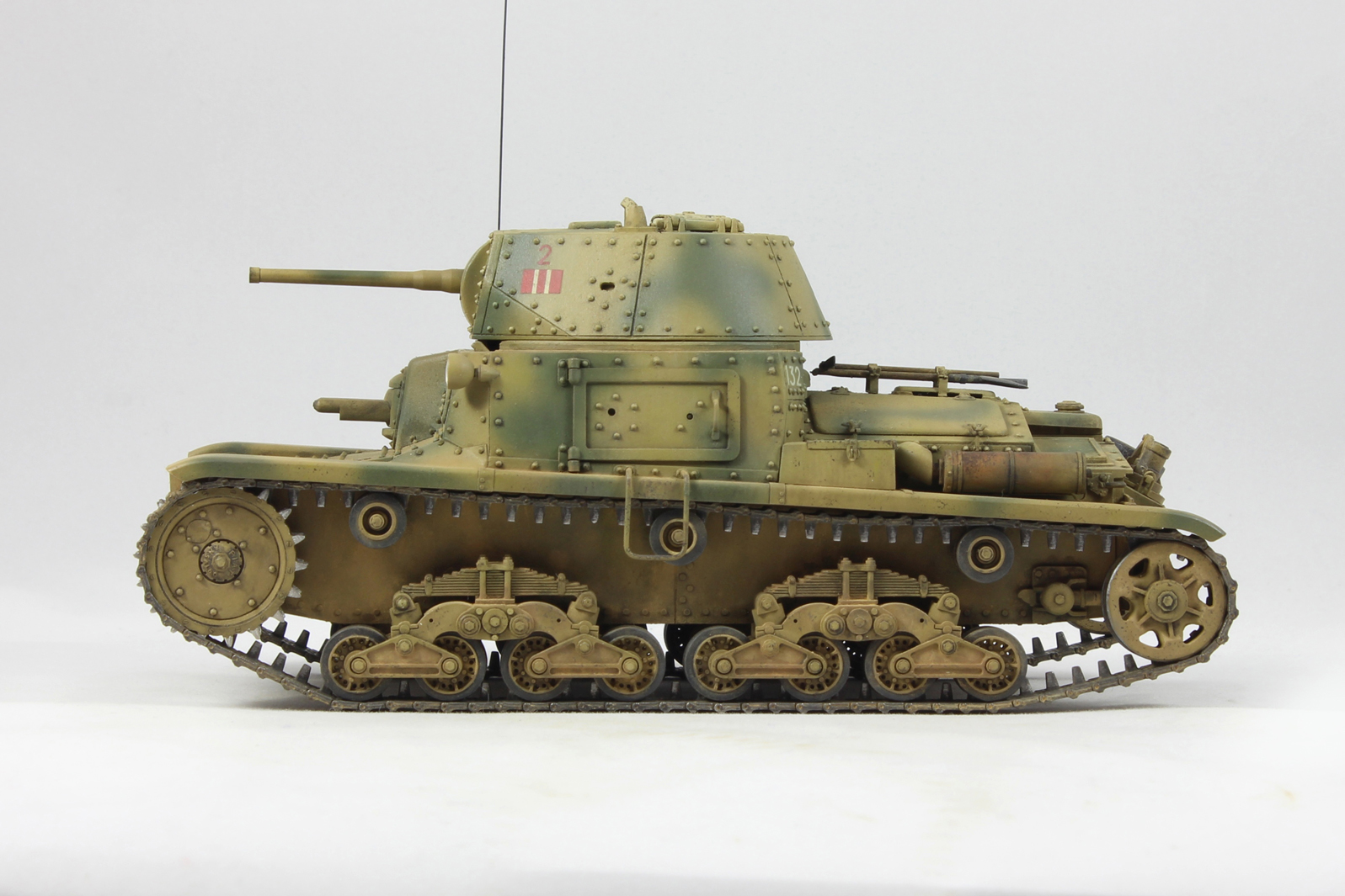 Вариант окраски взял с боксарта. 2-я машина 2-ого взвода 1й роты 8ого батальона 132 дивизии Ариэте. С толстенными декалями от Тамии было отдельное сражение. Красил акрилом от Тамии, пачкал маслом и пигментами.