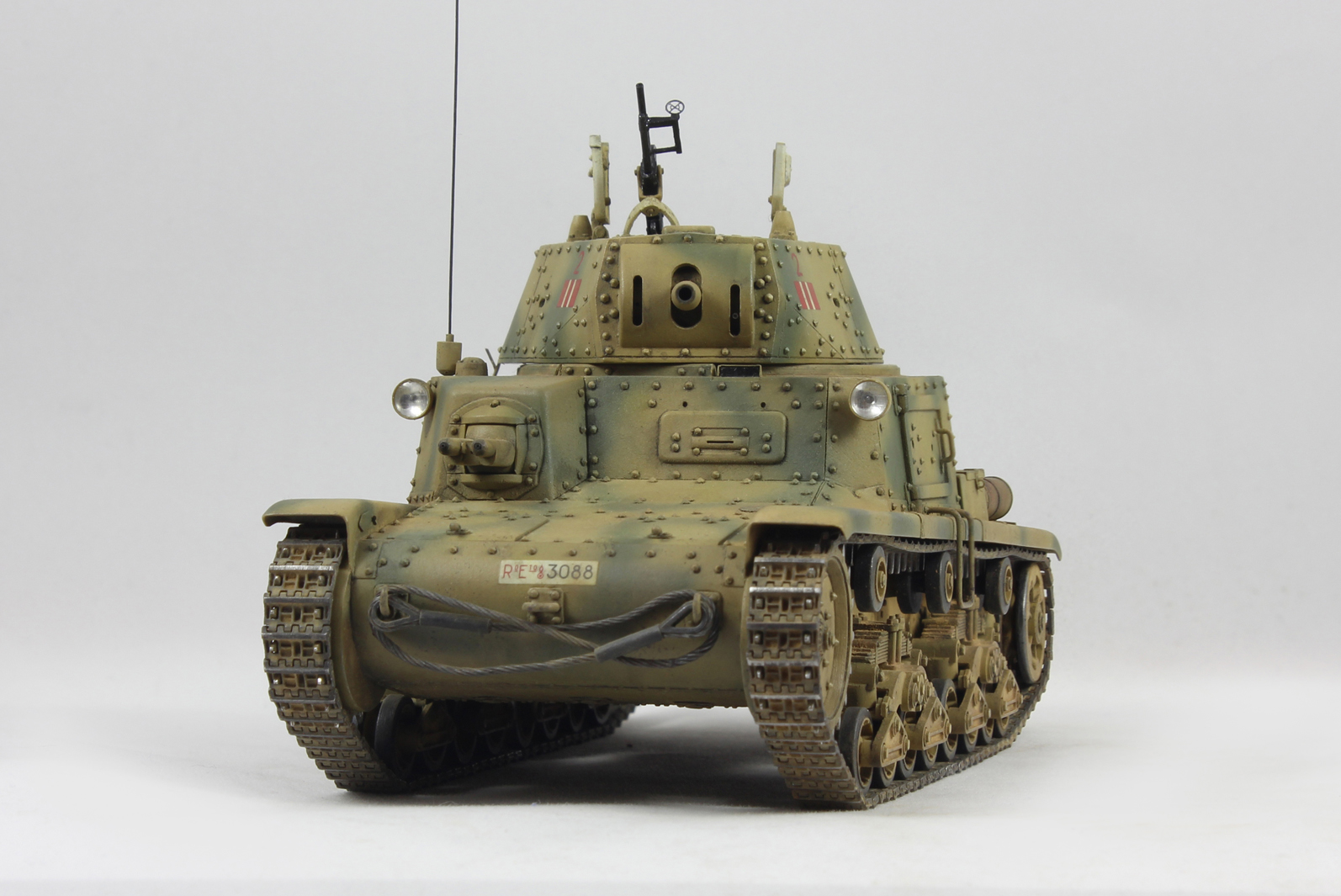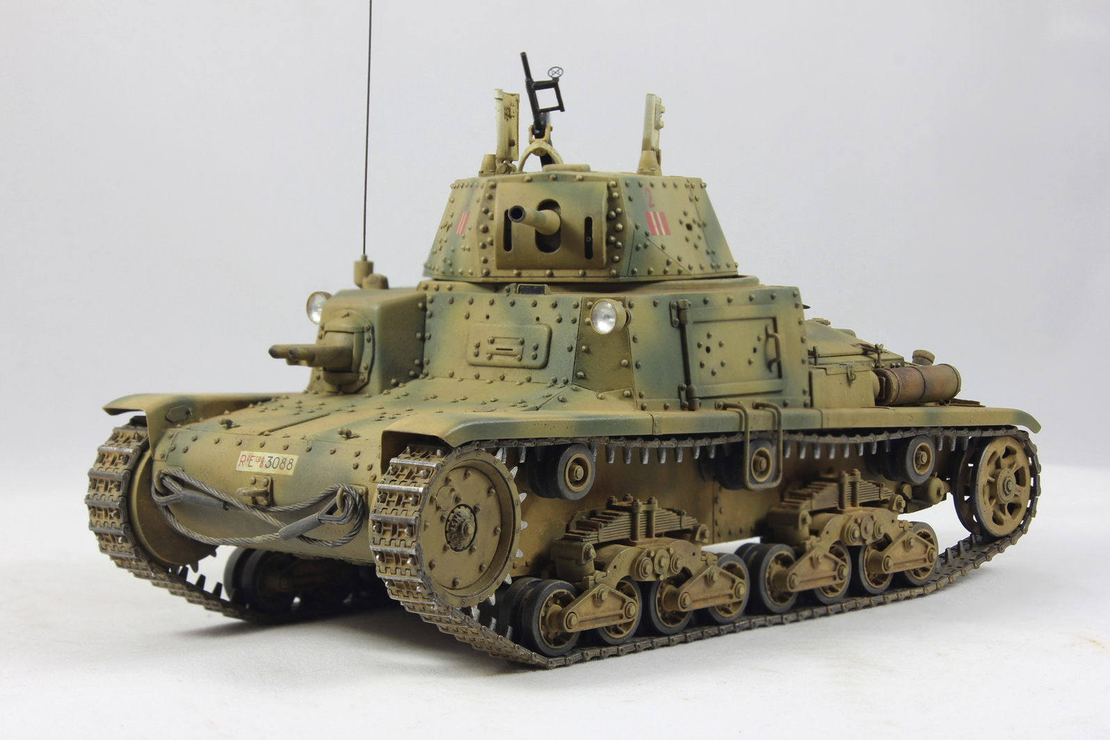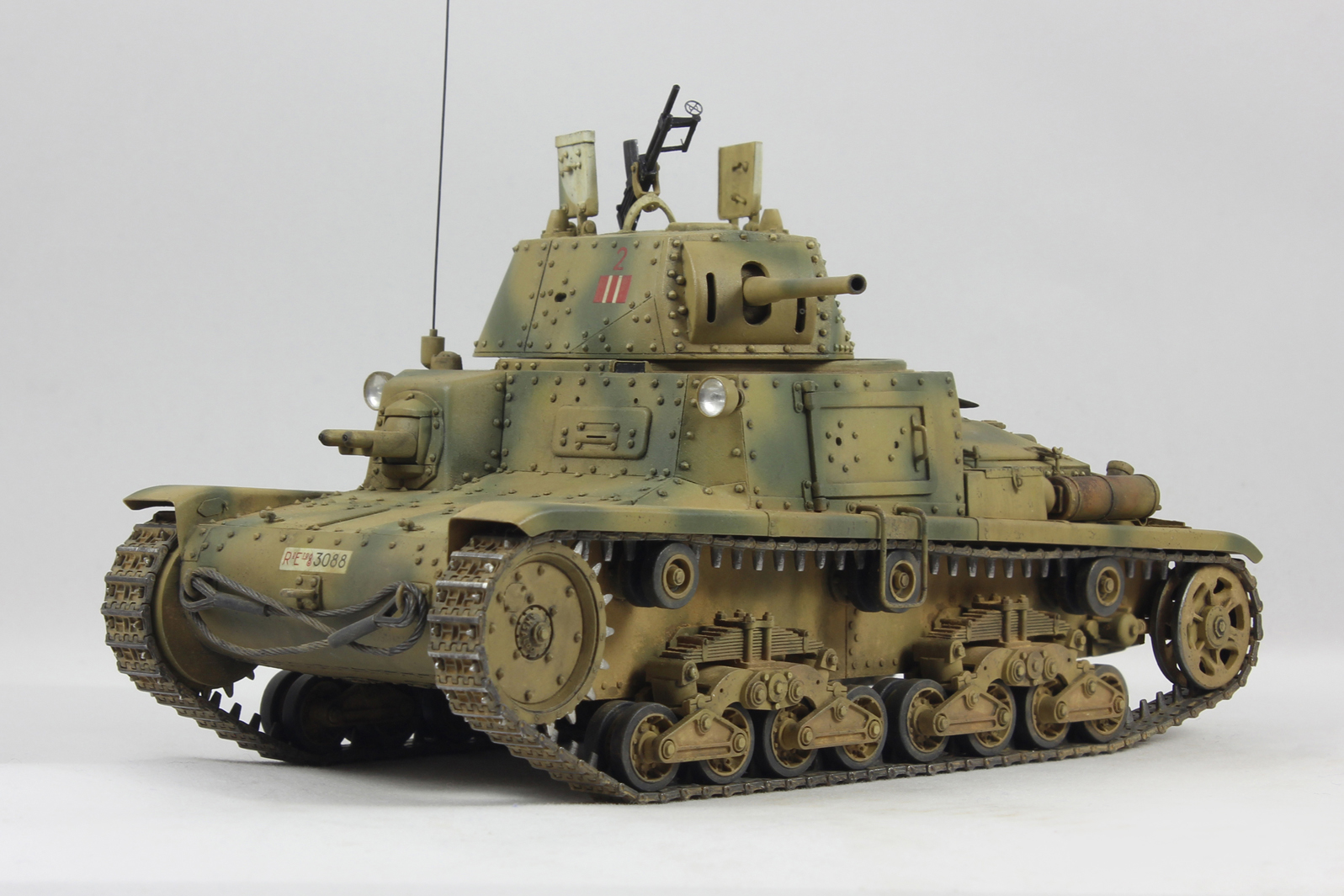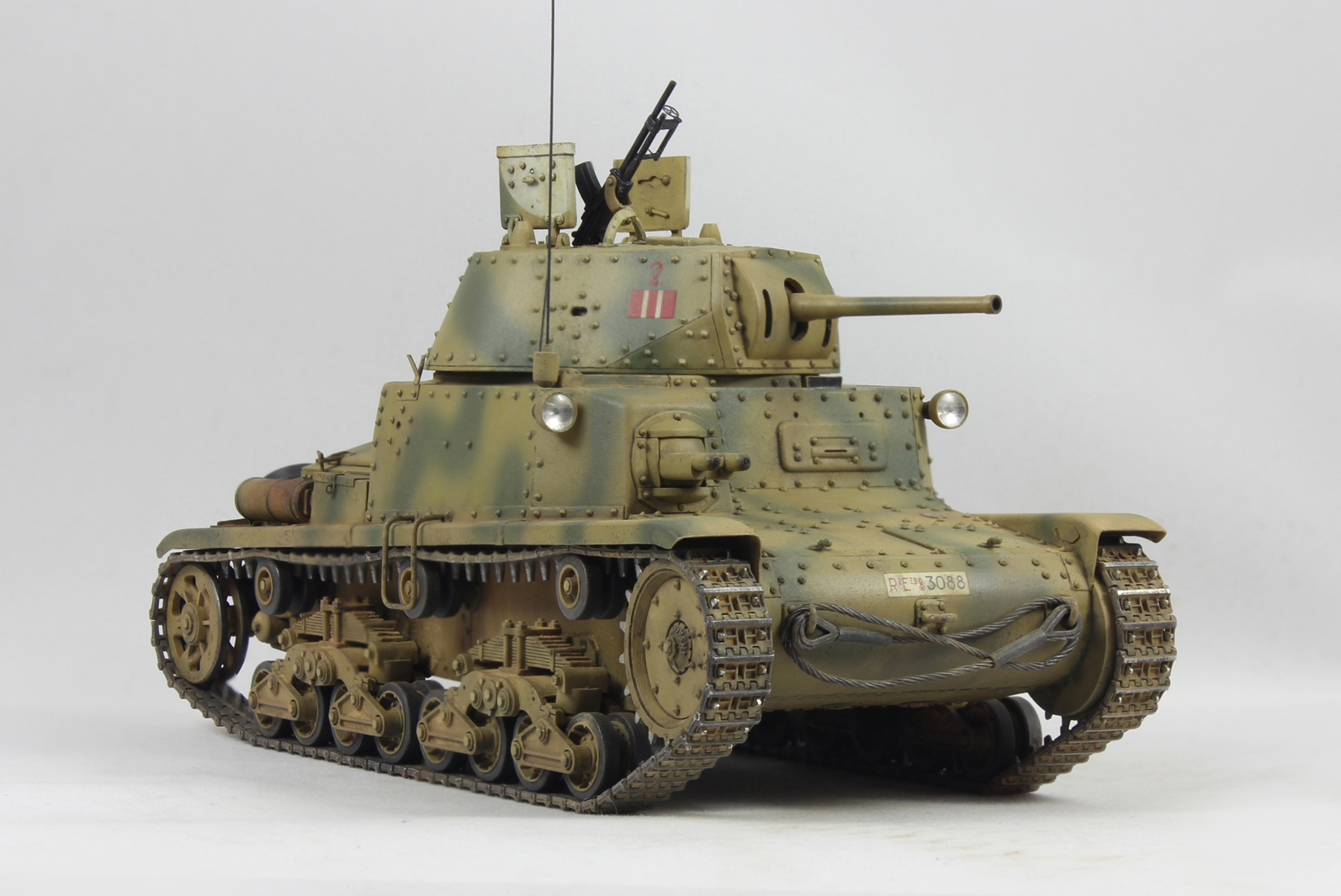 Вариант окраски взял с боксарта. 2-я машина 2-ого взвода 1й роты 8ого батальона 132 дивизии Ариэте. С толстенными декалями от Тамии было отдельное сражение. Красил акрилом от Тамии, пачкал маслом и пигментами.
