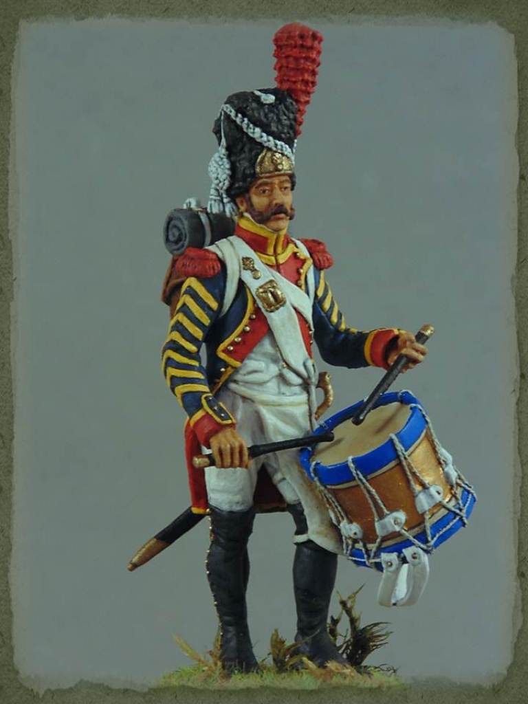 Барабанщик гренадер линейной пехоты студии Георгиевский крест, металл, масштаб 54 мм. Расписан на 18 полк линейной пехоты 1809 год, для росписи использовались акриловые краски и металлики тм Ревелл.