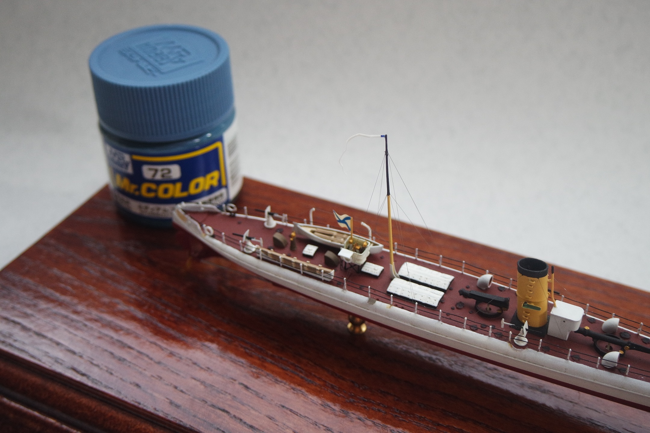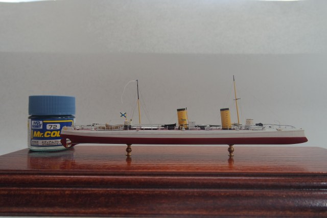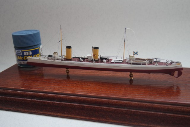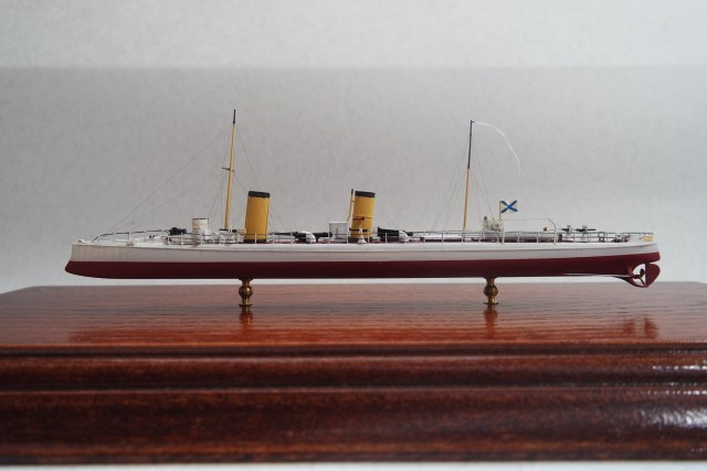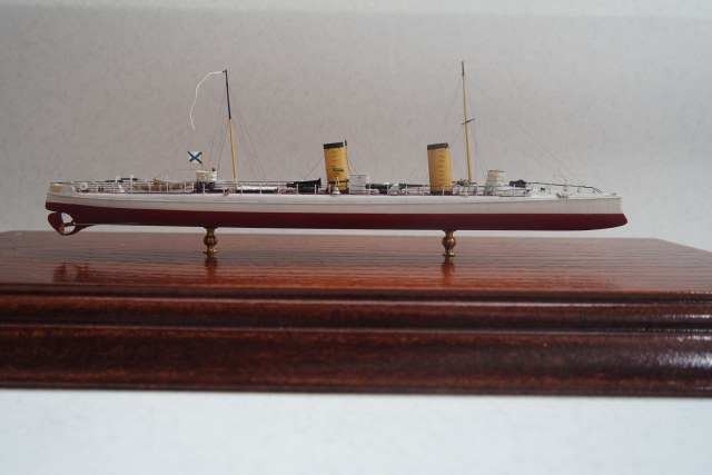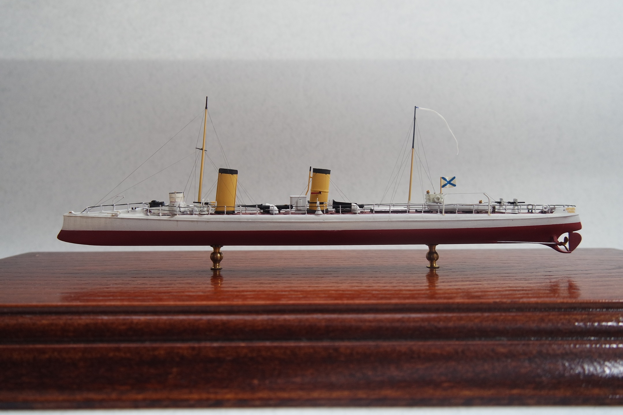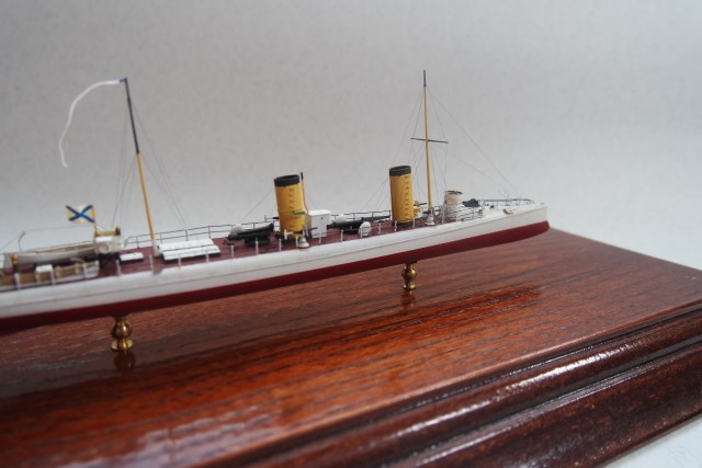 В третьих, на корабле (и на модели) установлены минные аппараты под мины Уайтхэда калибра 381-мм, снятые с достраивающегося миноносца "Статный".