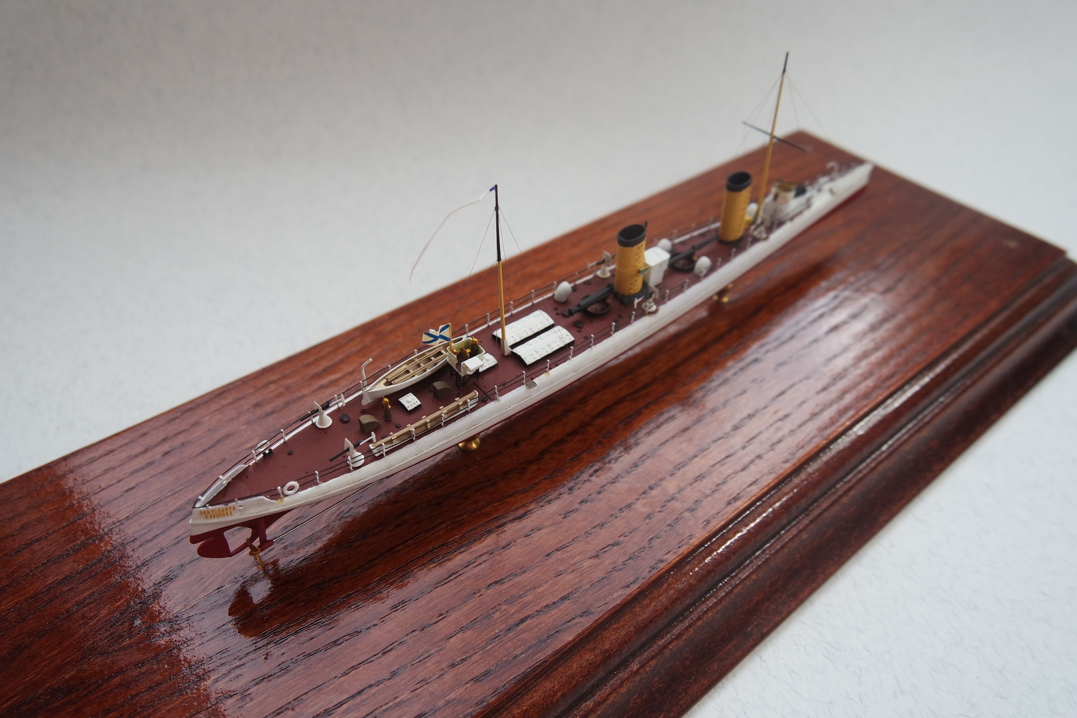 Миноносец "Лейтенант Бураков" оставил заметный след в истории Русско-японской войны 1904-1905 гг. Благодаря отличной боевой выучке экипажа и высокой скорости хода корабль дважды прорывал блокаду Порт-Артура, обеспечивая связь осаждённой крепости со ставкой главнокомандующего во Владивостоке. "Лейтенант Бураков" для своего времени являлся маленьким шедевром кораблестроительного искусства и попал в состав Российского Императорского флота в качестве трофея в ходе подавления "Боксёрского восстания" Китае. После зачисления в списки кораблей Первой Тихоокеанской эскадры на миноносце заменили артиллерийское и минное вооружение и, "Лейтенант Бураков" приступил к активной службе при эскадре. Корабль активно участвовал в боевых действиях Русско-японской войны и в июле 1904 года был торпедирован минным катером с японского эскадренного броненосца "Микаса" в бухте Тахэ. Повреждения, полученные после попадания торпеды устранить не удалось, и чтобы предотвратить захват корабля японцами, миноносец был взорван экипажем.Построить модель "Лейтенанта Буракова" меня побудило желание заполучить в свою коллекцию образец этого инженерного чуда начала прошлого века. В конструкции миноносца искусно переплелись инженерный гений того времени и эстетика высокой скорости. Миноносец выглядит стремительным и лёгким, буквально летящим по волнам. Две крупные дымовые трубы подчёркивают мощь механизмов, содержащихся внутри изящного корпуса, а наличие шести 47-мм орудий и двух минных аппаратов подчёркивают военное назначение этого маленького корабля.Модель красилась водным акрилом. Белый цвет ИМХО является сложным для 700 и 350 масштабов, пришлось тщательно подойти к выбору оттенка и цвету смывки. Модель легко собирается, практически на одном дыхании. Сильно прошу не пинать, в реальности модель выглядит лучше, чем на фото. Ну и предлагаю поддержать публикацию "Лейтенанта Буракова" в галерее. :-)