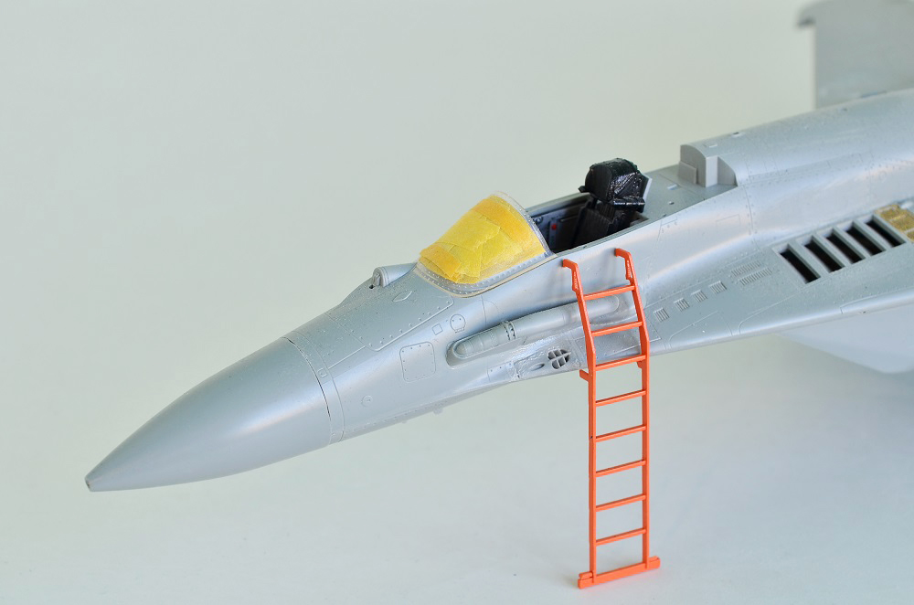 Окрашена модель основной и пятна камуфляжа нитро-красками , мотогондолы были применены Bare metal Silver от Tamiya , и АКАН 66018 жженый металл( коричнево-вишневый). Радиопрозрачные поверхности законцовок килей и обтекатель конуса станции серый также нитра,разводил сам. Шины колес шасси нитра черная , диски АКАН зеленый(выцветший). Сопла тонирующие пигменты АКАН и пудреницы от TAMIYA. БАНО на хибинах сделаны глянцевыми лаками от TAMIYA.