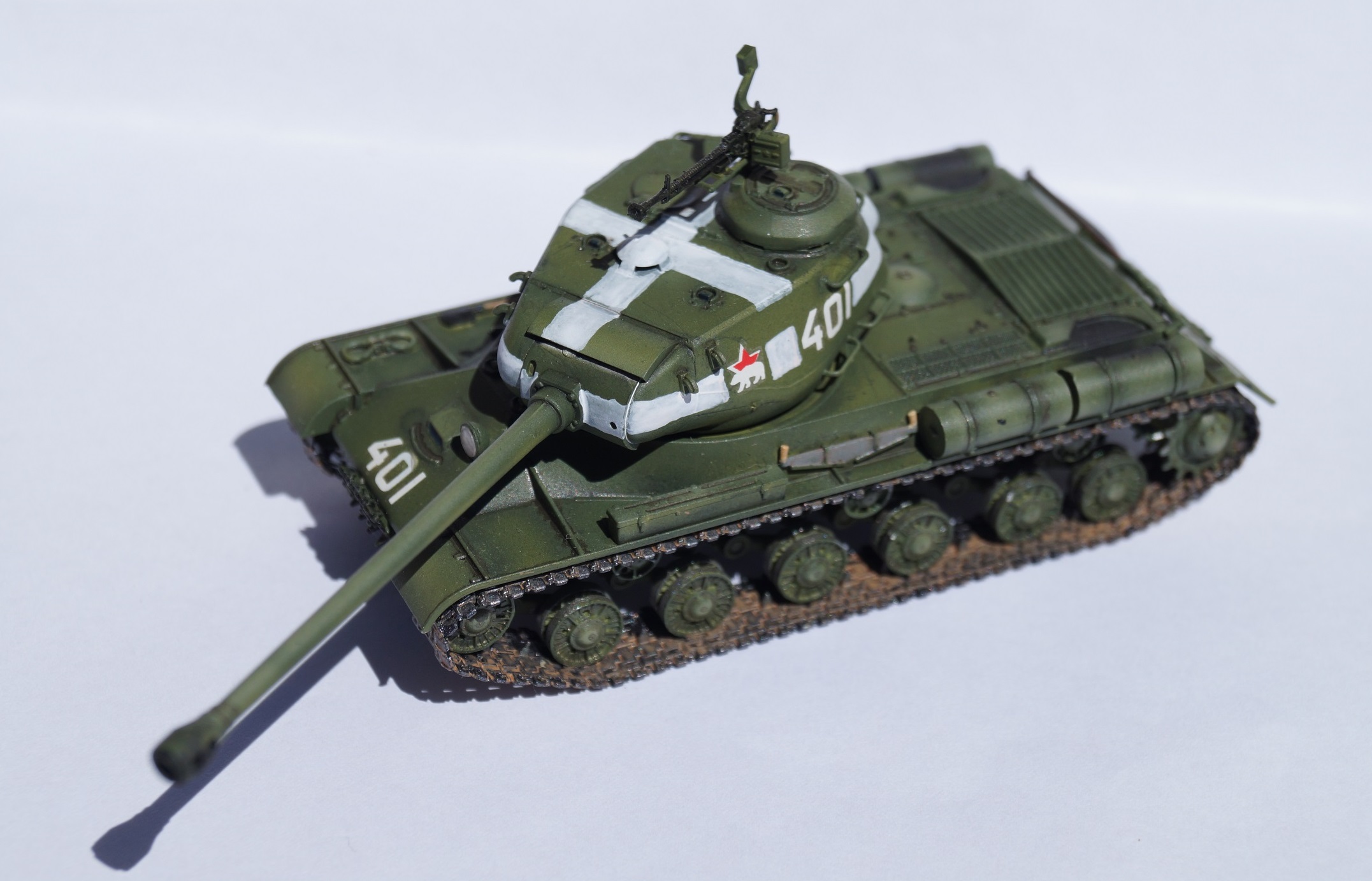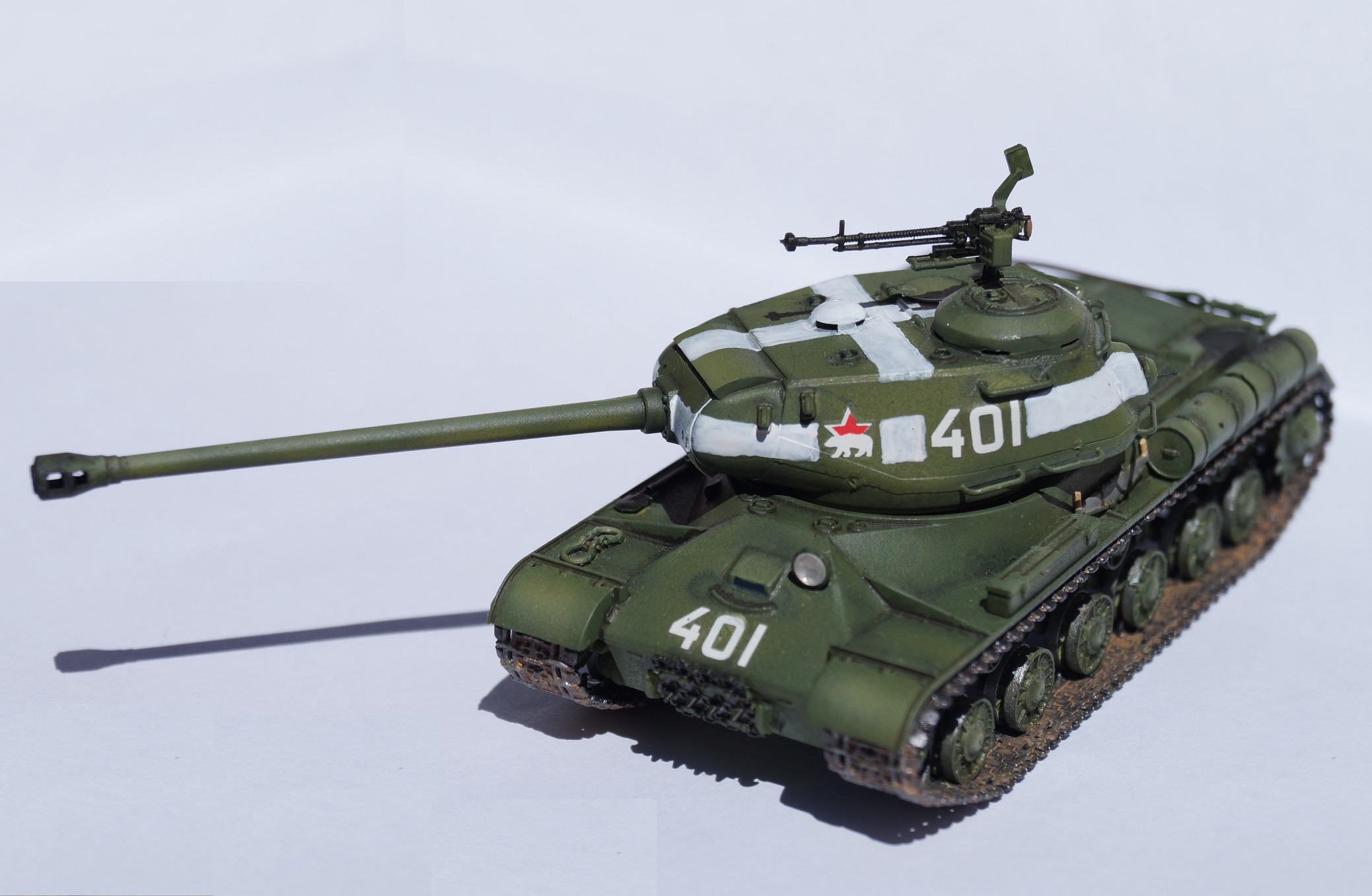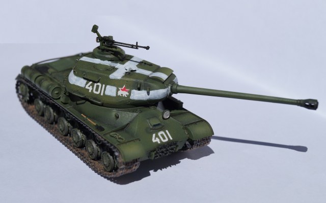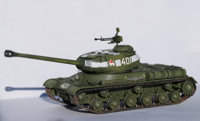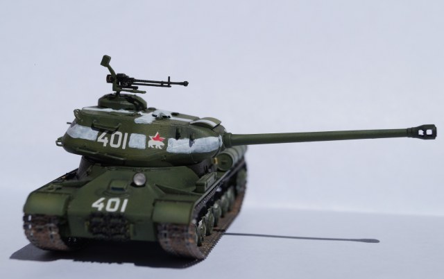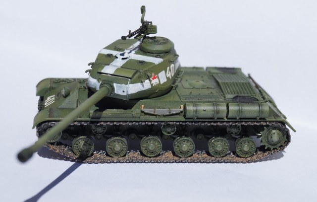 Представляю вам модель отечественного тяжелого танка ИС-2. Работу над ней выполнял параллельно с "Шилкой" в сотом масштабе, выставленной ранее. Изначально хотел успеть к 9 мая, но работа затянулась, а отфотографировать танк руки дошли только сейчас.