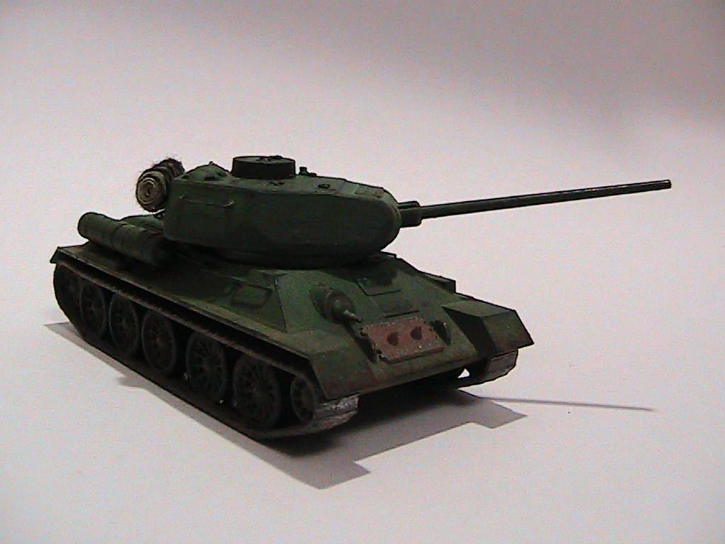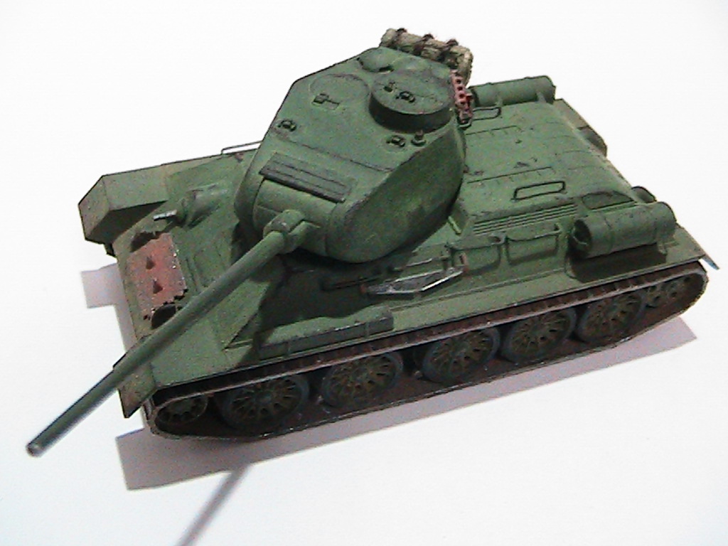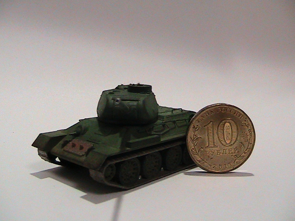 Привет! Представляю вашему вниманию модель Т-34/85 в масштабе 1/100. Модель была сделана довольно давно, но выкладываю только сейчас. Добавил парочку дополнений: