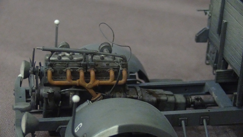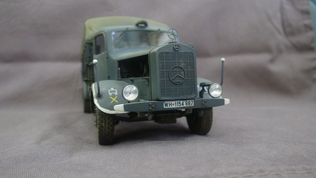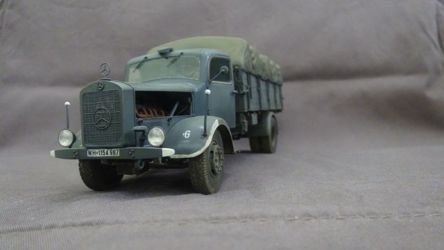 Из набора от звезды mersedes benz L4500r решил собрать авто с приводом на заднюю ось. Идею почерпнул у Михаила Уколова. Сам набор описывать нет смысла, все его давно знают. Привязки к конкретному прототипу нет. Попробовал изобразить авто в начале операции "Барбаросса". Первая танковая дивизия вермахта, автомобильная рота. Дорабатывал двигатель, трубопровод воздуха, усы габаритов из проволоки, зеркало тоже, двери рабочие, колеса поворачиваются, знак автопоезда рабочий. Использовал фототравления от "мира моделей", колеса от "Панцер Арт", знак нотэк от него же. Под капотом сухая декаль от "Аршер". Красил акрилом "тамия", масло и пигменты "миг" и "ак". Косяки есть, самый страшный перепутал декали в переди, заметил после глянцевого лака, переделывать не стал.