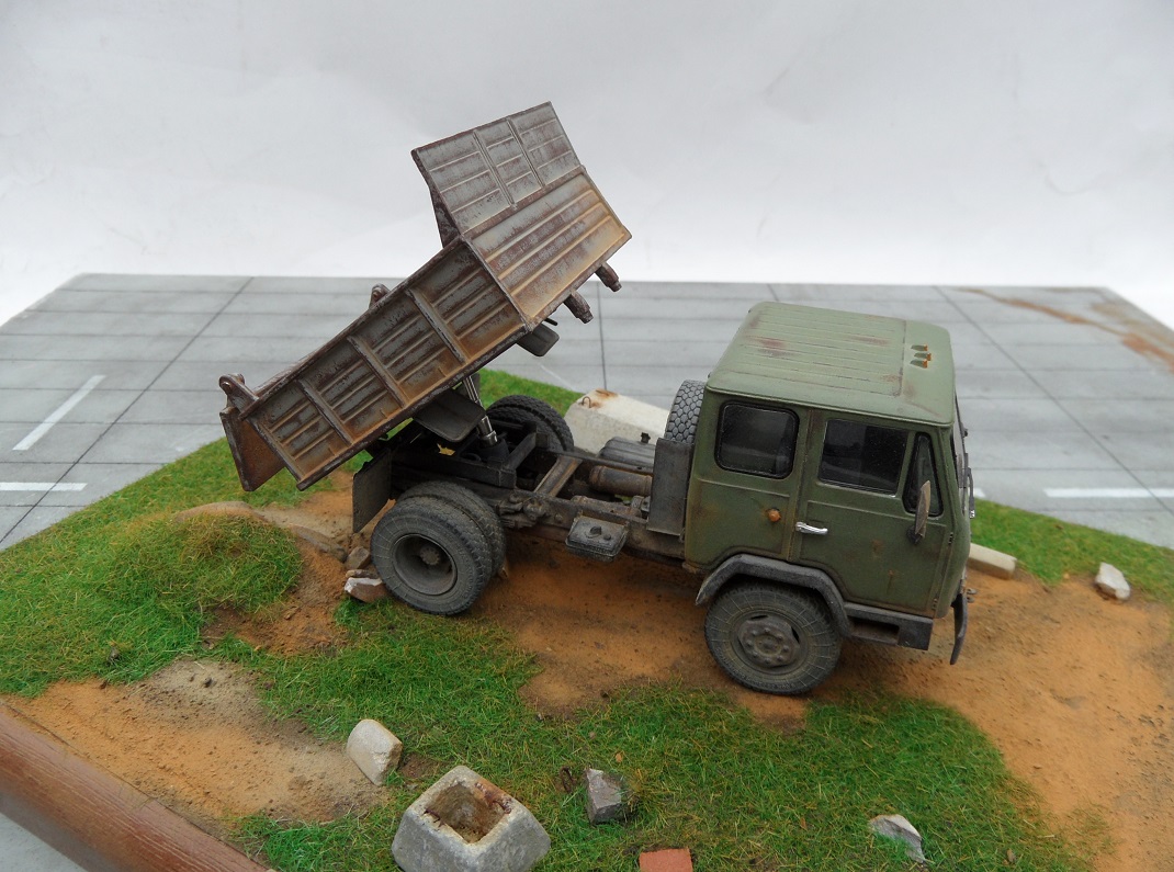 Всем привет! Очередная новинка от AVD Models- Каз самосвал. Модель имеет те же характеристики что и Каз тягач, потому описание повторять не буду. Все тоже самое за исключением добавленных деталей подъема кузова , и самого кузова. Деталировка понравилась, кузов как и кабина подвижный, имеет возможность подниматься и откидной борт. Шток гидроцилиндра из металла, что является огромным плюсом. Модель в сборке очень простая, все предельно ясно да и стыковка отменная! В общем от сборки получил удовольствие! Окрашивал мотип, серая и хаки, тонировка сухая кисть, пигменты. Приятного просмотра!