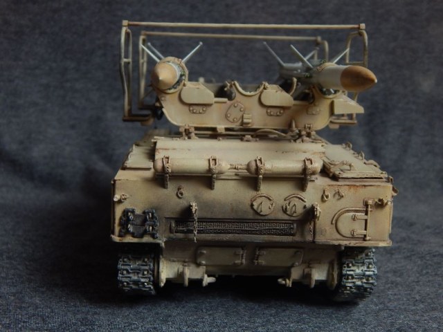При помощи окраски решил показать 2П25М3 во время эксплуатации в странах ближнего востока, после стрельб. Обгоревшие поверхности имитировал с использованием метода «соли и лака для волос».
