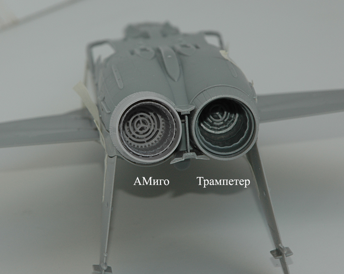 Данный набор фирма АМиго выпустила под модель Миг-31Б/БМ от Трампетер, предупреждая вопросы о том, подойдет ли набор на модели Звезды, Кондора и ICM, сразу же отвечу - не подойдет. В обзор я добавил несколько сравнительных снимков. На них видно, что диаметры капотов у всех старых моделей намного больше, чем диаметры двигателей от АМиго