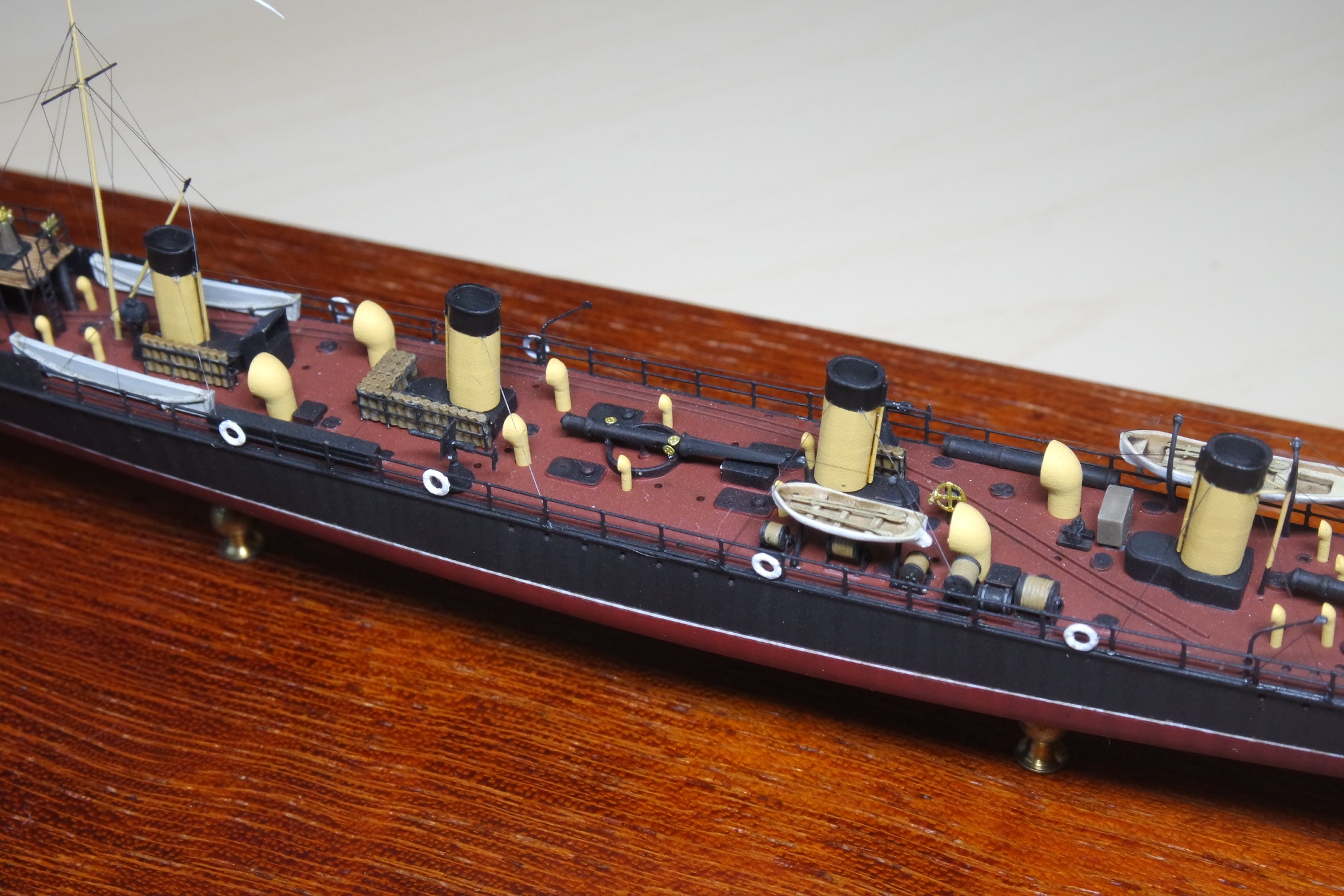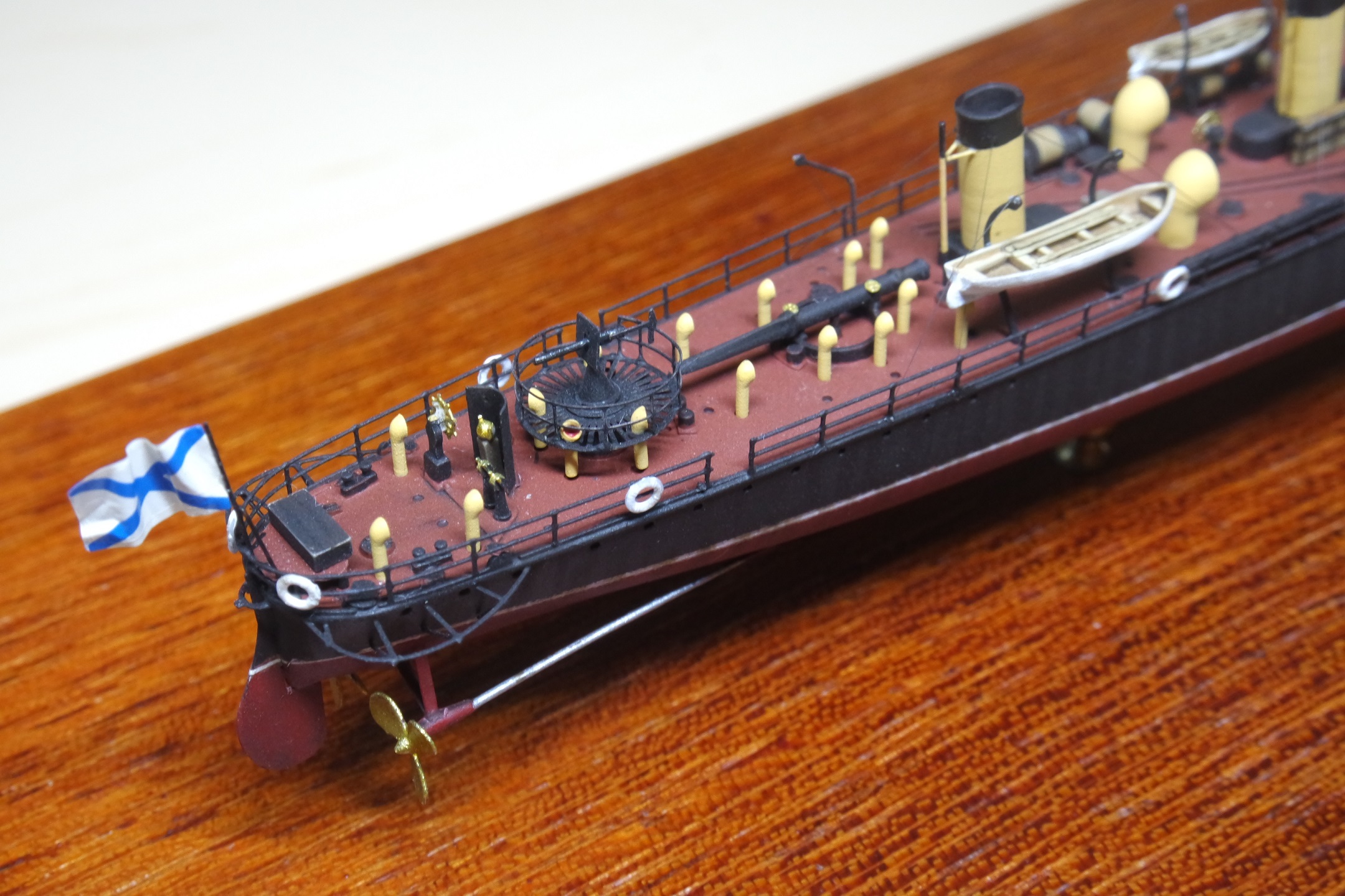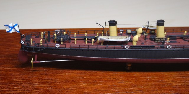 У носового орудия отсутствовал щит, так как он «загораживал обзор рулевому на мостике»/из Википедии/.Для большей красоты можно было поставить иллюминаторы.Рельсы можно было выделить а то они получается накрыты линолеумом.