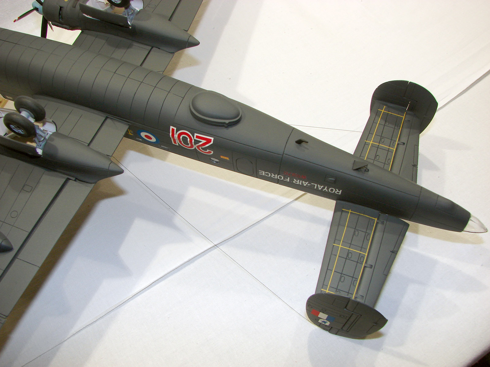 Набор представлен на рынке компанией «Восточный экспресс». Есть подозрение, что модель – перепаковка чего-то древнего импортного (Коллеги, подскажите, если так). Косвенно на это указывает тот факт, что декали процентов на 40 не соответствуют инструкции. Набор брался с желанием переделать все и вся. Увы, энтузиазма хватило спилить внешнюю расшивку и нарезать внутреннюю, доработать створки шасси и кабину пилотов. Остальная творческая энергия ушла на борьбу с утяжинами, облоем, кривыми деталями. Так что шкурка и шпаклевка по-прежнему лучшие друзья стендового моделиста:). Самое большое расстройство вызвали мутное (местами) остекление и отсутствие в наборе схемы окраски (может кто вынул?). Так что красить пришлось по схеме Airfix и фотографиям из интернета. Модель окрашена акрилом Vallejo и задута матовым лаком от Тамии. Тем не менее, после завершения сборки самолет вызывает чувство глубокого удовлетворения своей красотой и размерами:)