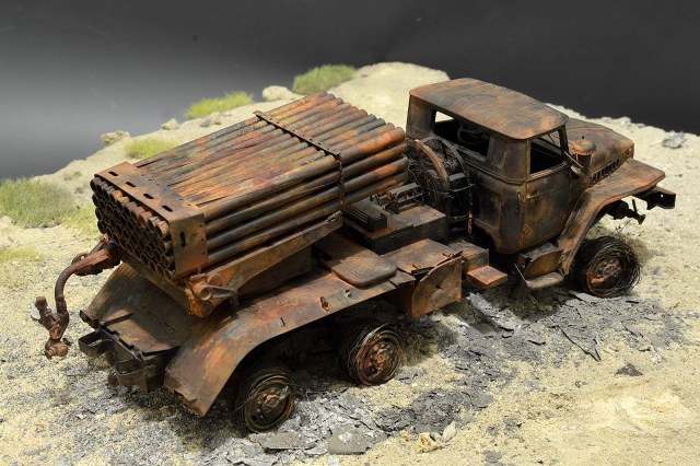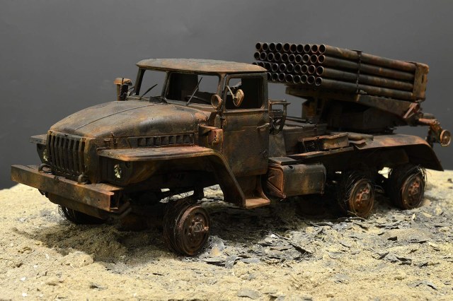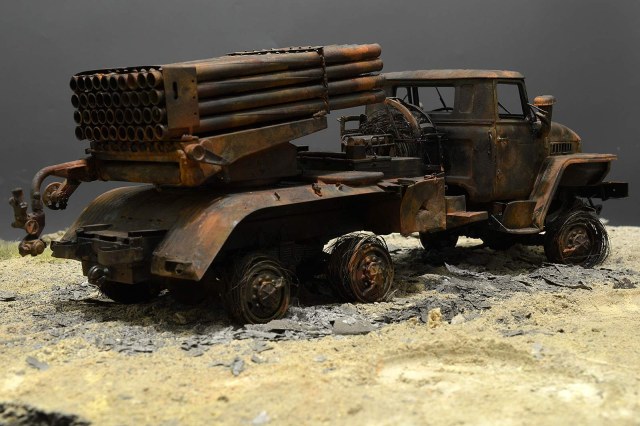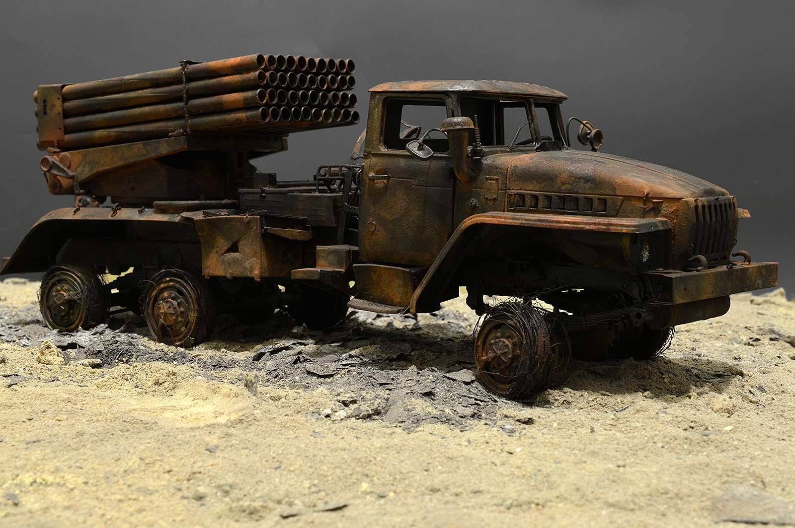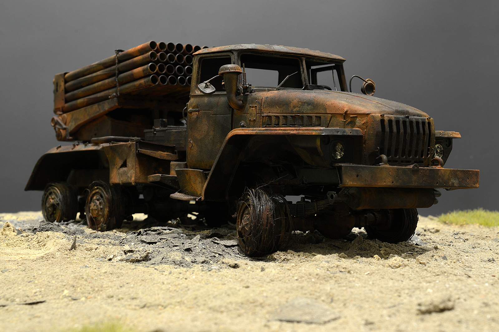 Этой моделью заканчиваю эпопею из серии «сожгу всё до рамы». Больше из современки не планирую делать сгоревшую технику год, может, два… Модель от Trumpeter. Замечательный набор, при сборке которого получаешь только удовольствие. Отменное качество и количество деталей, превосходная стыкуемость… Данная модель не является прототипом конкретной машины, хотя фото сгоревшего авто использовал. Модель делал по фото реальных машин. При моделировании немного накосячил, забыл протянуть коллектор от выхлопной трубы. За это тресните меня табуреткой, что бы не забывал… Старею, однако…