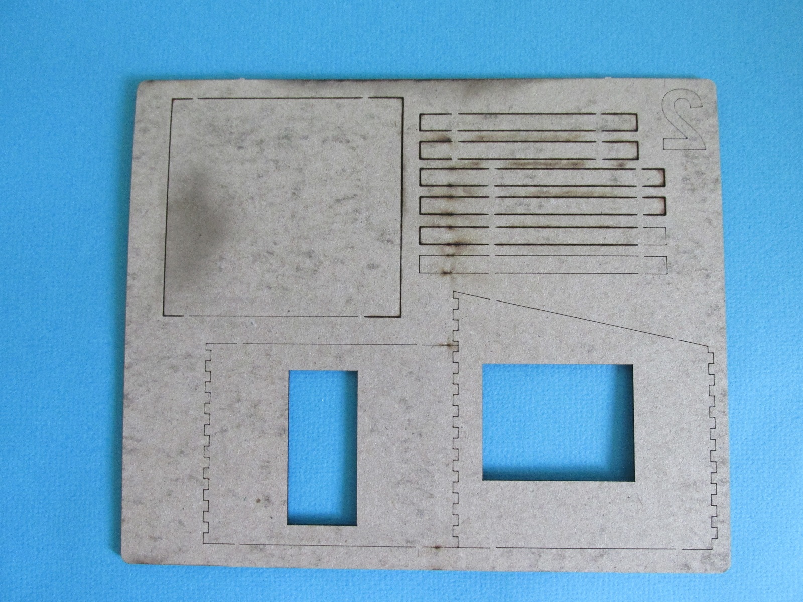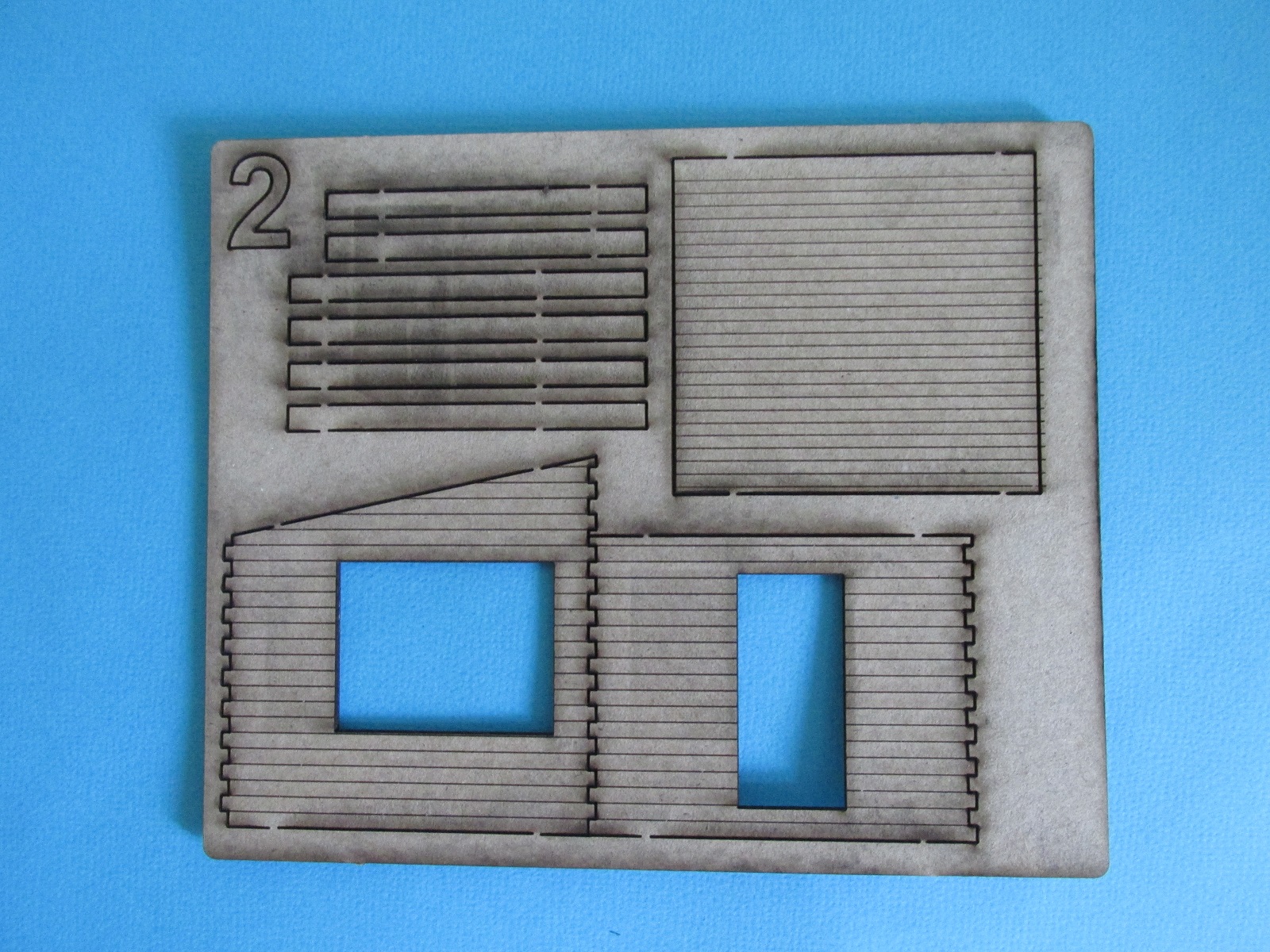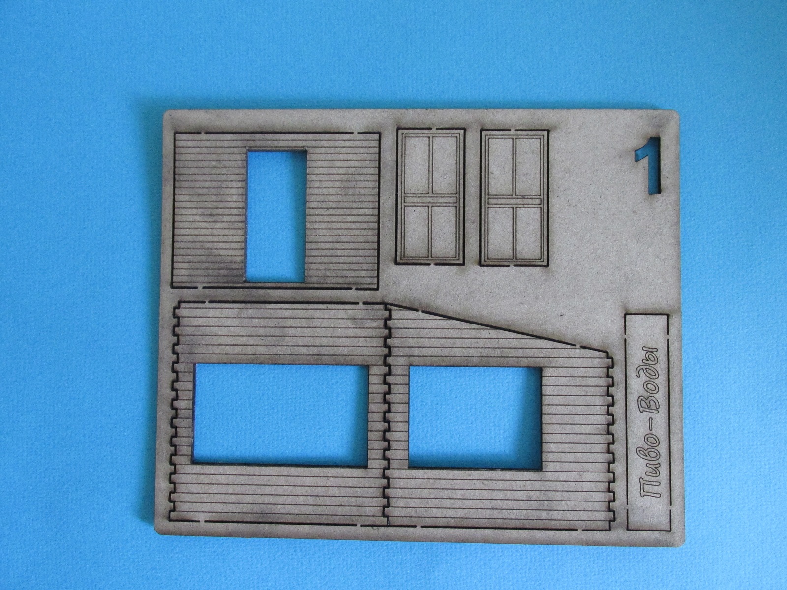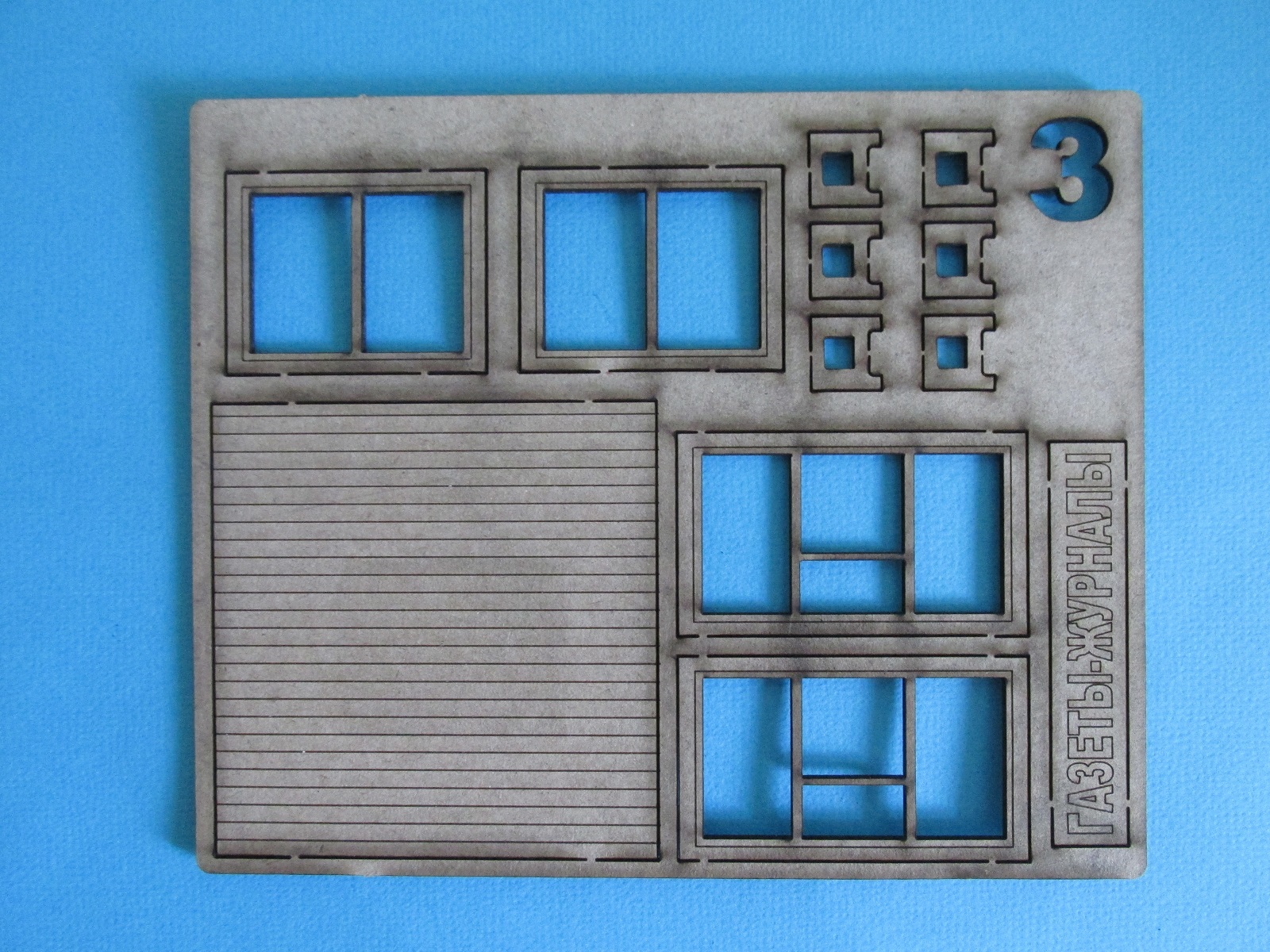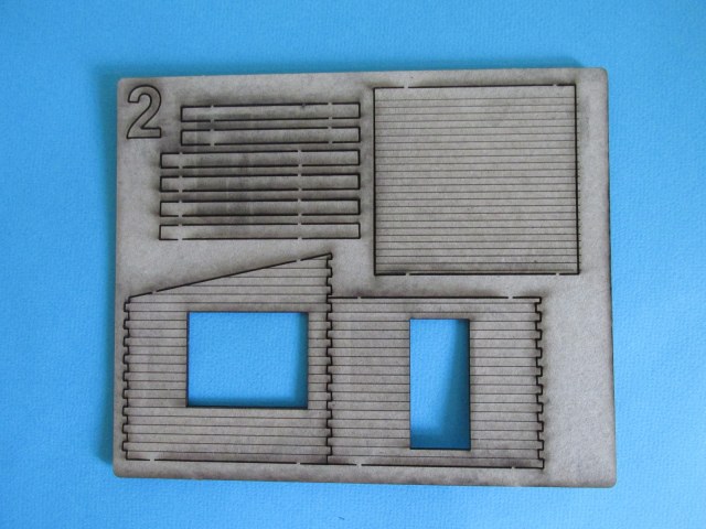 В первом пакете всё необходимое для постройки киоска. Четыре пластины из шпона, по заверению производителя, некоторых деталей дано чуть больше чем нужно, пригодятся для скамеек или ещё куда. Четыре варианта вывески. Плюс пластина с прозрачным пластиком для имитации окон, но в моём случае она была слегка поцарапана, в принципе не беда, есть чем заменить.