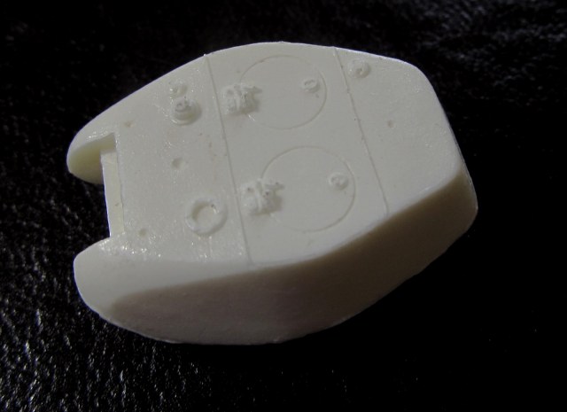 Деталей не так уж и много - башня, маска пушки, бронировка перископа, защита маски пушки и вентилятор. Буксировочных рымов нет, только намечены дырочки под них..