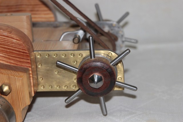 Для большей достоверности должен быть храповой механизм на шкиве заряжания. И наверное, поменьше станочно-точеных элементов - выглядят анахронизмом.