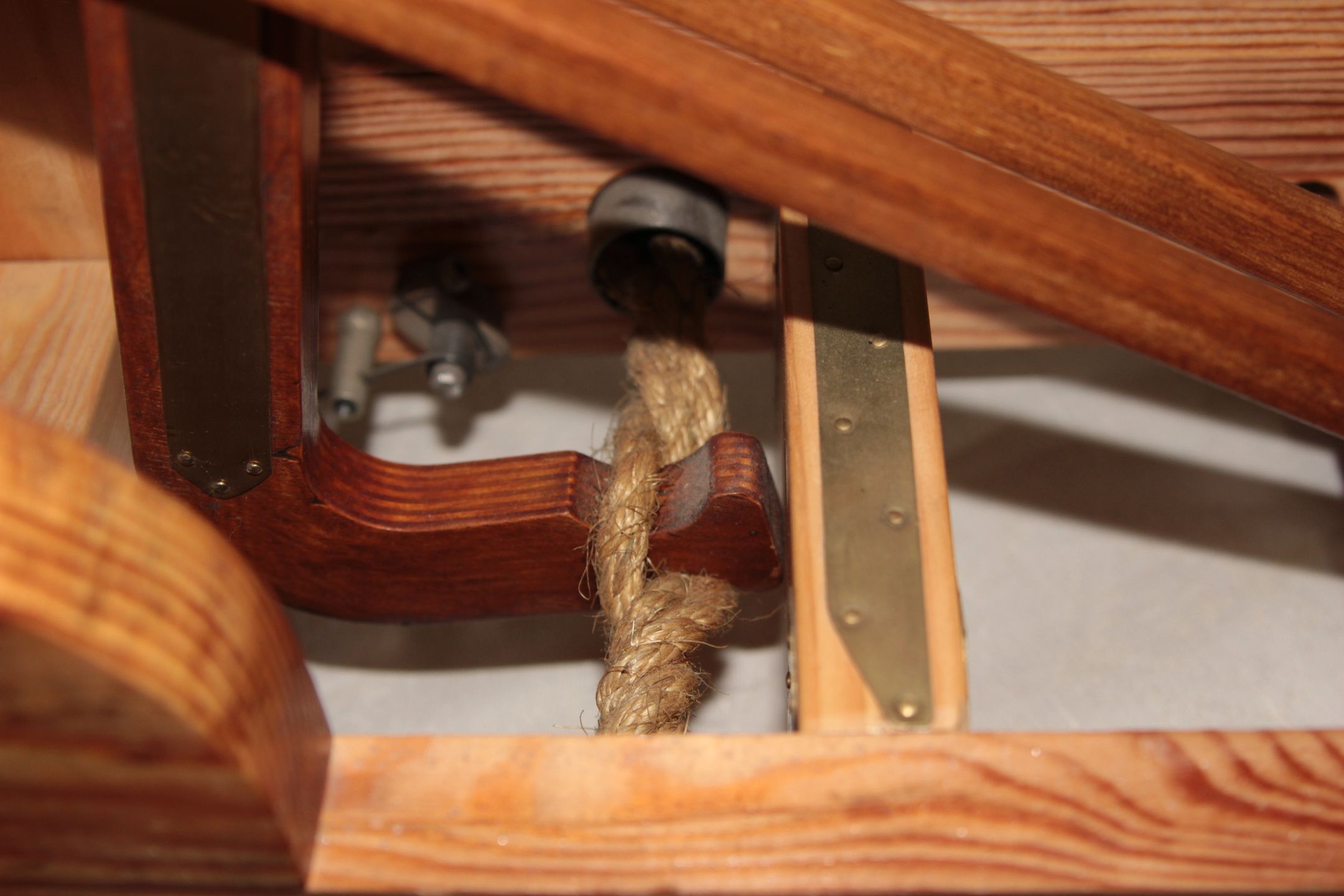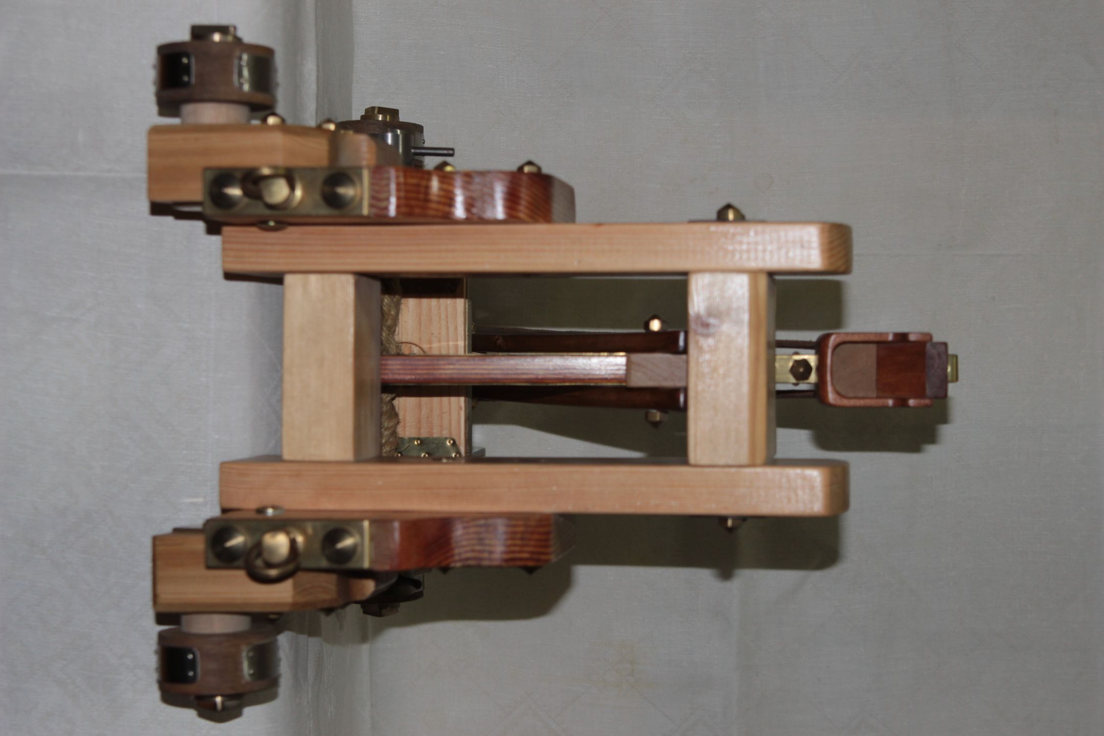 Использованные материалы: сосна, дуб, лиственница, сталь, латунь, пенька.
