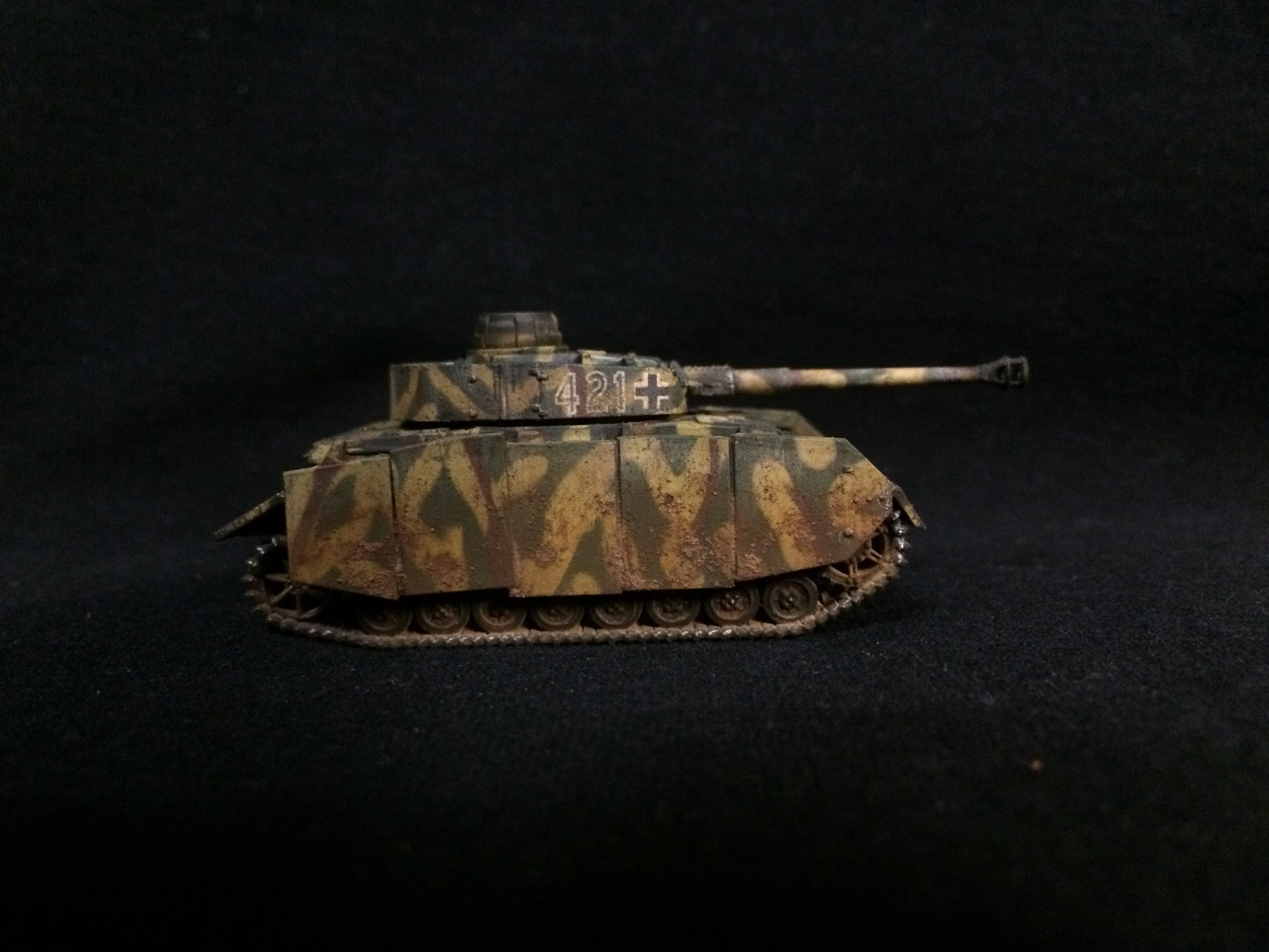 Представляю на Ваш суд модель танка PzKpfw IV в масштабе 1:100. Модель от производителя 15мм варгеймов Battlefront, в частности этот танчик делался для скирмиша TANKS) так же "легален" для flames of war :) Для окраса использовалась краска vallejo, в качестве смывки, за неимением лучшего, использовались воши от того же vallejo. Пигменты юзал ZIP-овские, и немного revell) Лак vallejo. Хотел попробовать элементы везеринга на нем, с применением масляной краски, но вышла дикая краказябра, пришлось оставить эту затею ограничившись парой еле заметных штришков. Сколы заметные делать не стал, т.к. боялся визуально "перегрузить" модель, масштаб то "слепой") Так что еле заметно прошелся губкой с темно серой краской и после матового лака, кое где добавил карандаша. Модель игровая, потому внешним видом пришлось пожертвовать немного. Ну или я просто не умею правильно фиксировать пигменты :)) Прошу не судить строго и жду конструктивной критики)