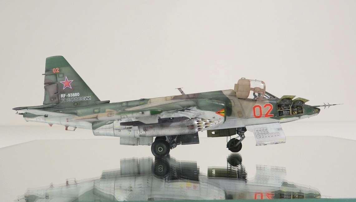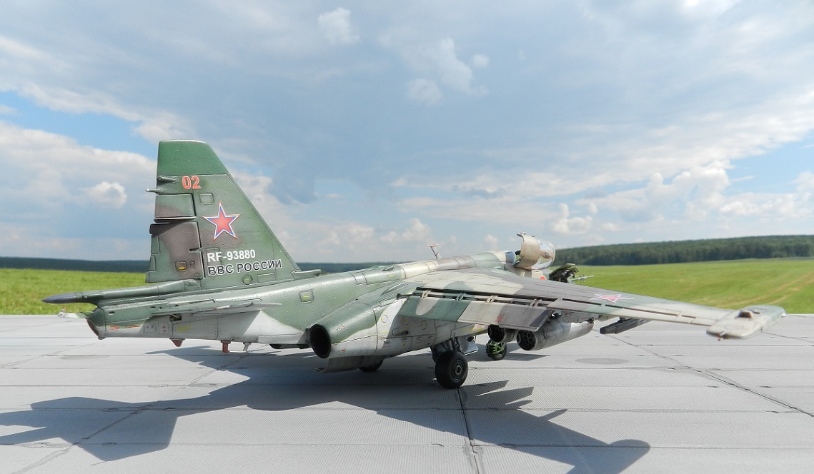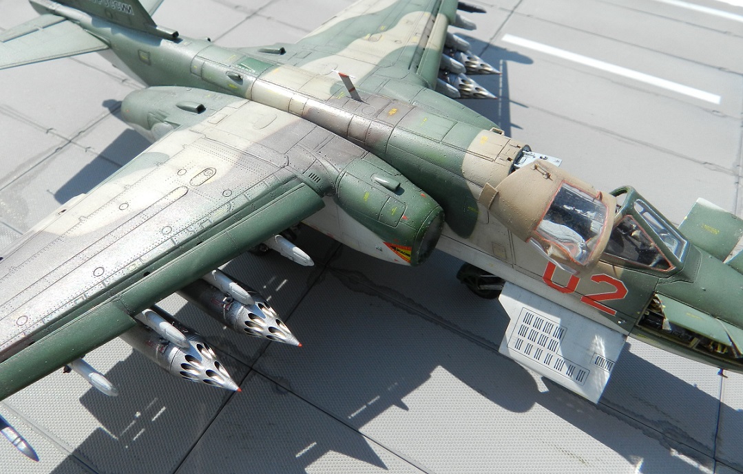 Приветствую всех! Выставляю очередную свою модель и долгострой)), уже ставшей легендарной машиной Су-25. Модель для запила взял за основу от "Артмодела" (так как более похожа на оригинал, да и выбор не валик его в 72-м)) Хотел сделать все по максимуму , показать всю красоту этого самолета! Модель весьма не простая в сборке, да и много пришлось дорабатывать самому и использовать дополнения, так как запланировал такую "распушонку". Перечислять все доработки нет смысла их очень много!)) (проще посмотреть в "сказке о стройке") Из основных доработок это; кабина, ниши и стойки, механизация крыла, носовые отсеки оборудования, движок. Подставку задумал под него в виде небольшой диорамы, но сам самолет на ней не закреплен и можно легко его снять с нее . Из за подставки долго думал куда мне разместить модель , в "авиацию" или "диорамы" но все же решил что в "авиацию" , так как для себя решил что подставка всего лишь делалась как дополнение к модели на полке, основной акцент все же на самому модель.