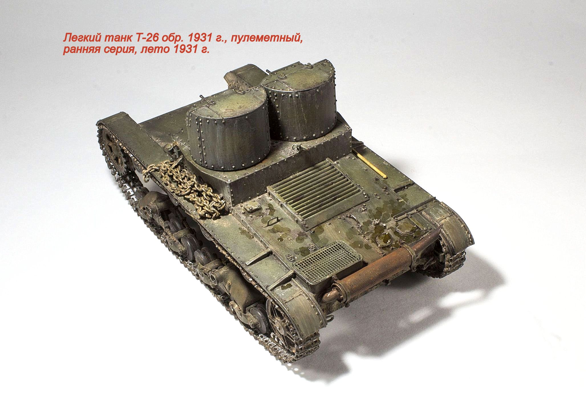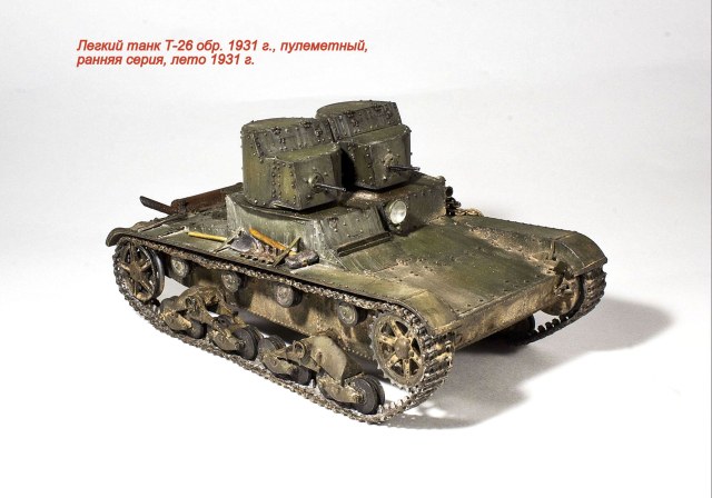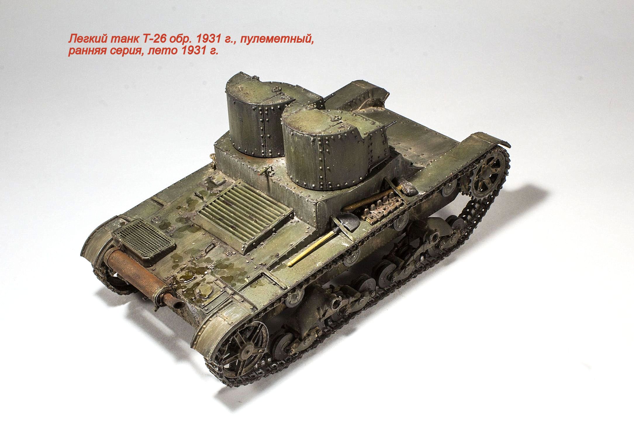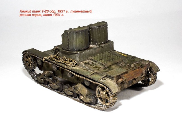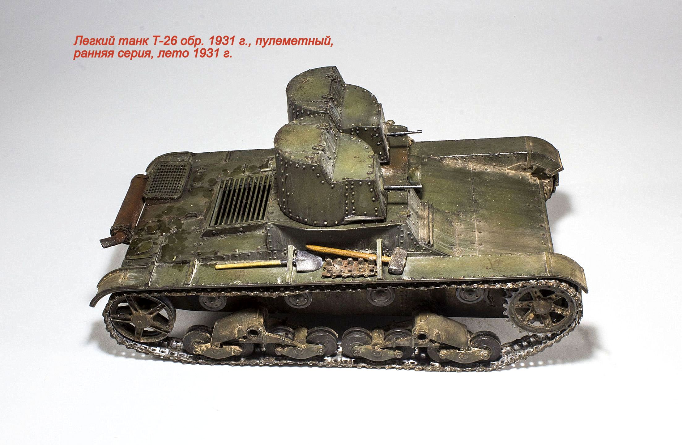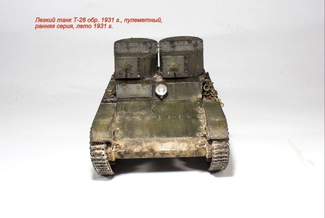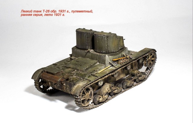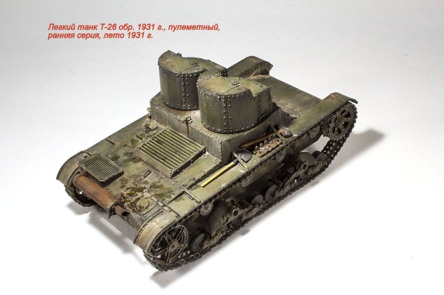 Представляю очередную модель из бесконечного ряда "двадцатьшестых" - Т-26 обр. 1931 г., двухбашенный пулеметный ранней серии.