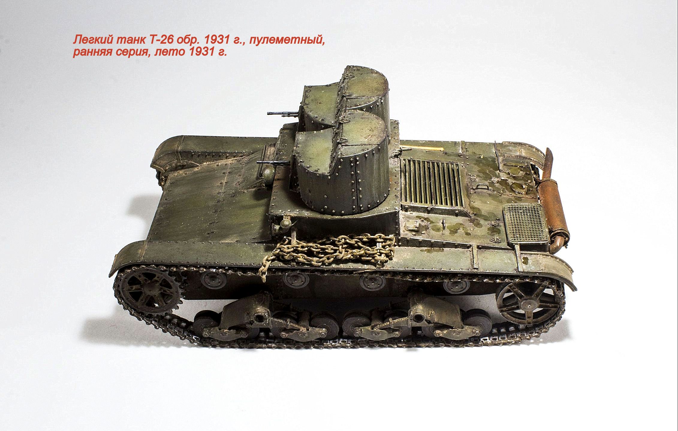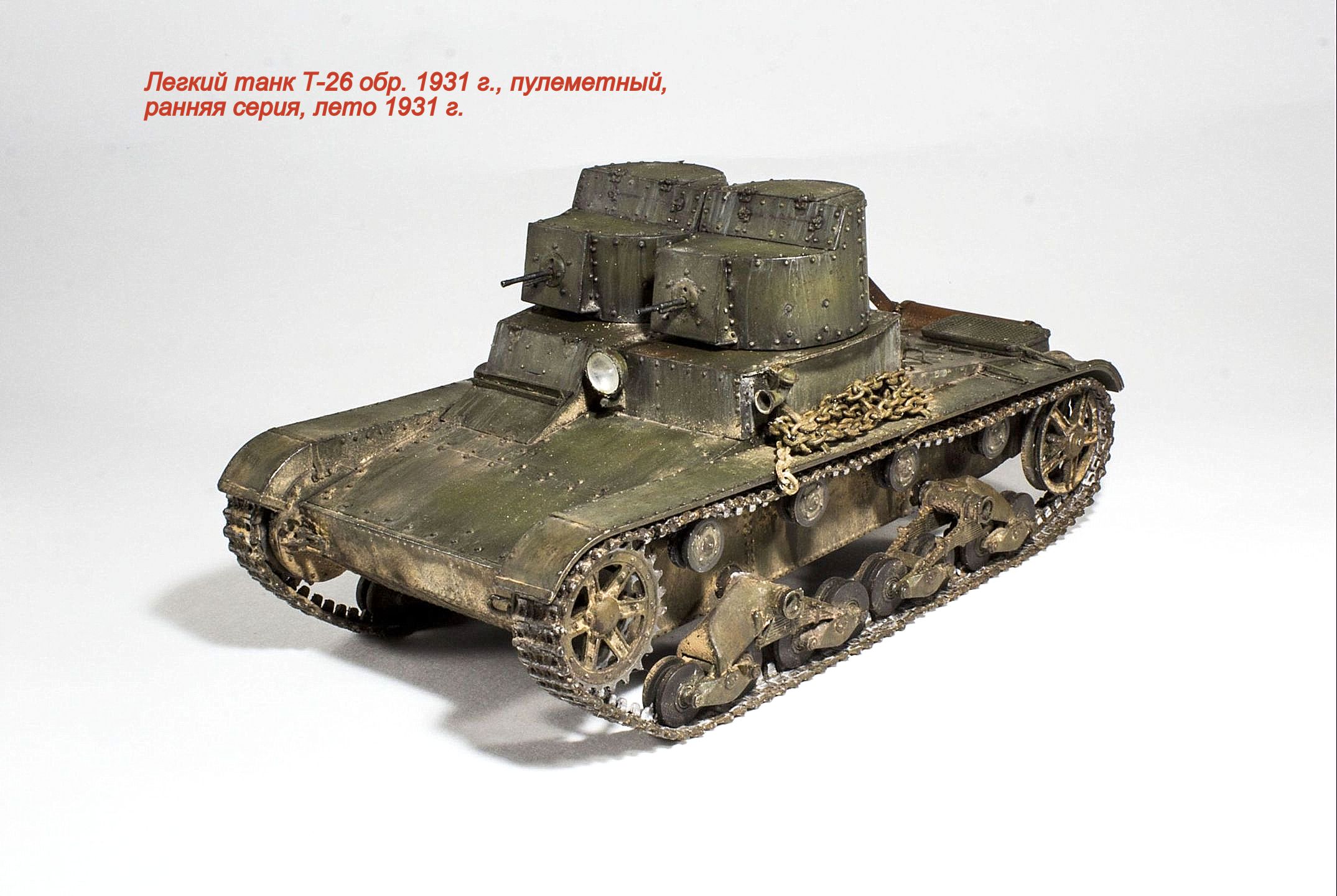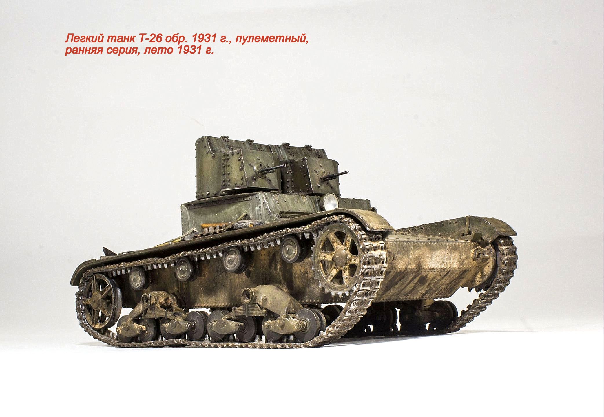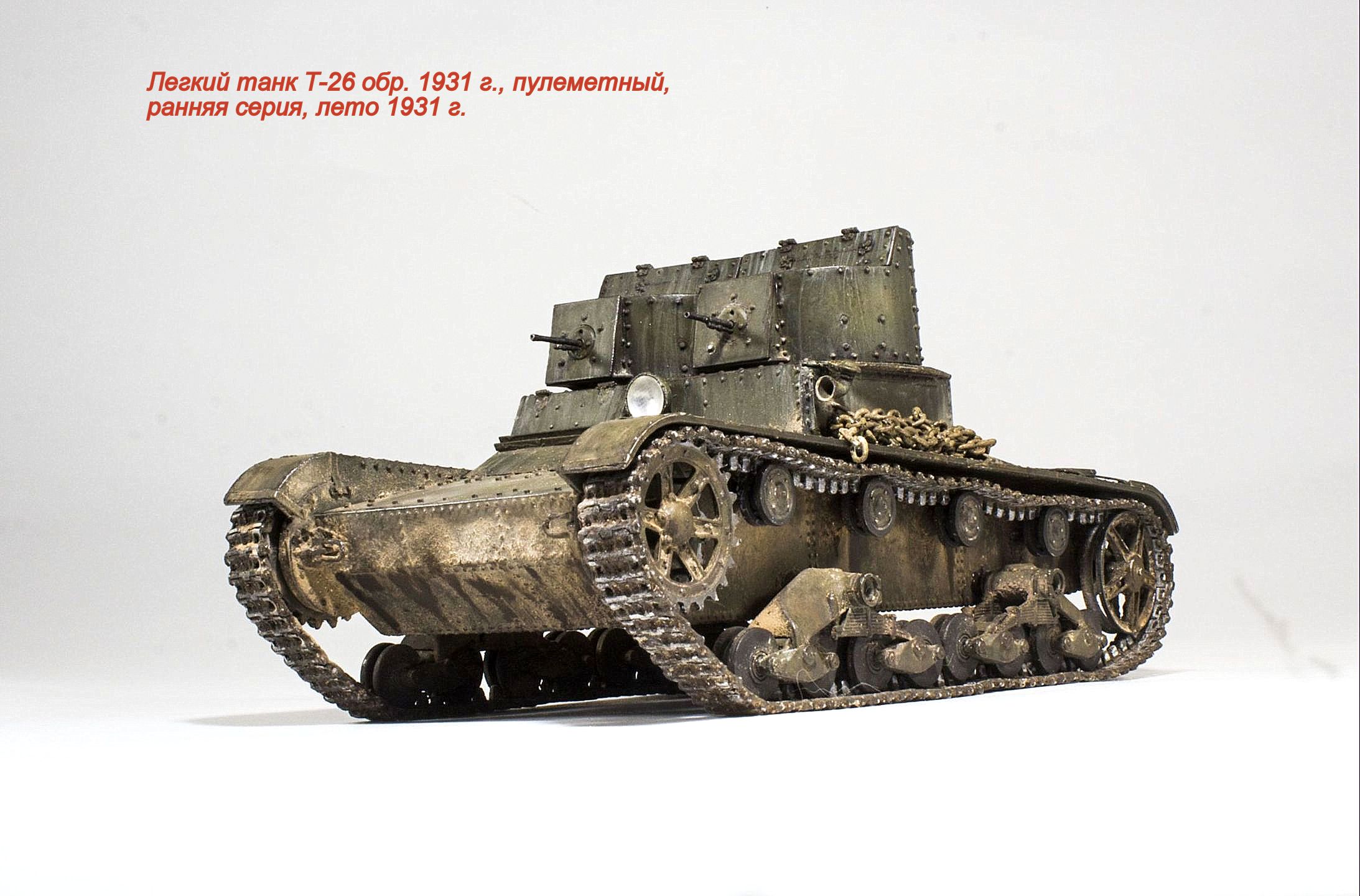 Представляю очередную модель из бесконечного ряда "двадцатьшестых" - Т-26 обр. 1931 г., двухбашенный пулеметный ранней серии.