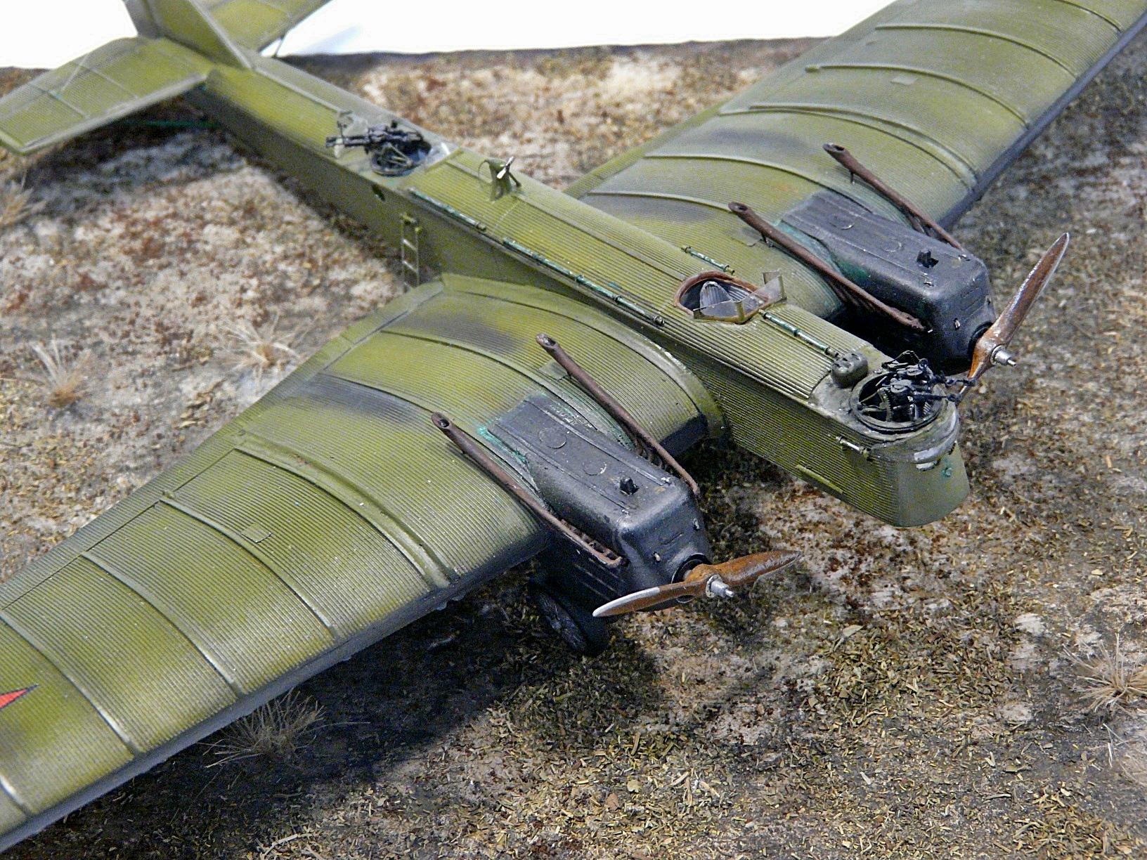 У меня нет сейчас фото бомб именно на Р-6, но насколько я знаю боеприпасы допустим для ТБ-3 конструкцией не отличались, именно сотки ФАБ,ЗАБ,ДАБ часто подвешивались именно "иксом".