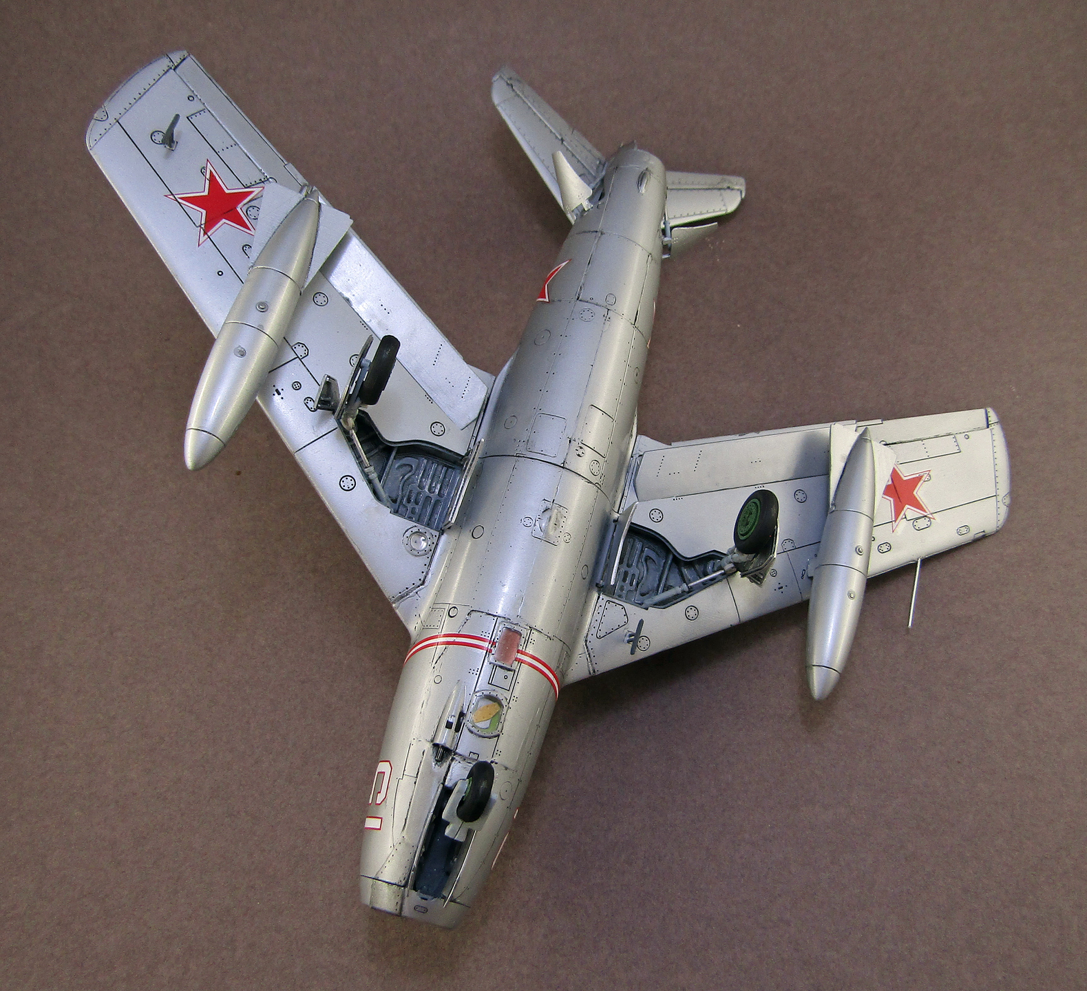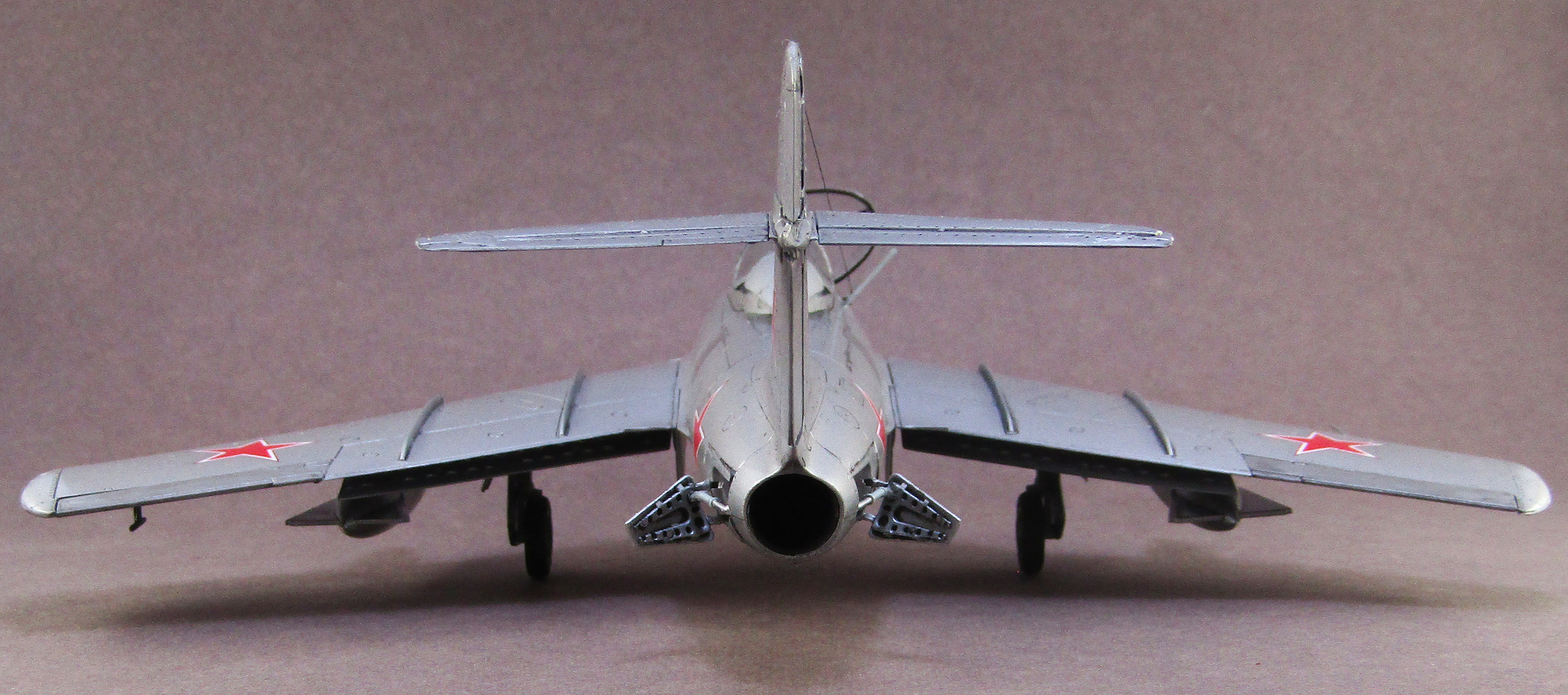 Кабина "пустая", фюзеляжные щитки основных стоек установлены наоборот, шов на вилке передней стойки, отсутствует хвостовой огонь, нет блока ракетниц, - это к предыдущим замечаниям. Понятно, что можно сослаться на заказчика... С уважением, Герман.