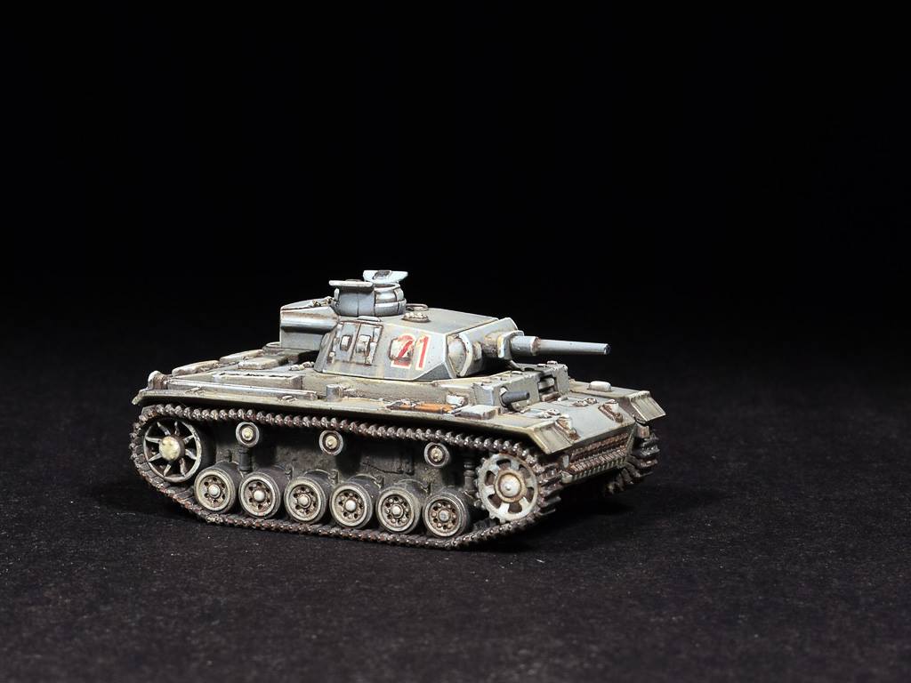 Pz III, BattleFront, 1/100. Собирается модель отлично, качество отливок радует. Доработок не было, только рассверлил ствол пушки (по хорошему нужно менять ствол пулемета на иглу). Окраска в игровом стиле для настолок - акрил Тамия аэрографом, цветовая модуляция в 3 оттенка, тонировка - худ.масло и химия Wilder.