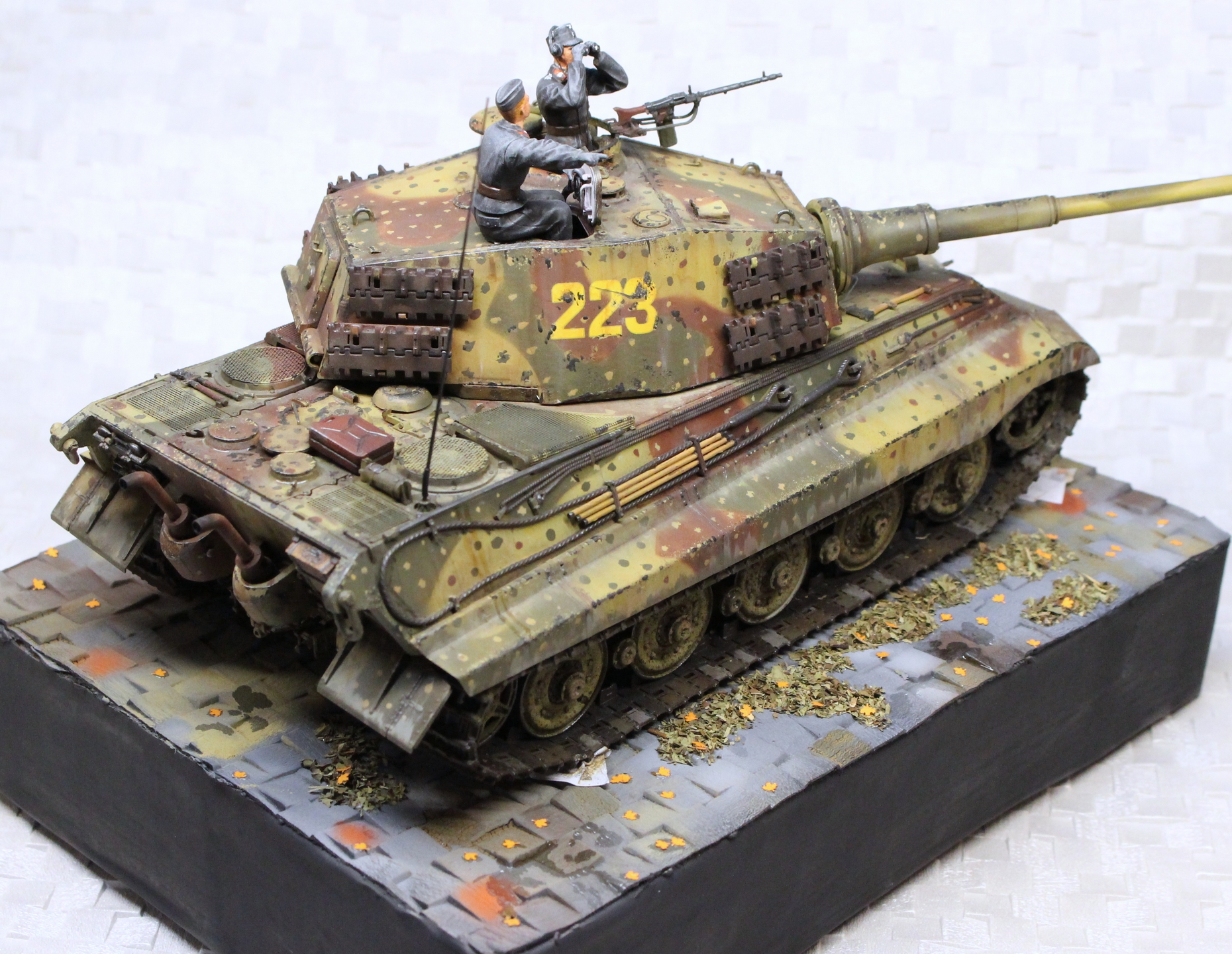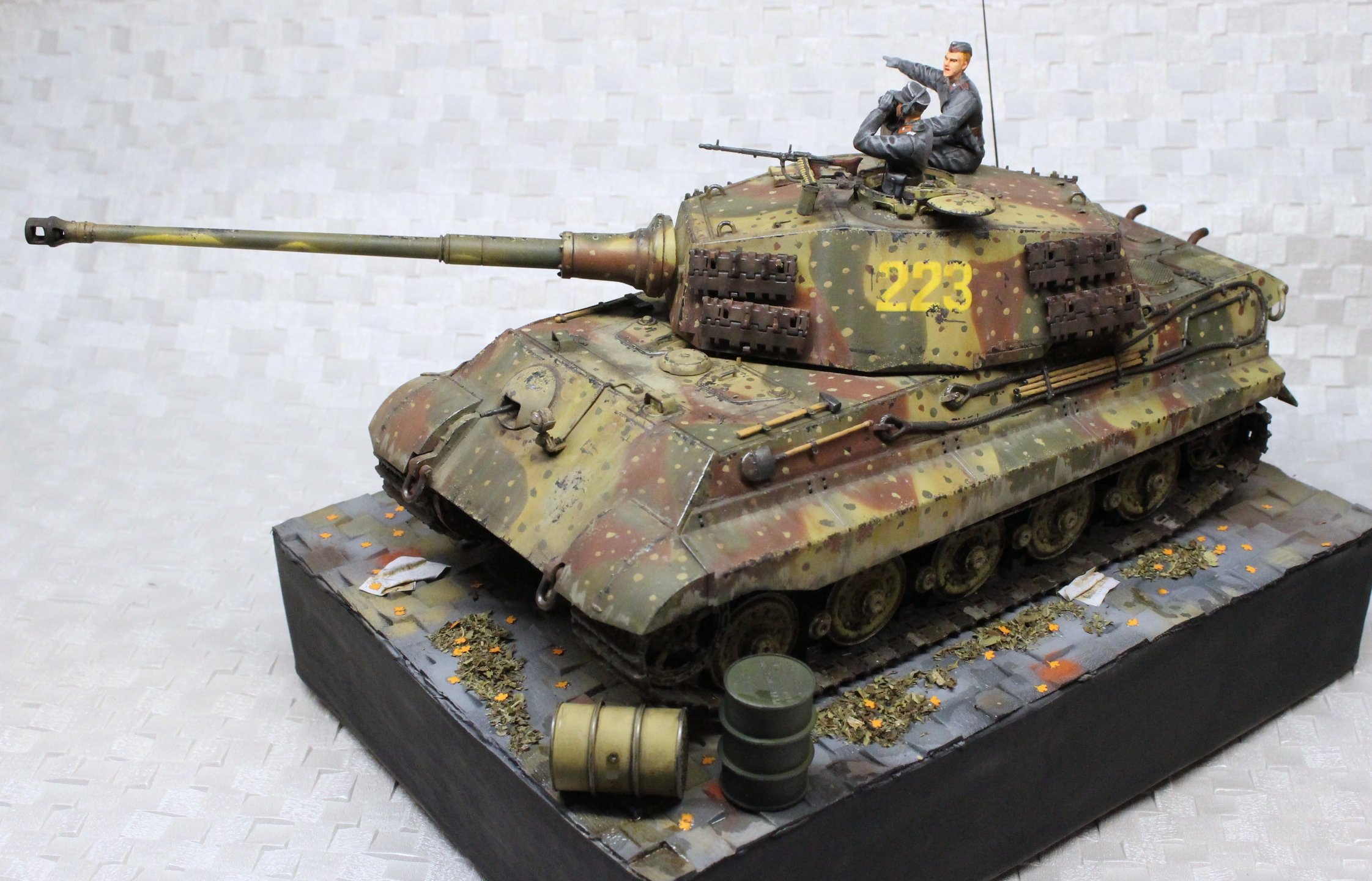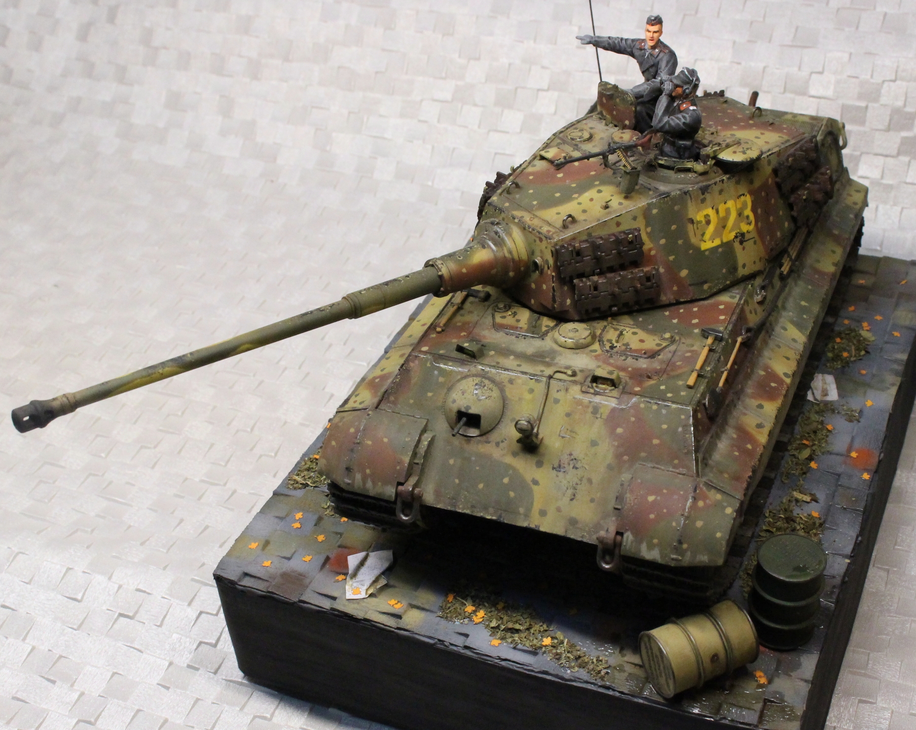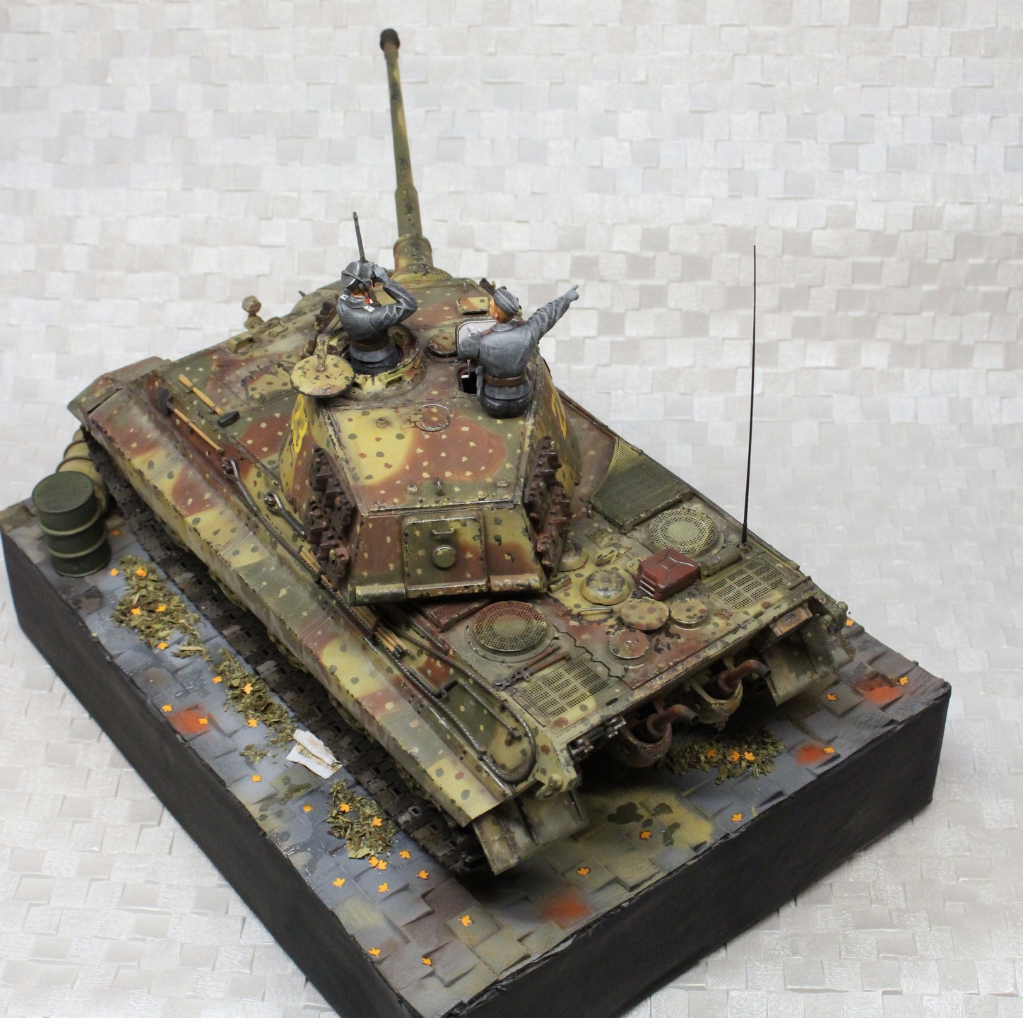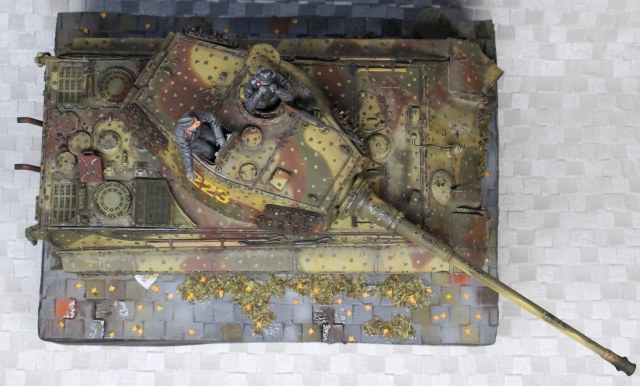 Танка показалось мало, сделал небольшую подставку, на диораму не тянет поэтому в броню. Красил красками Тамия, ну и затонировал чем было, как в сегда увлекся сколами, ни чего не могу с собой поделать.