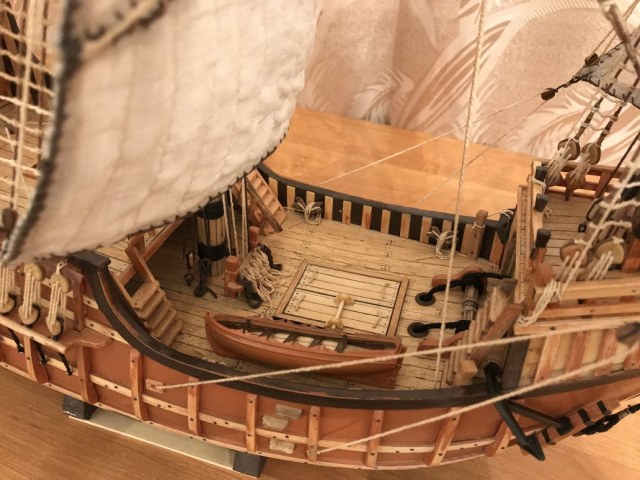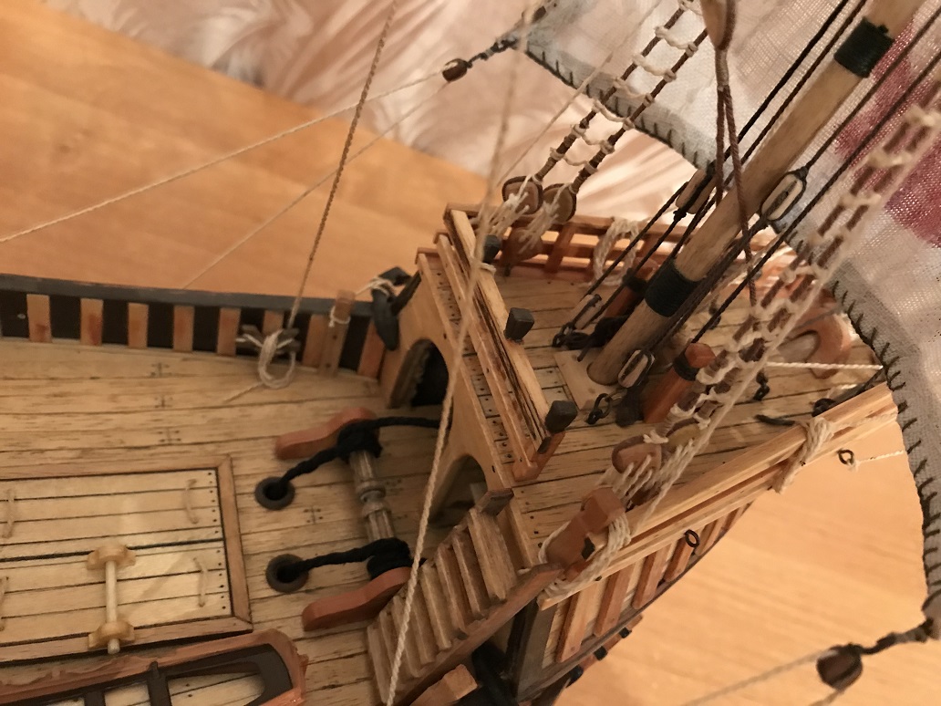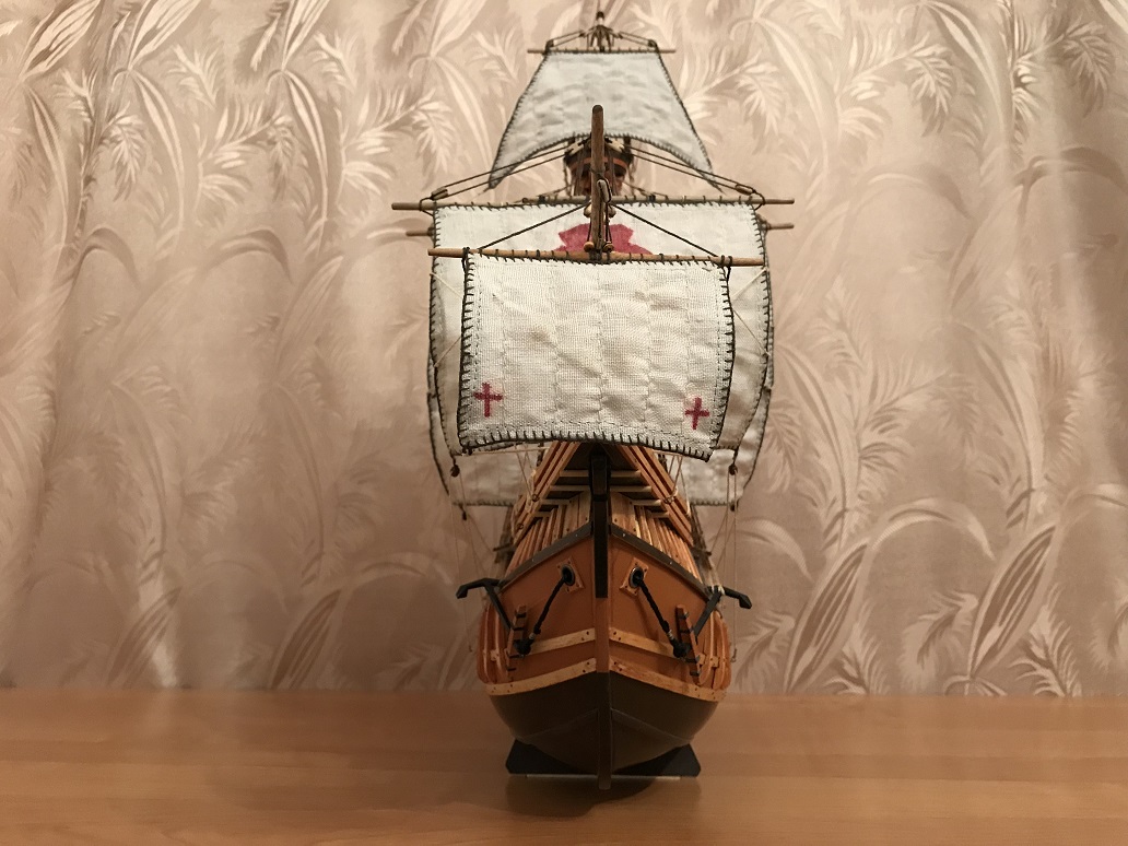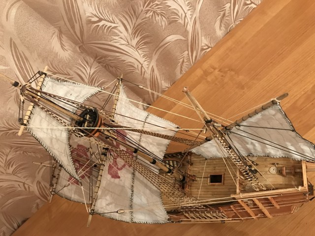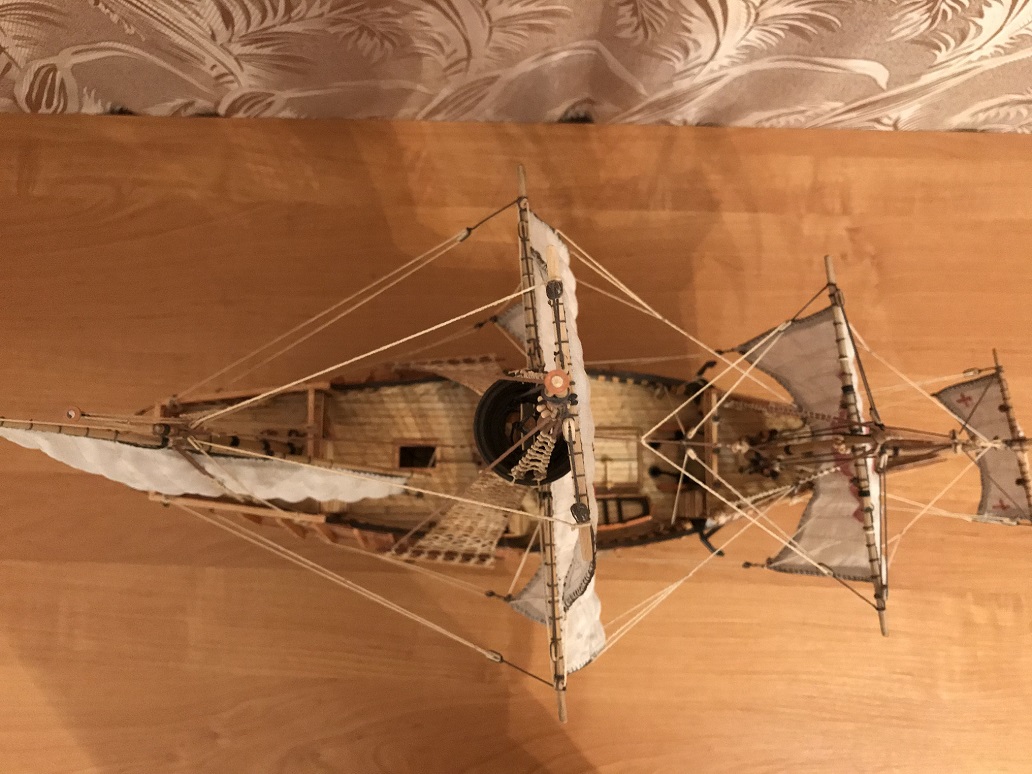 Хорошая работа,есть маленькие придирки по тросам такелажа. В целом хорошее впечатление, но черный ликтрос на парусах (Особенно на фото вид спереди), как ложка дегтя в бочку меда. Я за личные.