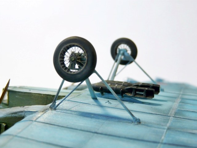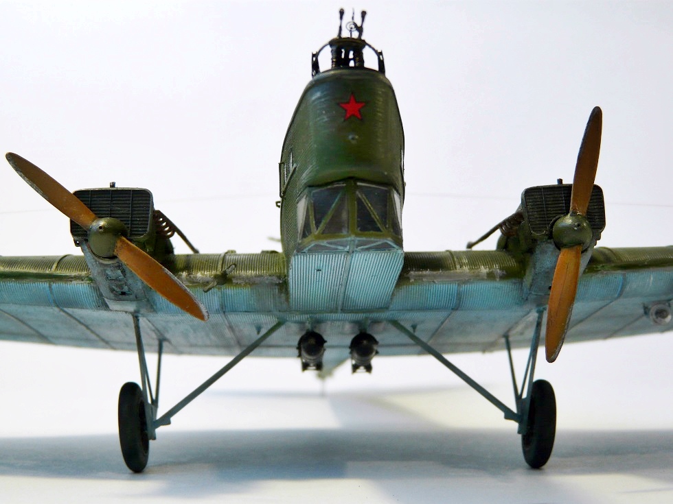 Красота! А чем красили ? Опоры шасси штатные или проволока ? Да , и винты , если покрасить в зелёный - допустимый вариант ?