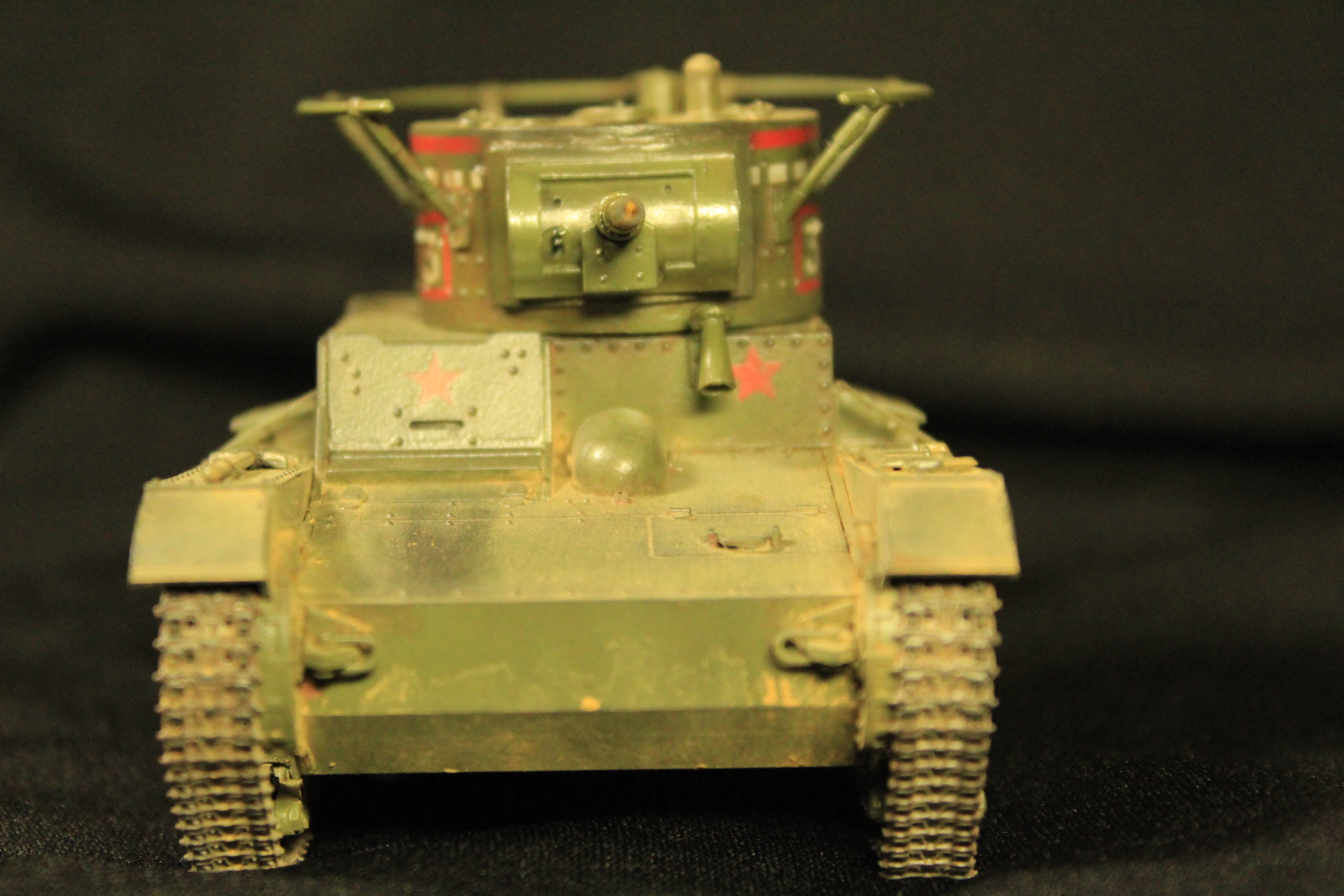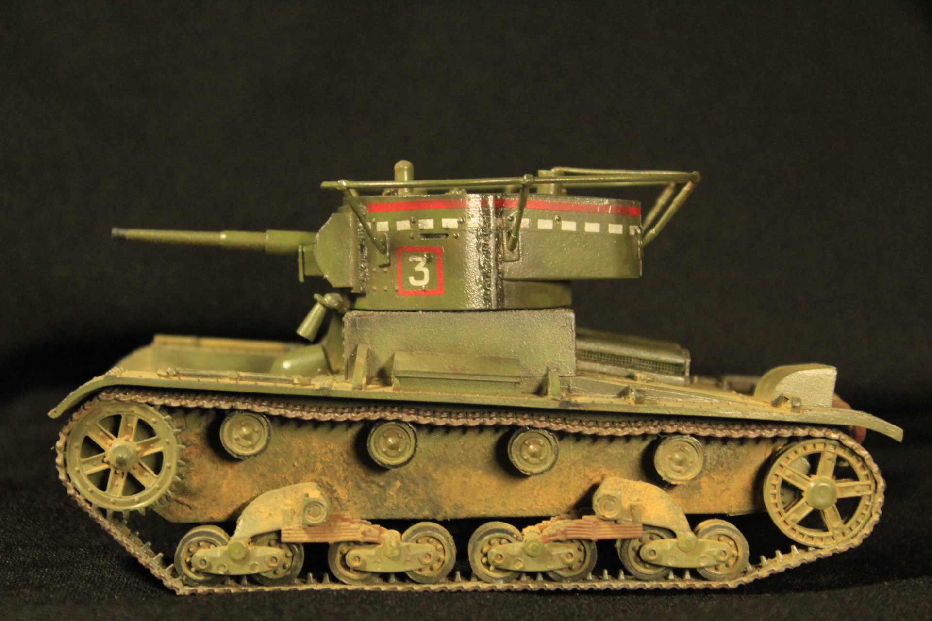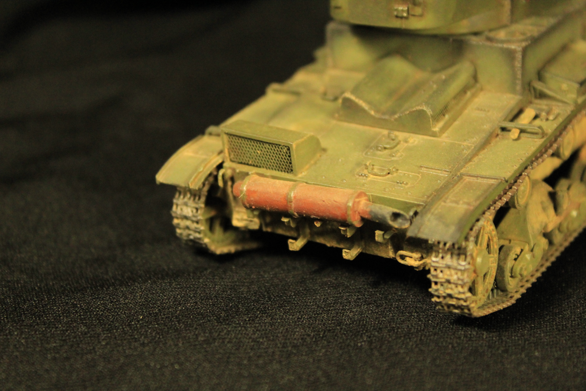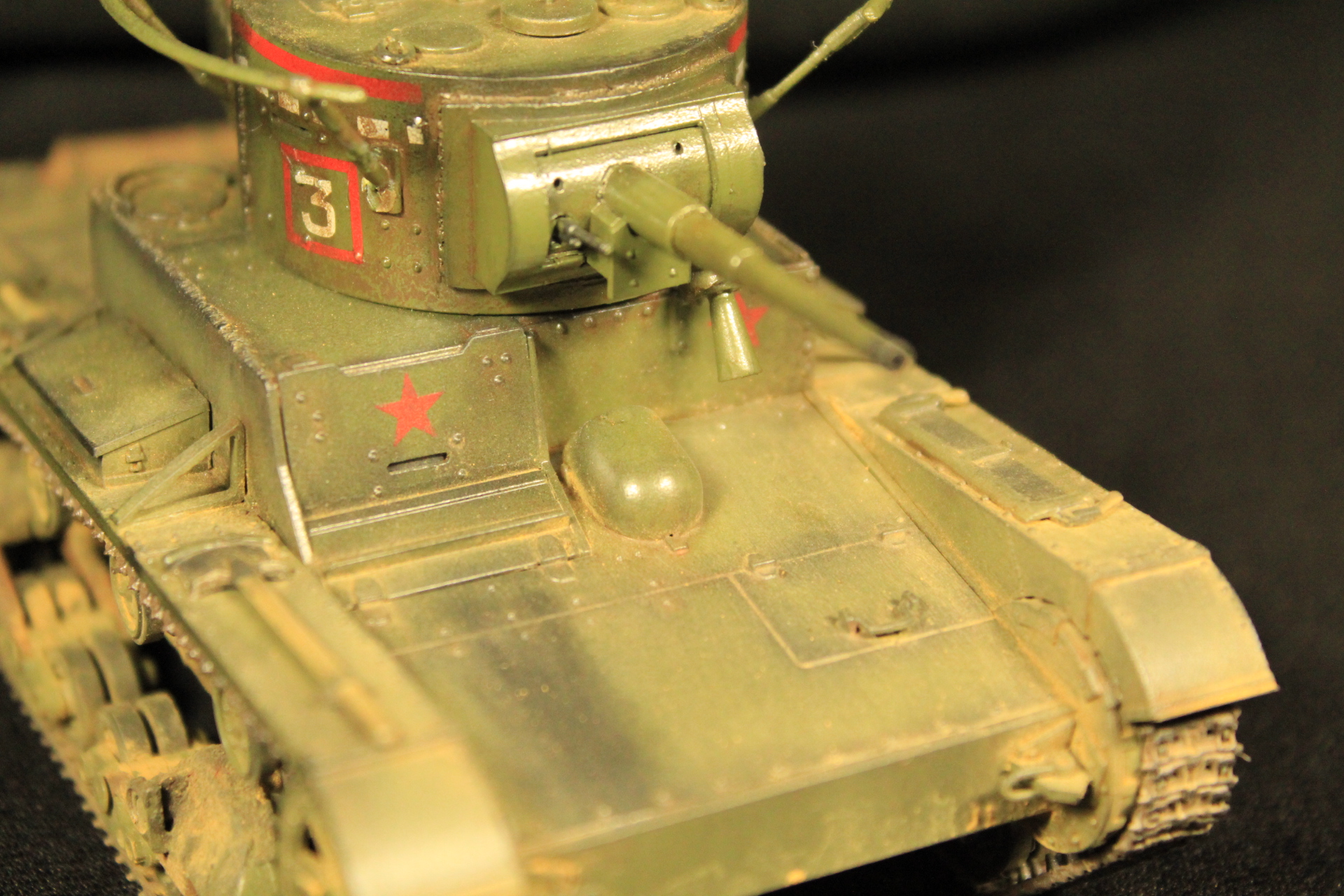 Доброго дня товарищи моделисты .Вот решил разместить небольшое творение от фирмы Звезда -Советский легкий танк Т-26 в прошлом Английский двух башенный легкий танк Викерс . Собиралась модель неплохо ,исключение это башня ,а именно небольшая щель между стенками и крышей башни + отсутствовал спаренный с орудием пулемет .Красил красками Mr.Hobby, пигменты Revell , сварной шов -шпатлевка Revell ,точеный ствол от Zedval , пулемет от танка т-35 (Звезда), смывка масло ,сетки МТО из набора фототравления т-90(Звезда), триплексы из расслоенного дисплея смартфона. Башня доставила немного проблем ,а именно опоры антенны оказались хрупкими и две сломались в финишном процессе .