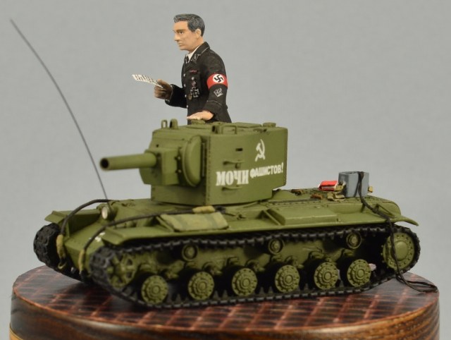 Моделист Штирлиц слегка загрустил,подумав про себя:"Вот блин, ЛКЗ уже КВ-5 в войска поставляет... А я, с этой войной, ещё на свой КВ-2 смывку нанести не успел...Быстрей бы Победа!" (Пастор Шлаг выбросился из окна и оборвал последнюю ниточку получения новостей с Родины!)