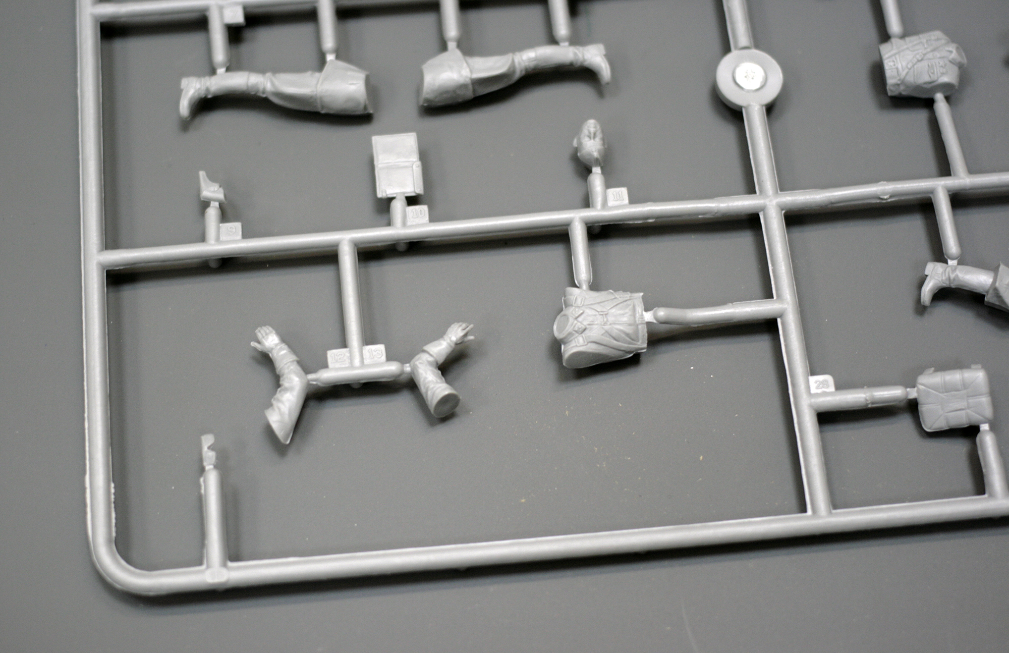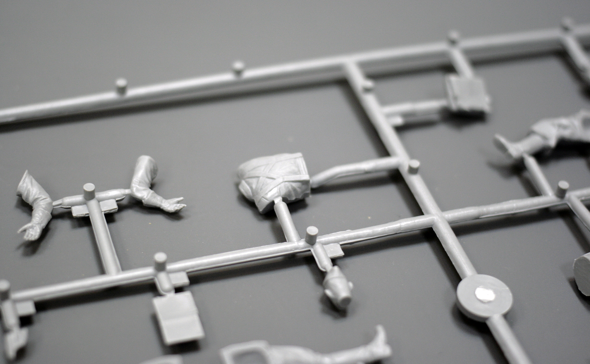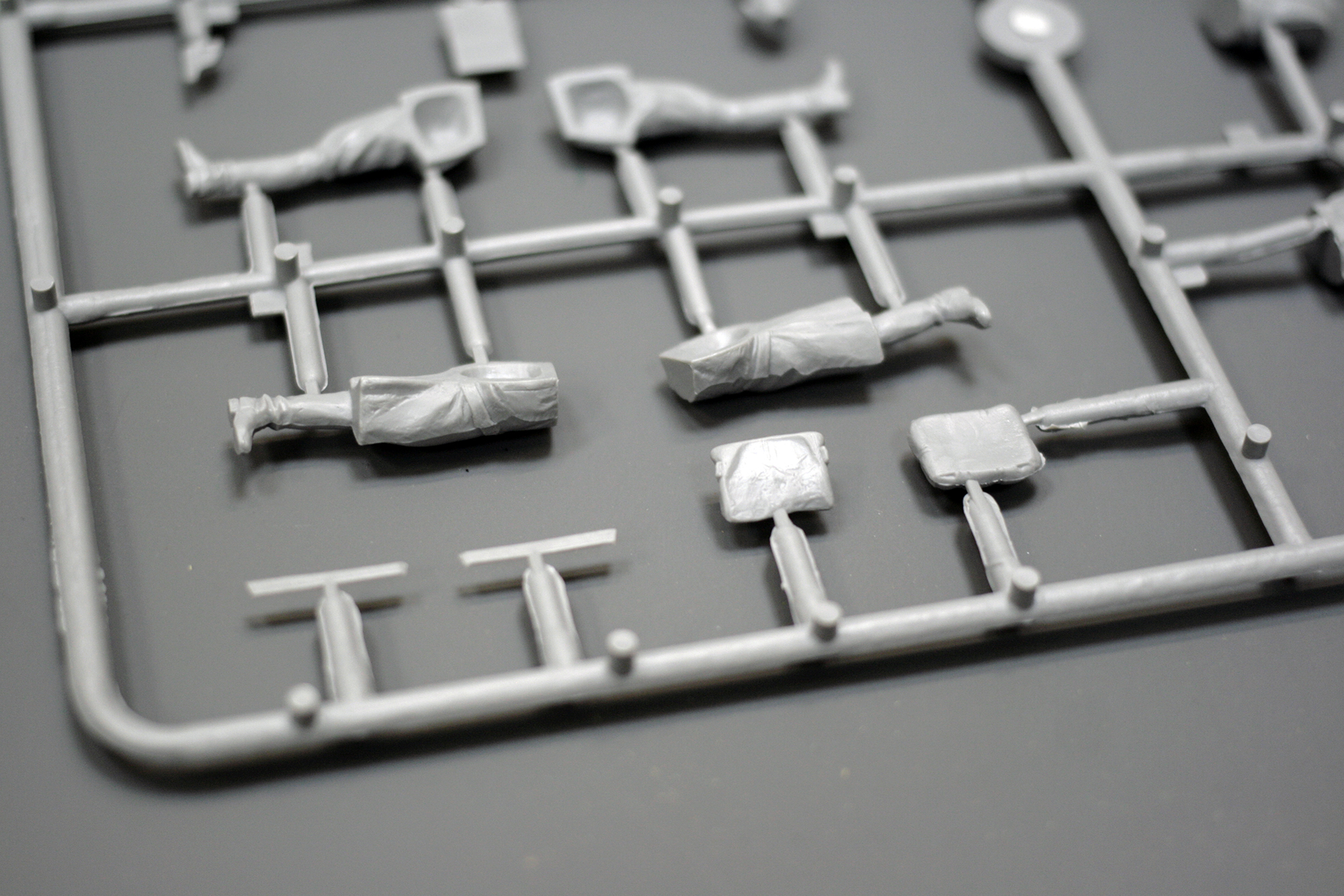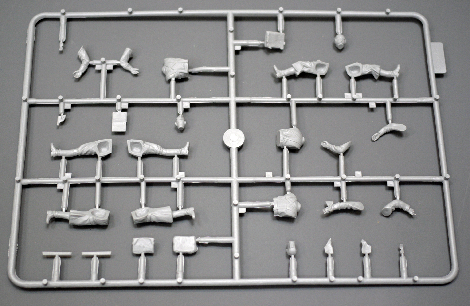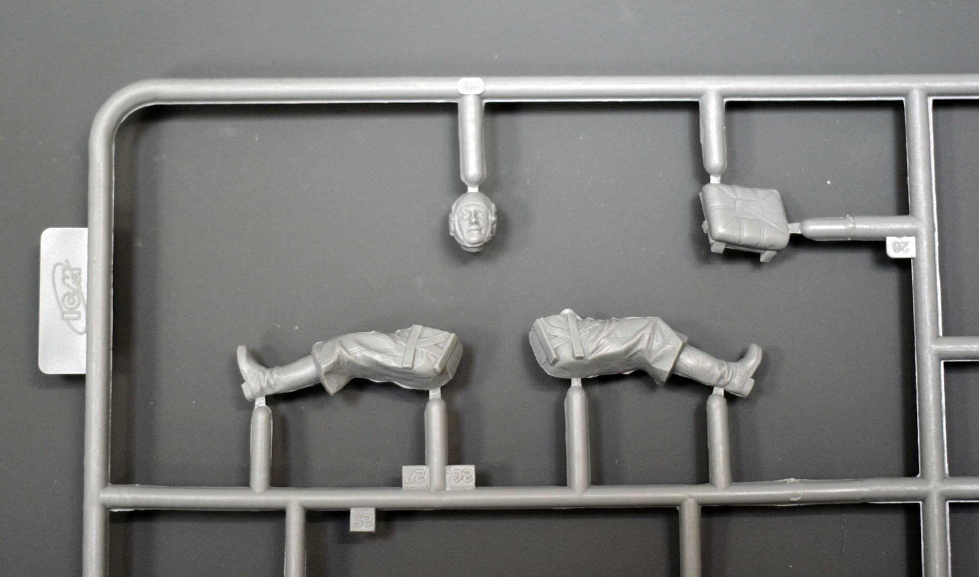Отливки уместились на одном литнике. Серый пластик привычен для ICM, мягок и хорошо обрабатывается. Что не радует - так это мелкий облой и заметные стыки пресс-форм на отливках. Особенно учитывая то, что это свежий набор.