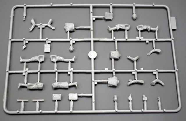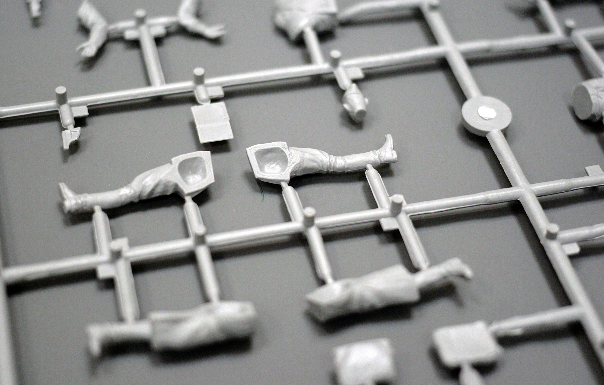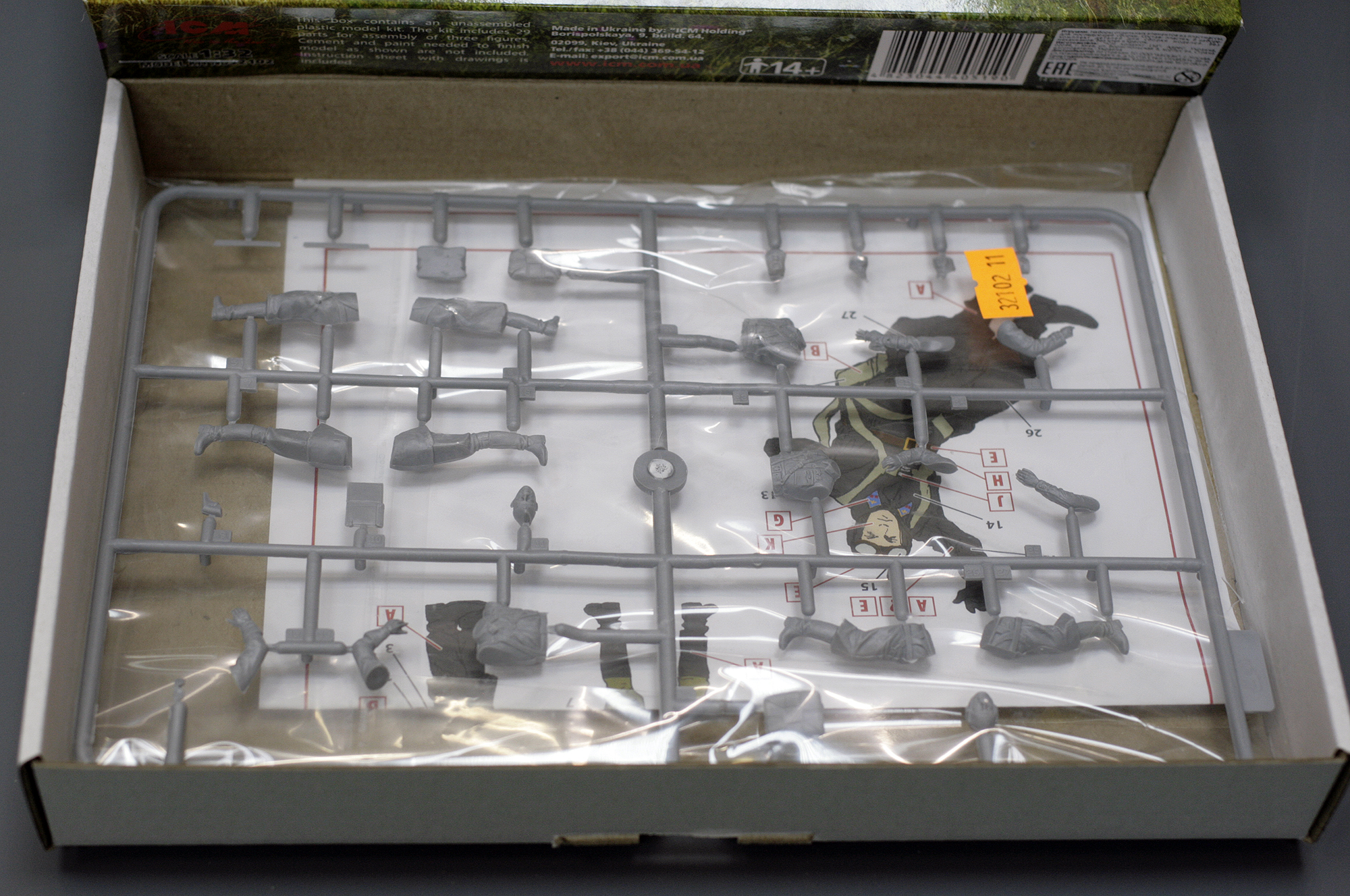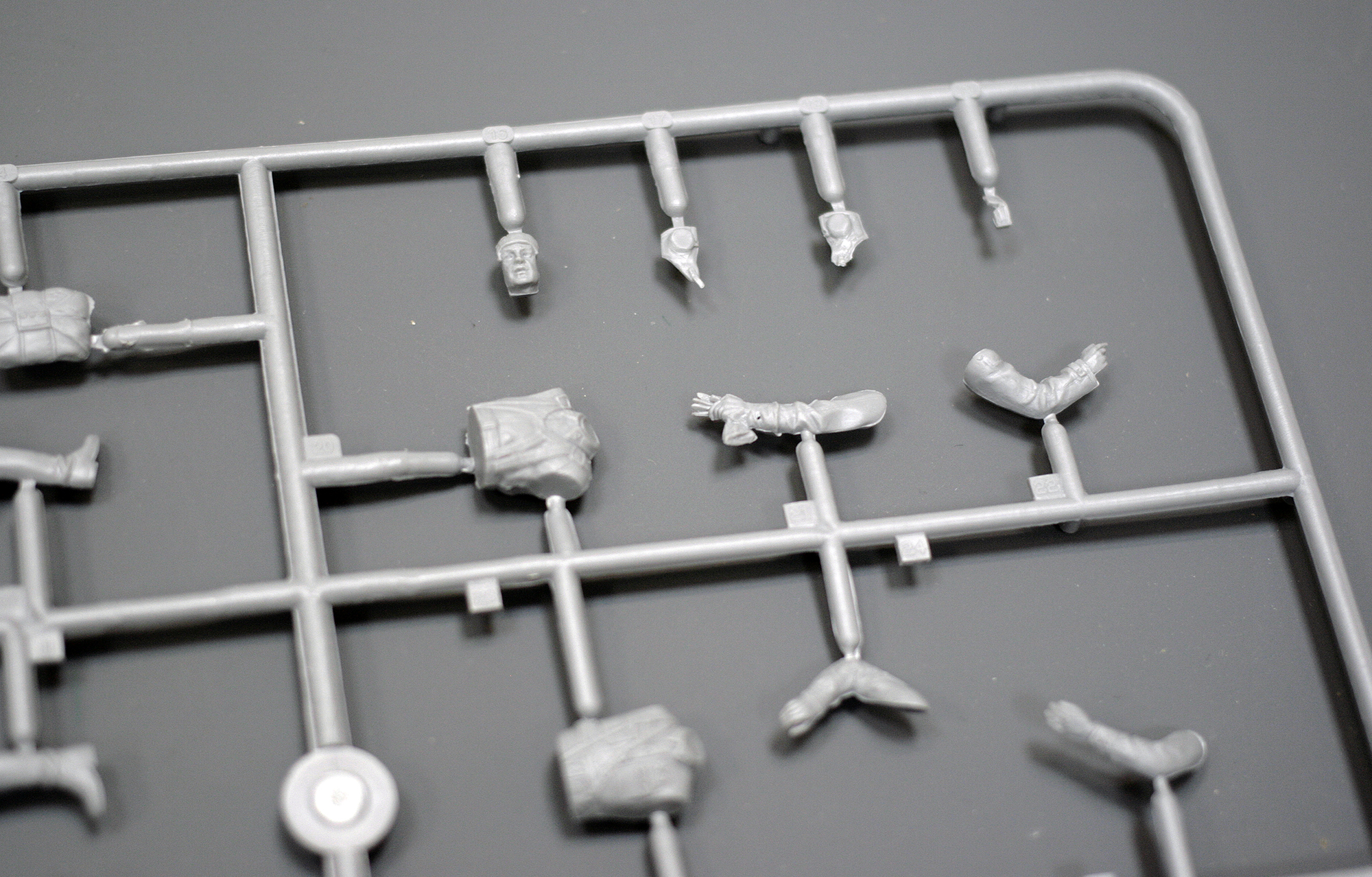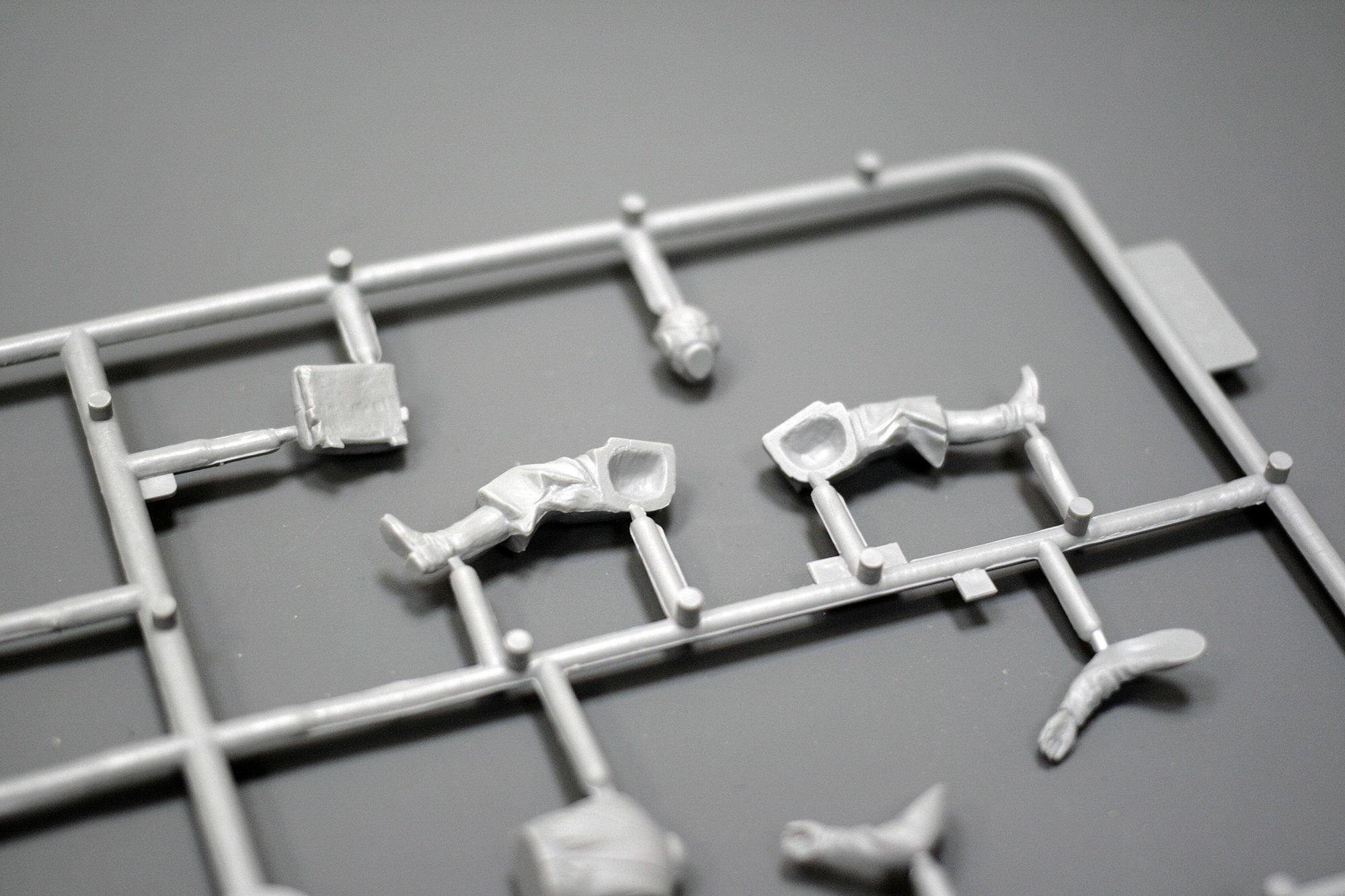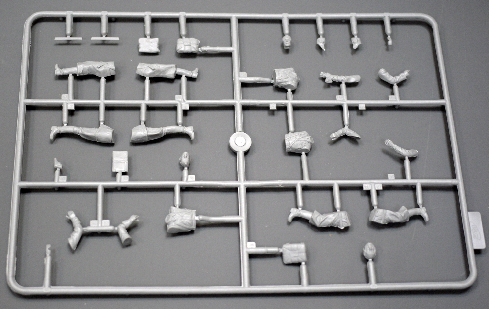 Отливки уместились на одном литнике. Серый пластик привычен для ICM, мягок и хорошо обрабатывается. Что не радует - так это мелкий облой и заметные стыки пресс-форм на отливках. Особенно учитывая то, что это свежий набор.