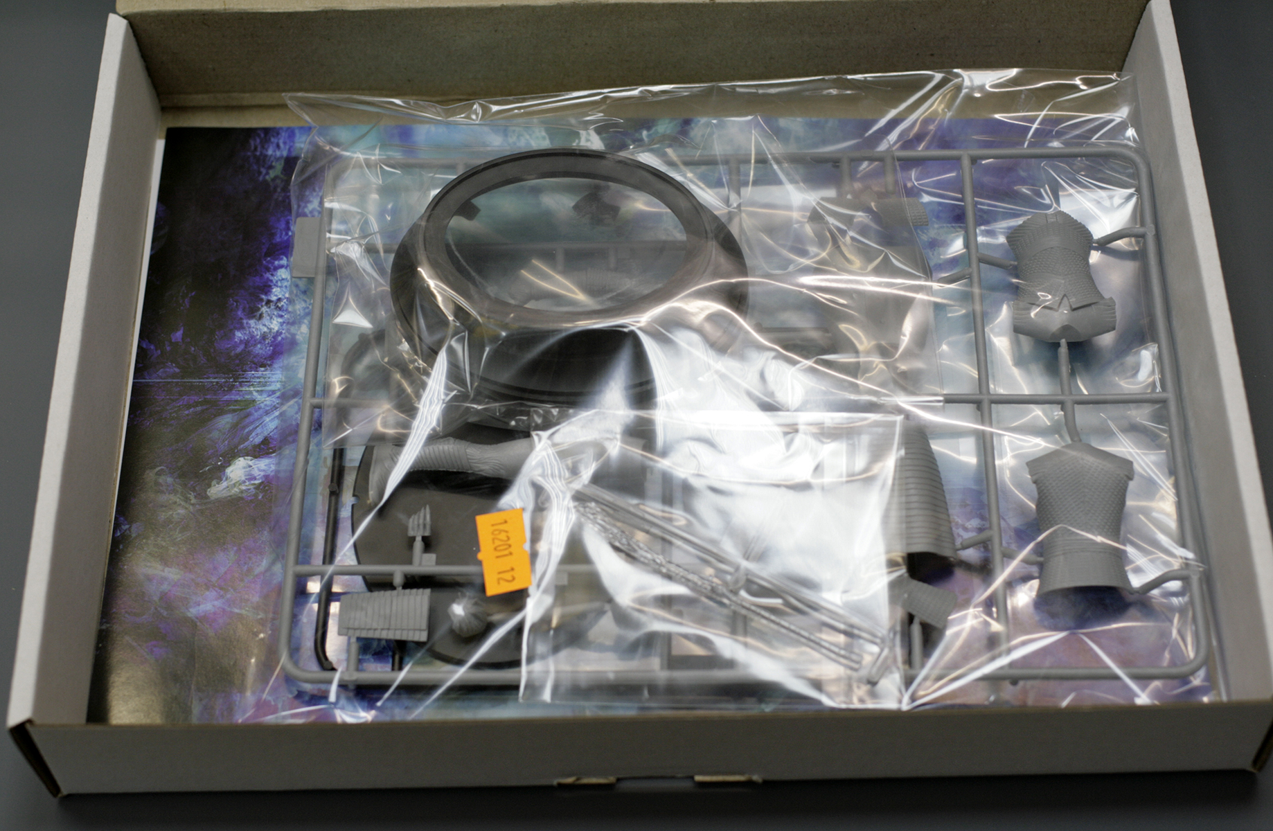 Сами детали упакованы в пакет, причем литник с прозрачным ледяным мечом и основная часть подставки упакованы в дополнительные индивидуальные пакетики.