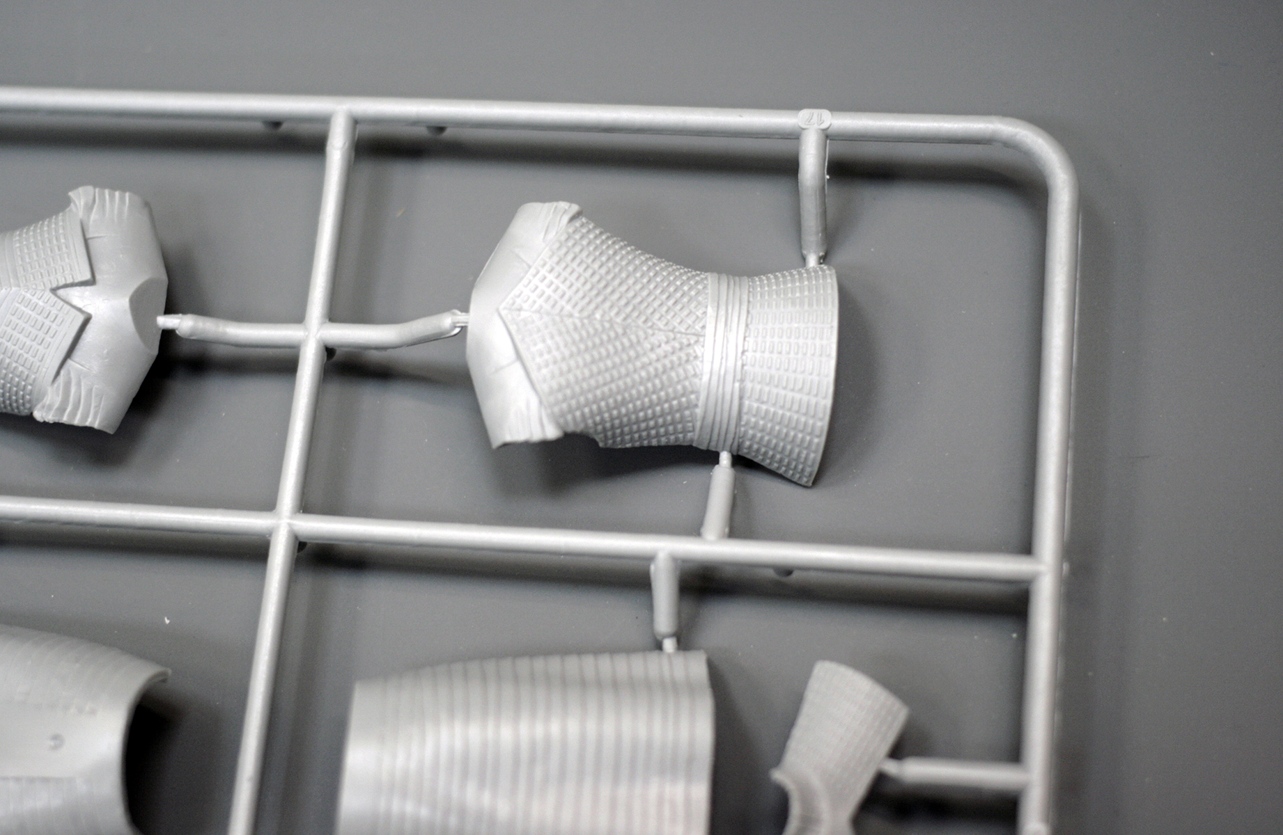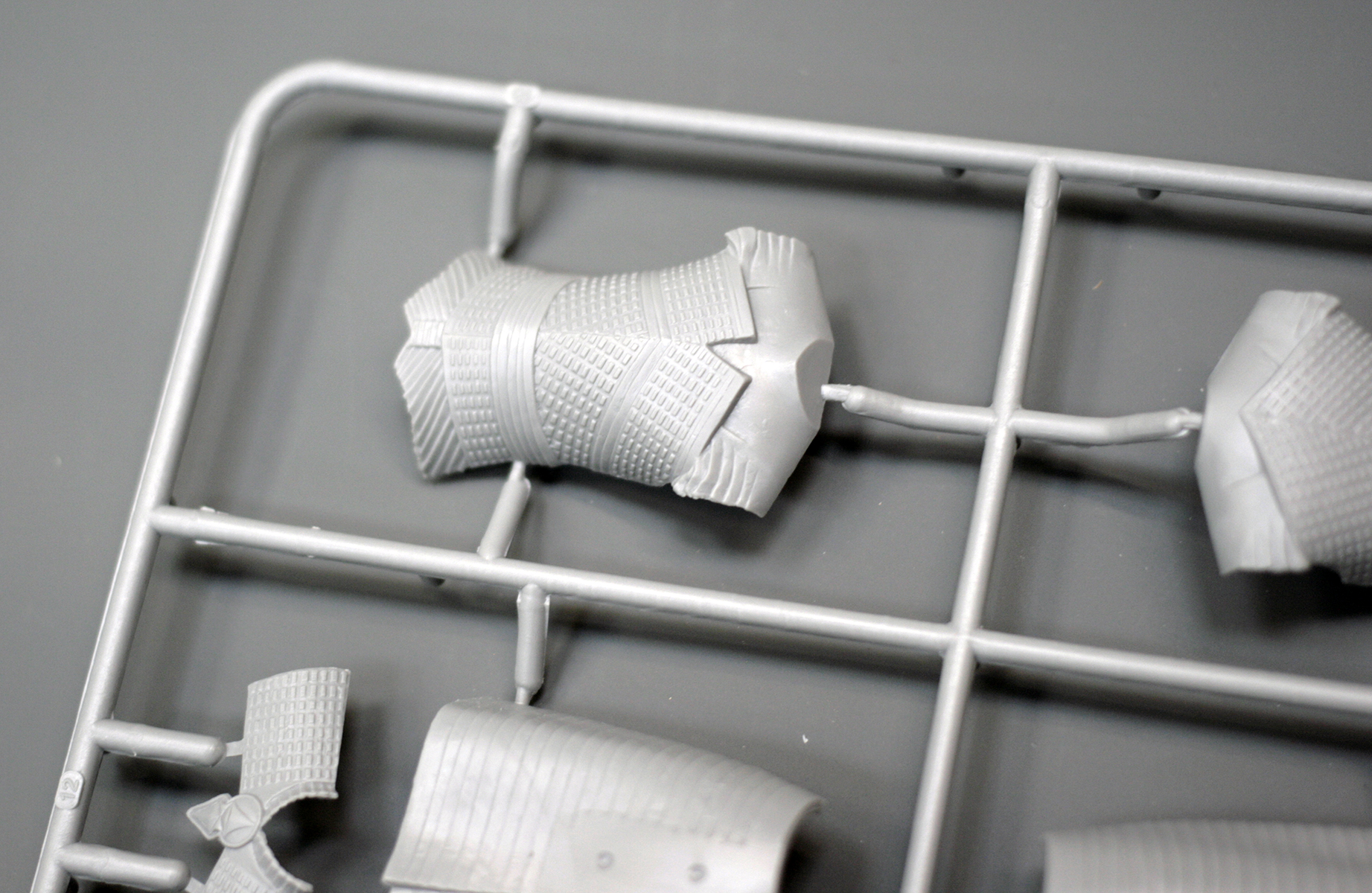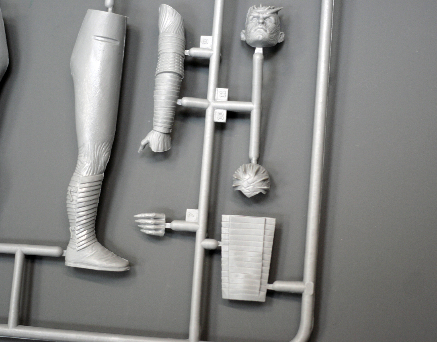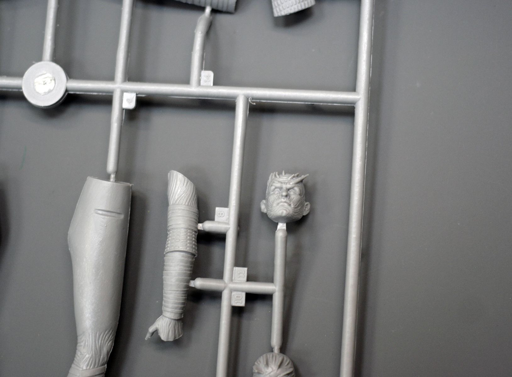 Основные детали фигуры уместились на одном литнике из серого пластика. Он привычен по другим наборам от ICM, мягок и хорошо обрабатывается. Вновь с наличии мелкий облой и заметные стыки пресс-форм на отливках.