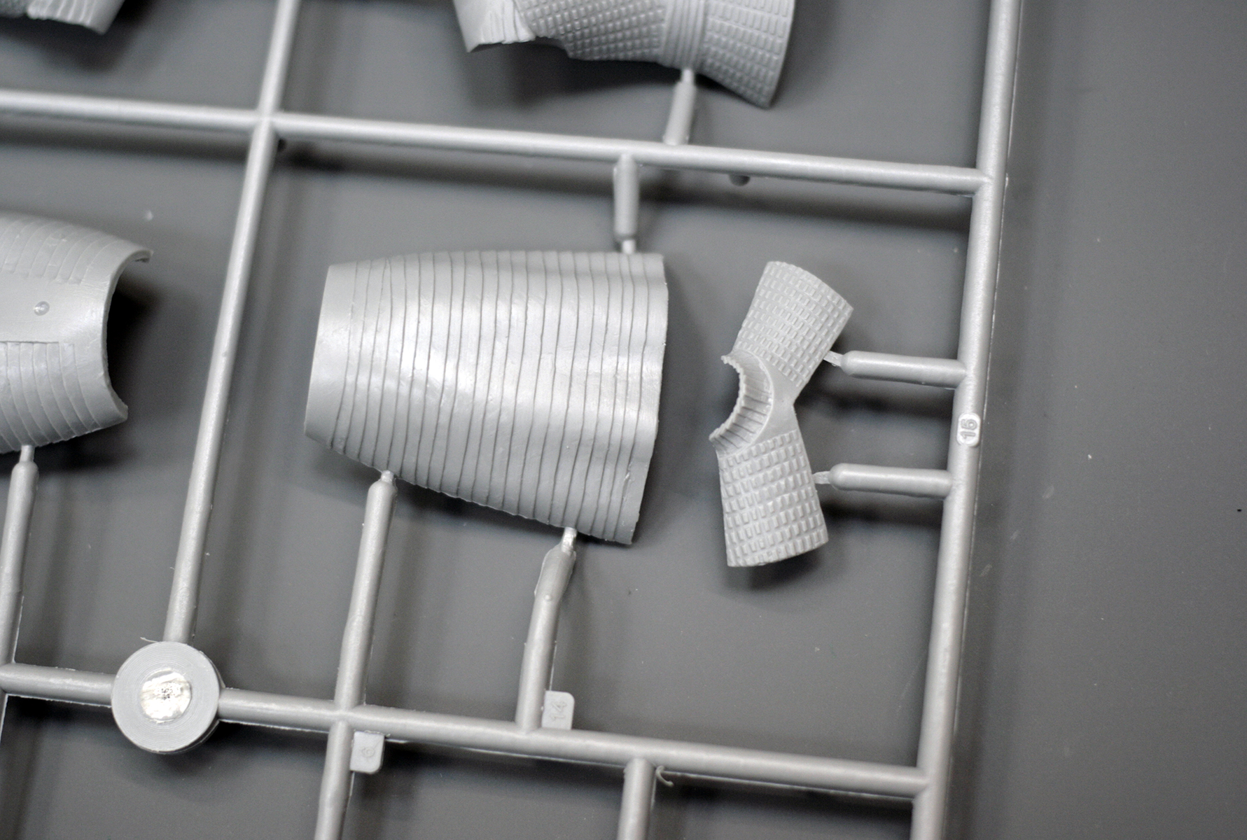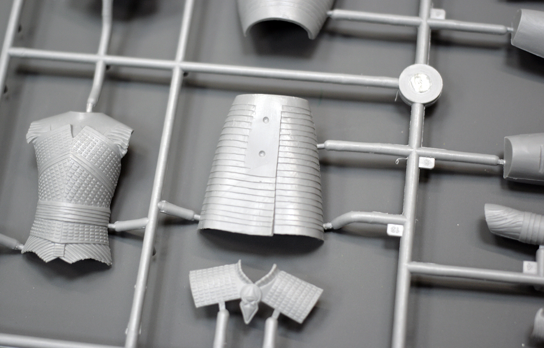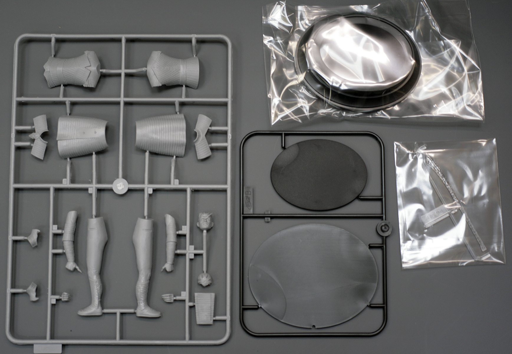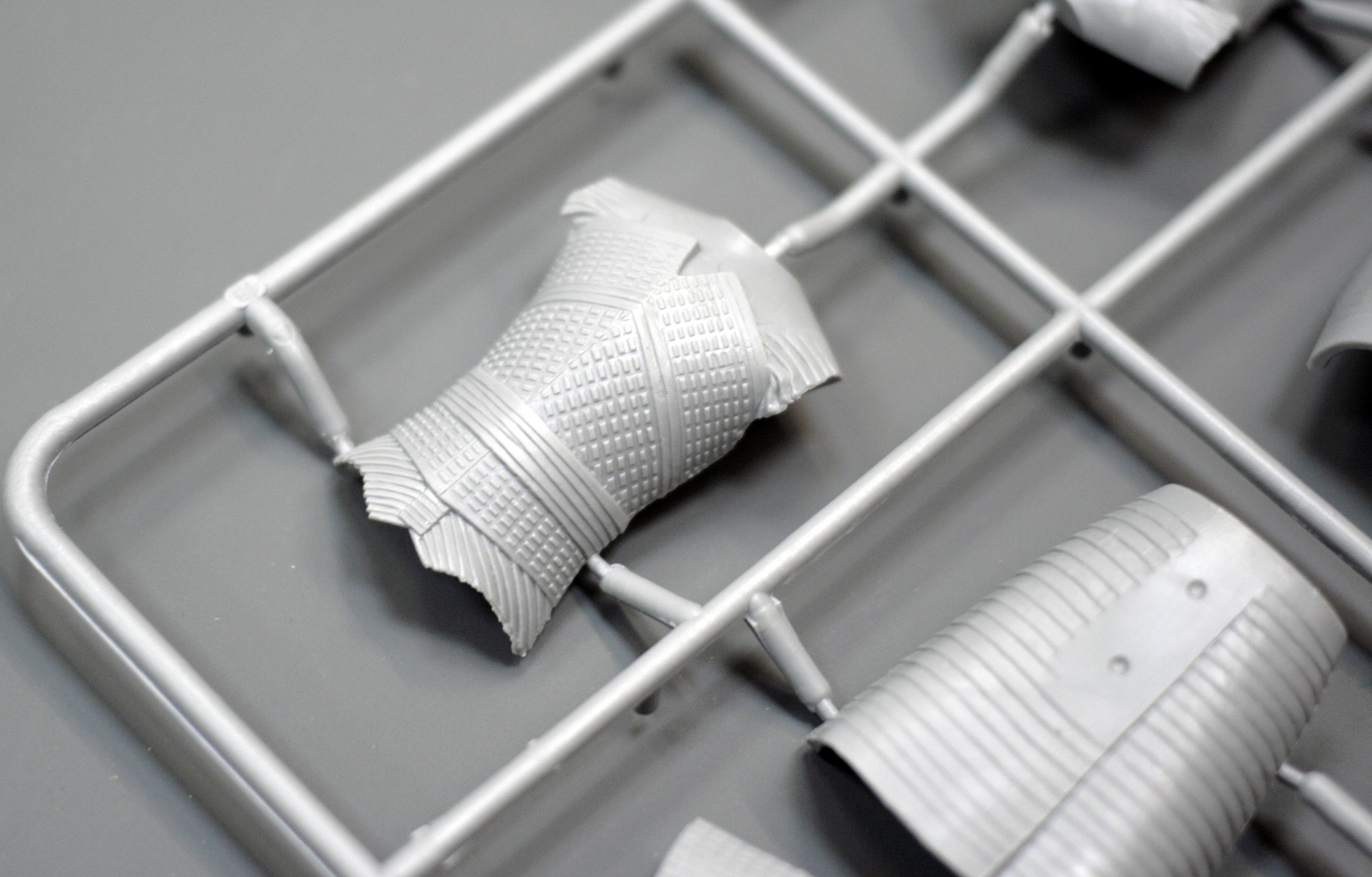 Основные детали фигуры уместились на одном литнике из серого пластика. Он привычен по другим наборам от ICM, мягок и хорошо обрабатывается. Вновь с наличии мелкий облой и заметные стыки пресс-форм на отливках.