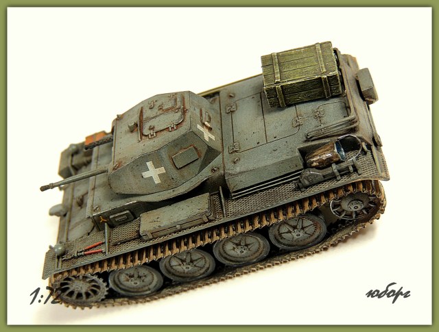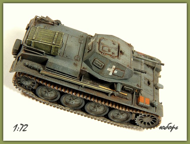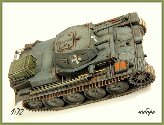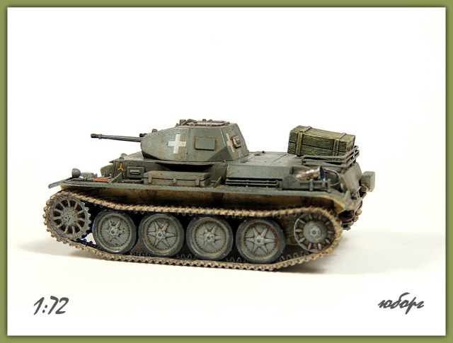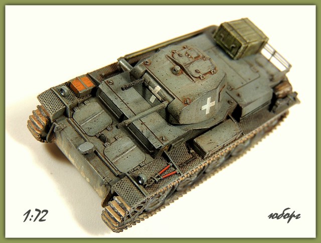Всем, здравствуйте! Выставляю очередную работу и снова быстросбор от польского производителя "First to Fight". Набор конечно довольно упрощён и скучен, но Pz.IID было сложно не положить в коллекцию. Что бы не так скучно было переработал воздухозаборники, заменил все смотровые лючки на башне и бортах, добавил корзину на корме, выточил фару "нотек", выхлопную трубу из иглы, остальное по мелочи.