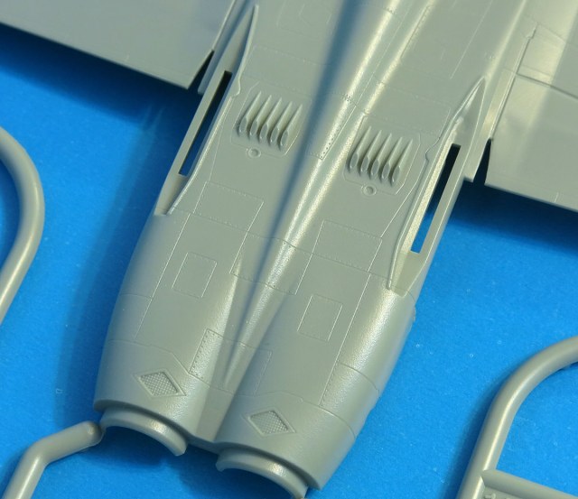 Тут же лопатки компрессора - их будет можно разглядет в самой глубине воздухозаборников. Ощутимый плюс нового кита.