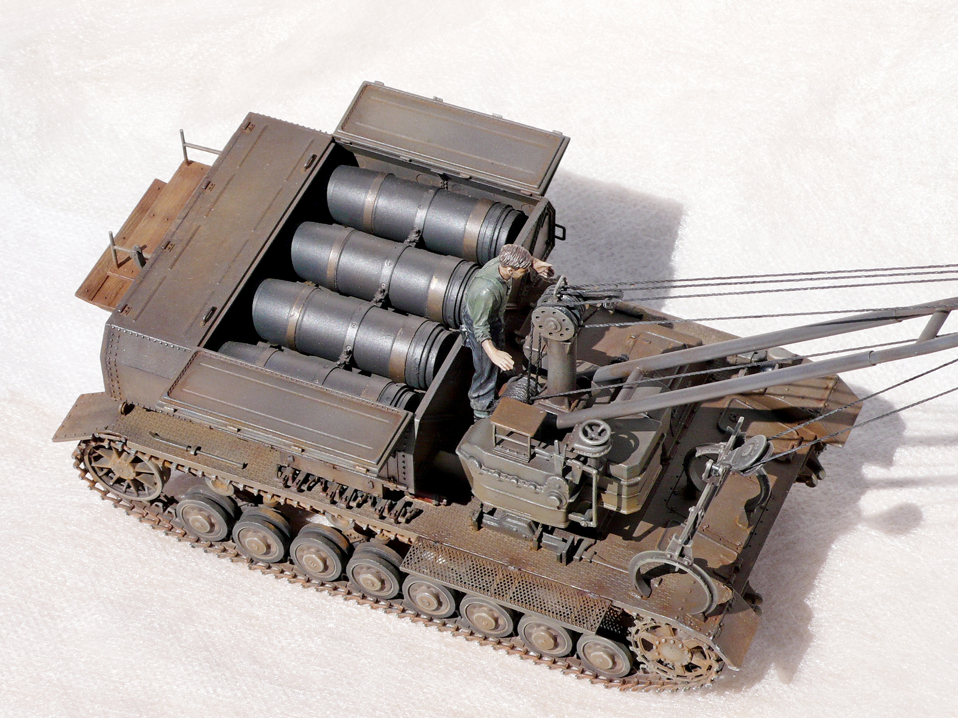 - у транспортера снарядов переделана стрела лебедки (сделана длиннее); заменены: трос, триплексы блистеров, фары; добавлен ранец под инструмент.