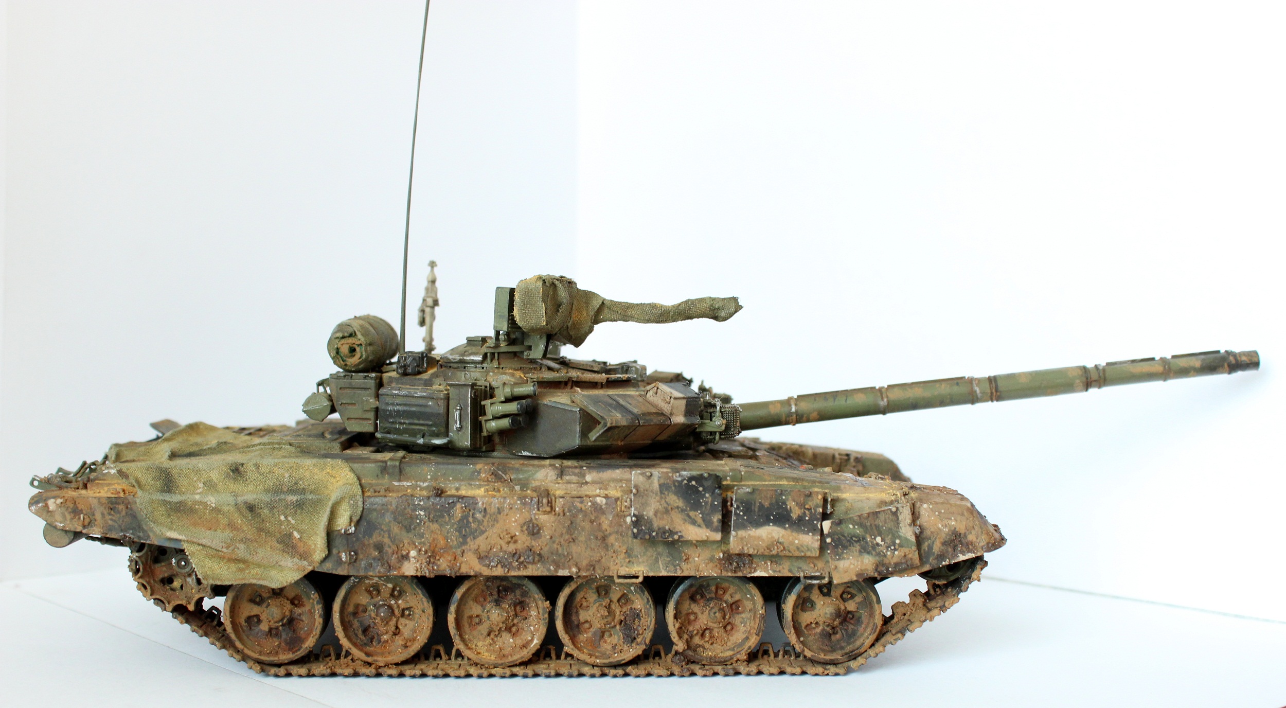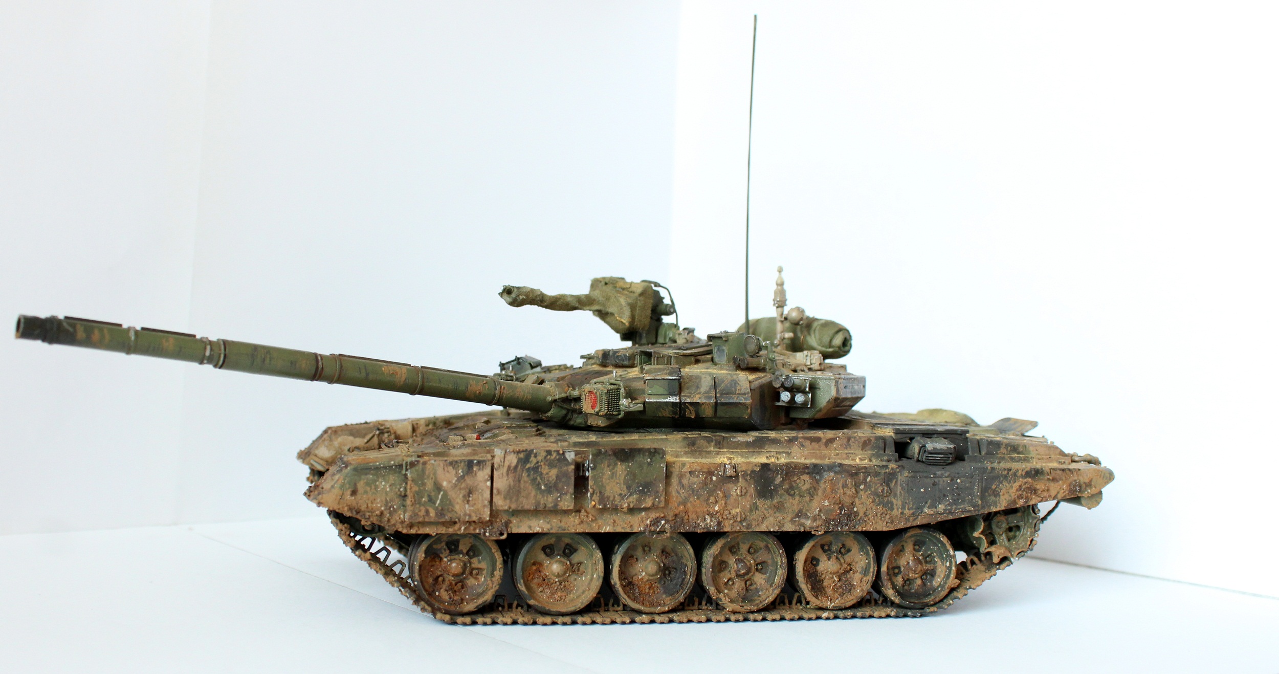Закончил работу над собирательным образом танка Т-90А (1:35) от компании "Звезда". Аппарат без привязки к конкретному борту, попытался изобразить машину, находящуюся "на марше" в осенний период. В работе использовал краски и химию фирм Tamiya, Pacific88, Mr. Hobby. Пигменты фирмы Zipmaket. Впервые применял технику нанесения грязи. Приятного просмотра!