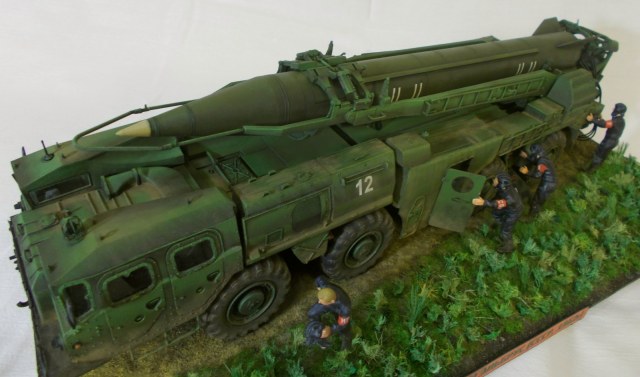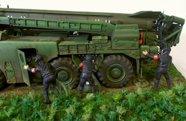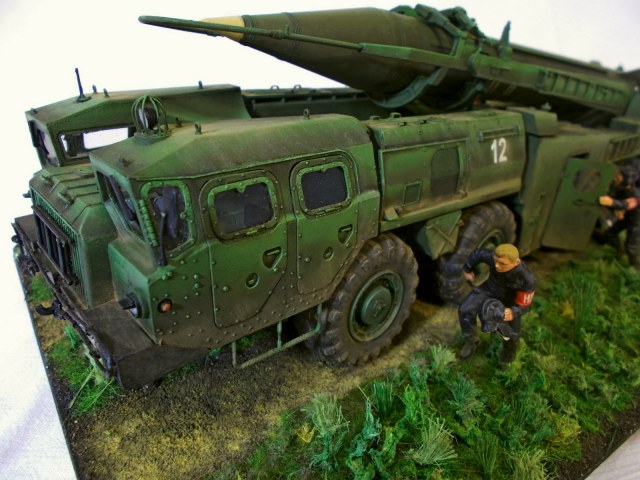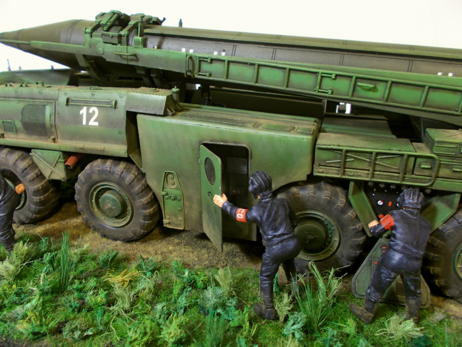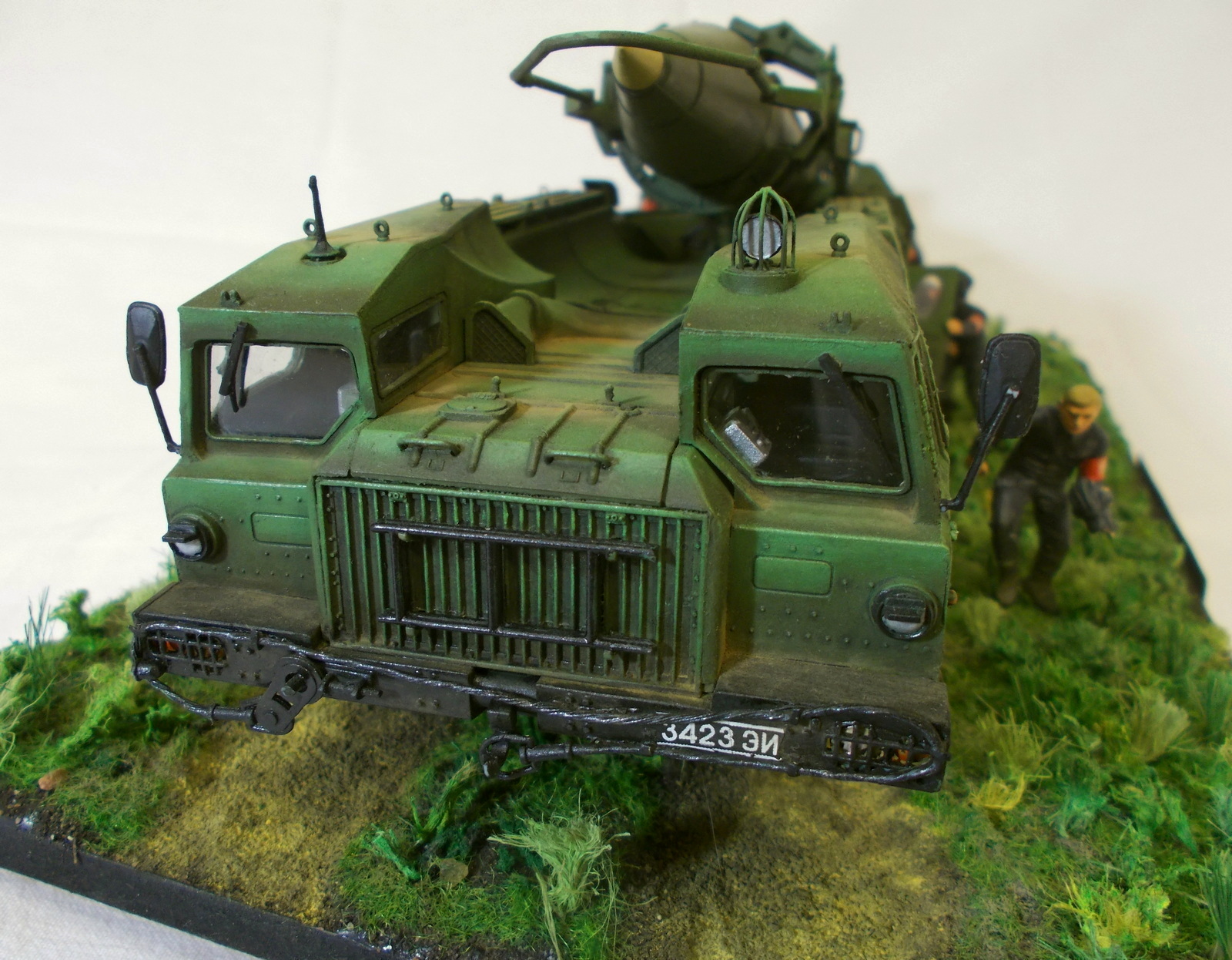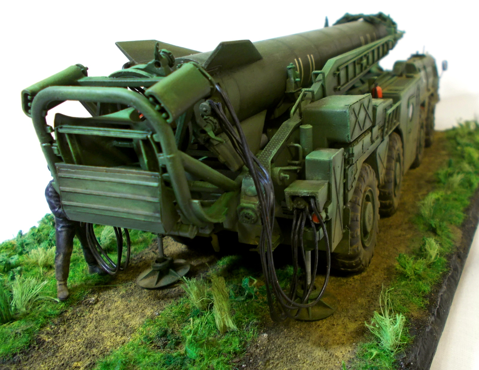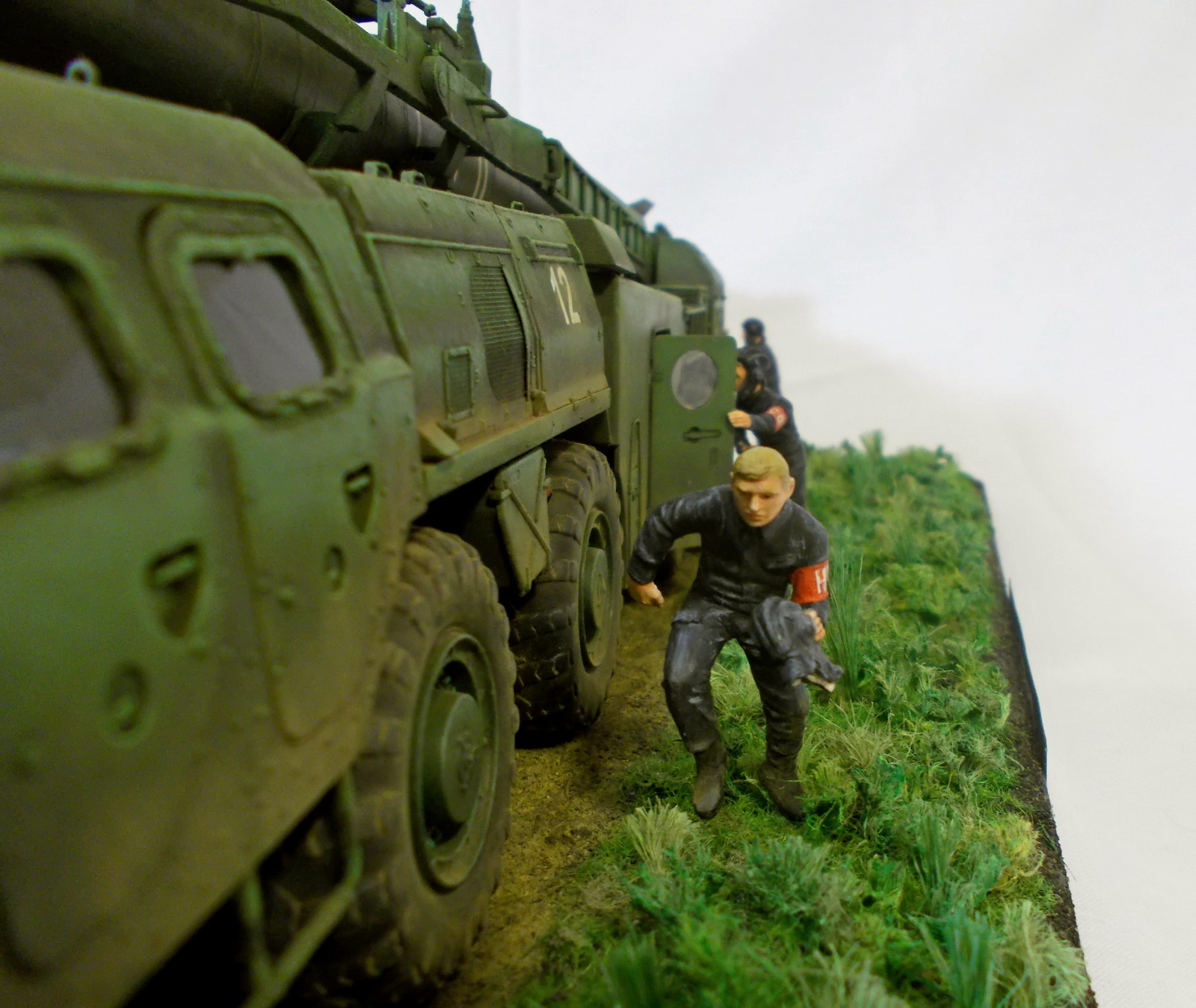 Интересная идея. Воплощение тоже на уровне. Косяки кита от Дрэгон всем известны и не устранены, но я бы и не настаивал))). И без того диорама смотрится. Насчет танковых комбинезонов, тут все верно, именно они и выдавались для боевой работы. По боевой работе поворчу: 2-му номеру расчета на этом месте делать нечего, там начальник отделения должен стоять, башмаки из-под стола должны быть к моменту подъема стрелы уложены под колеса (у Дрэгона они даны одной большой плитой). Я их даже на 72 масштабе переделал и не вижу больших проблем в переделке их в большом 35-м масштабе. Кстати, стол к ракете должен быть прикручен ветровыми болтами, а тут он сам по себе, может это и есть поломка?))) Тогда это не поломка, а аварийная ошибка! Общее впечатление от работы очень даже хорошее, покраска агрегата понравилась, все остальное тоже. Успехов в реализации еще более смелых проектов!